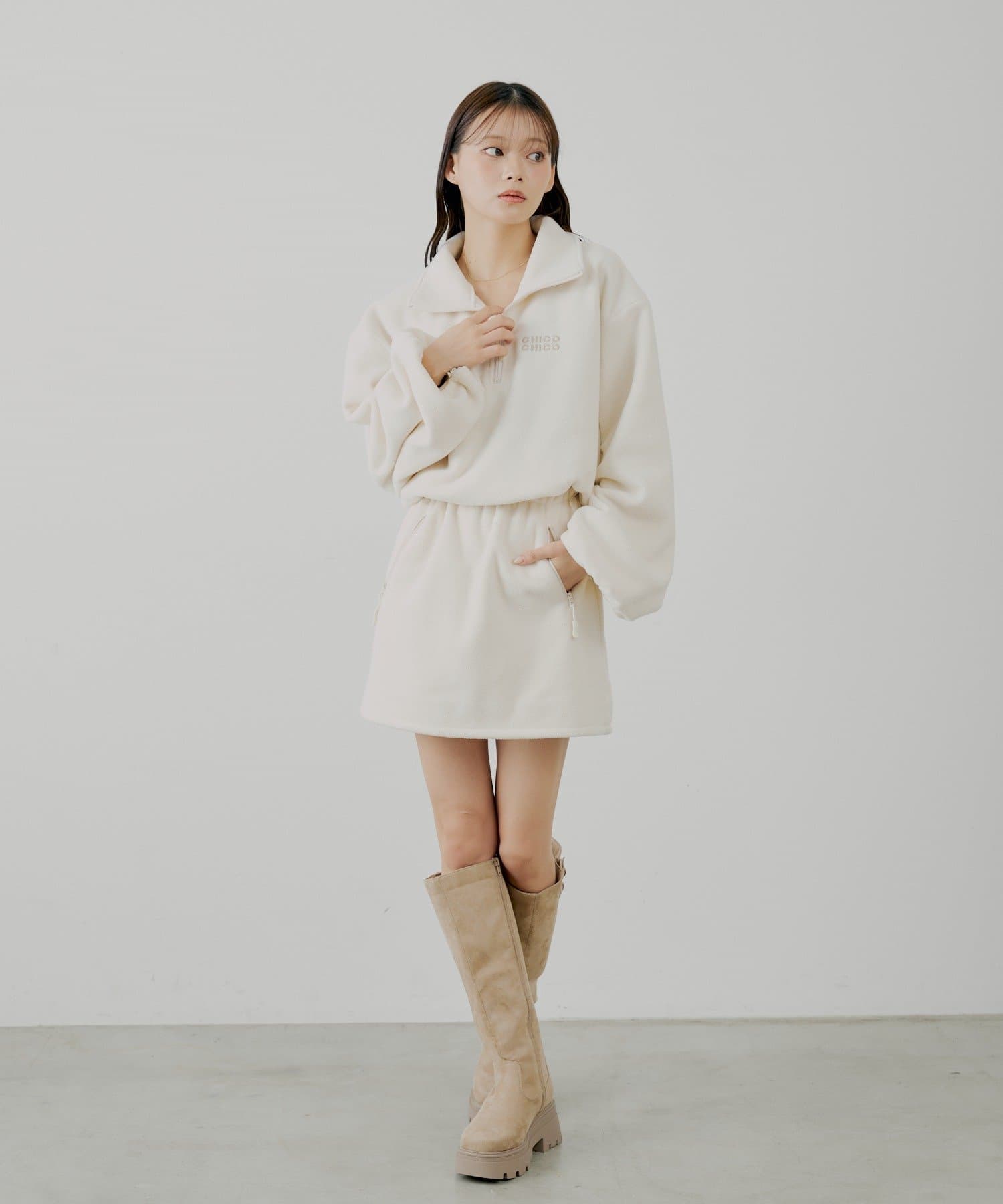 ・暖かくて着心地抜群のフリース素材を使用した、ハーフジップミニワンピース。