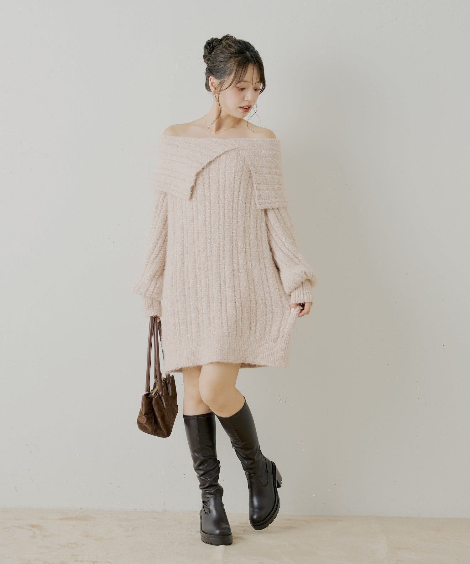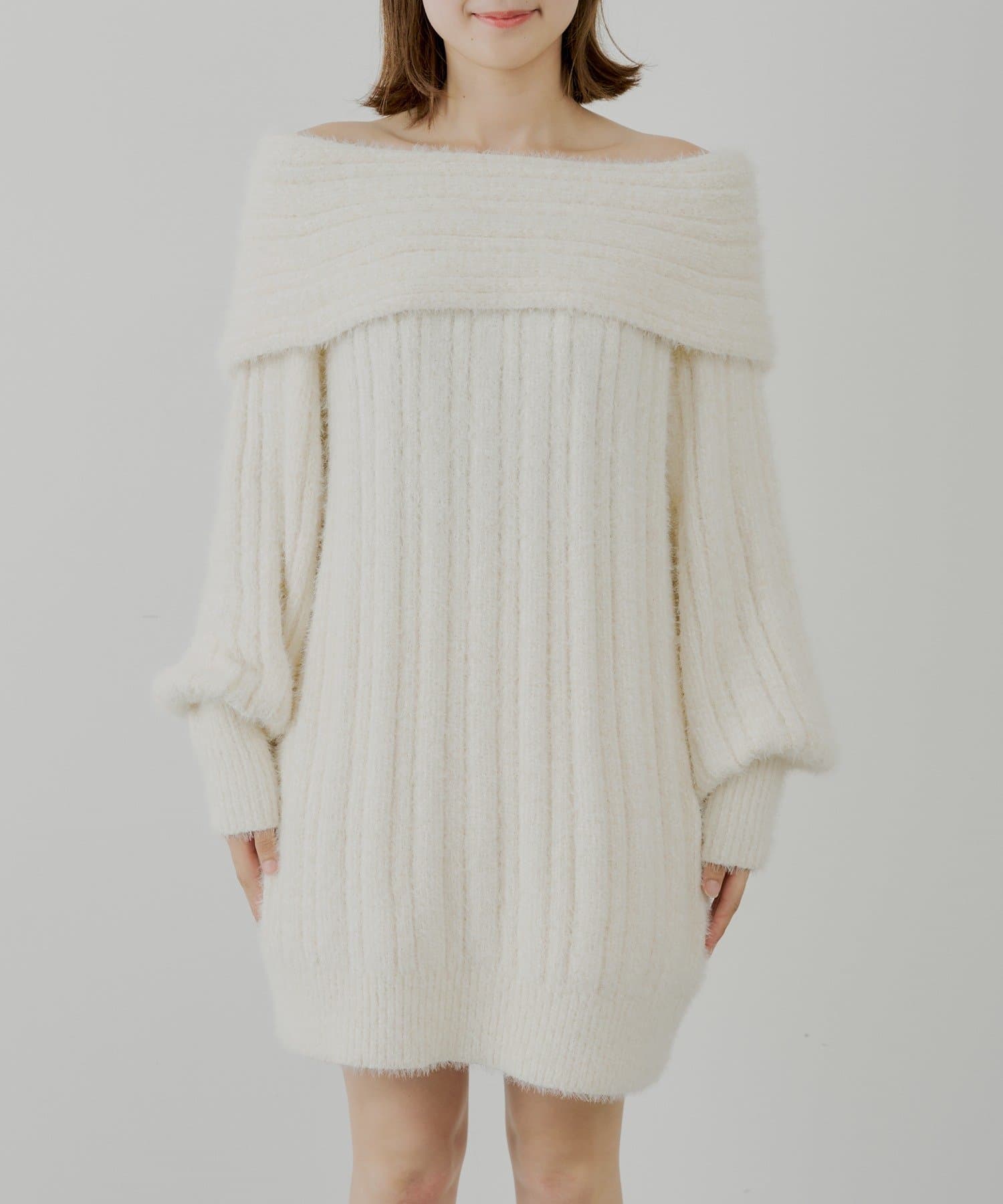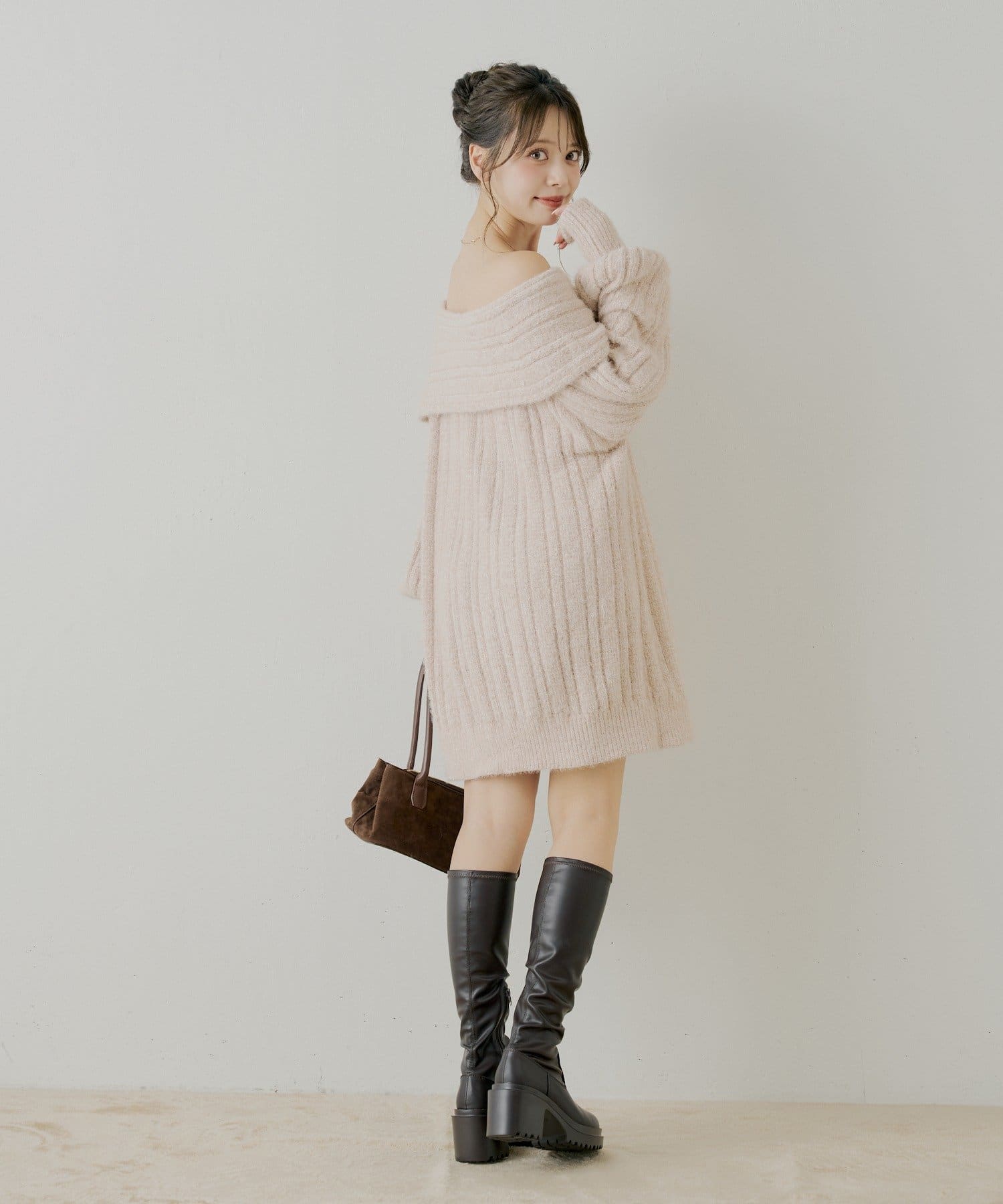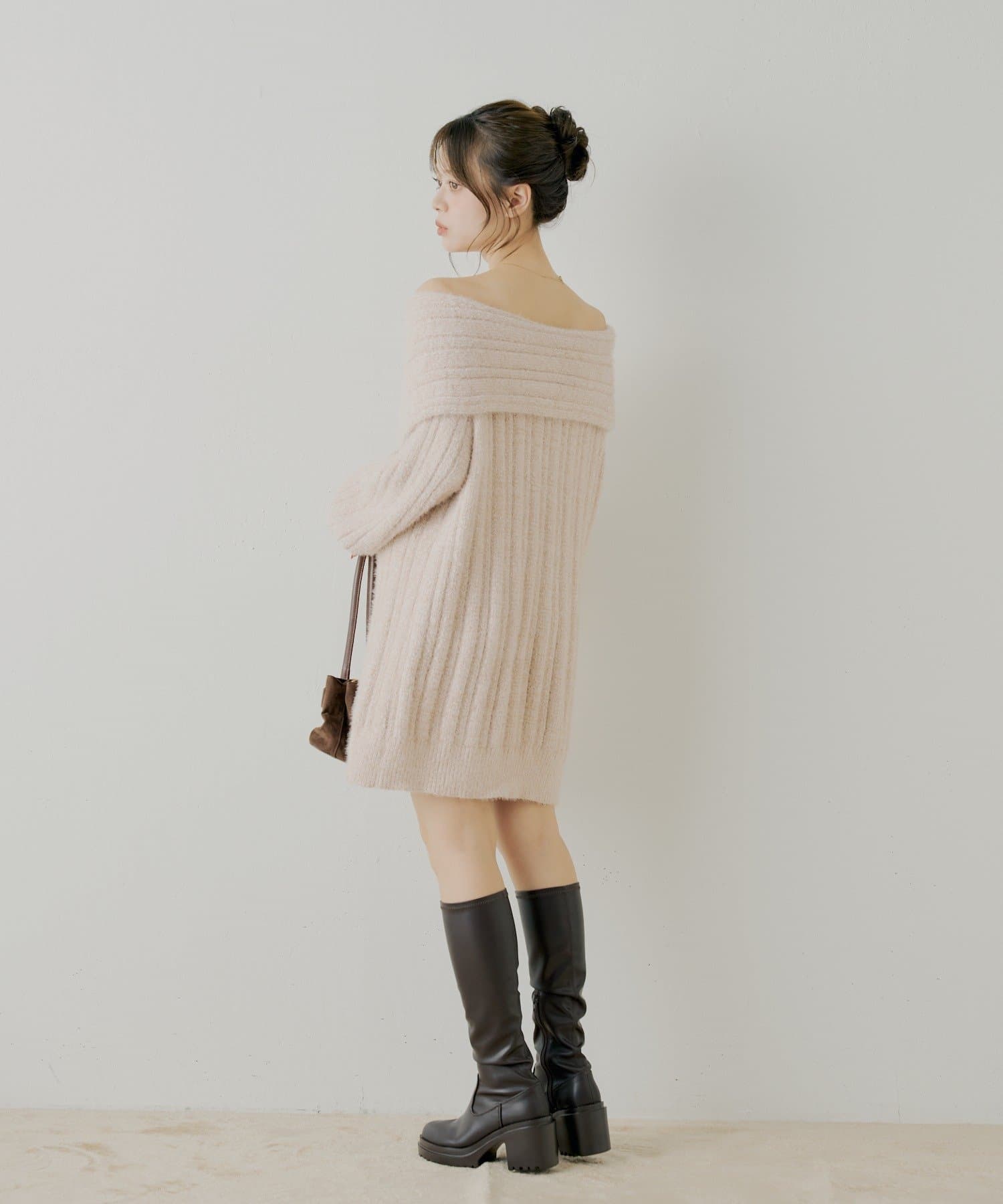 【Chico】前後2wayシャギーオフショルミニワンピース