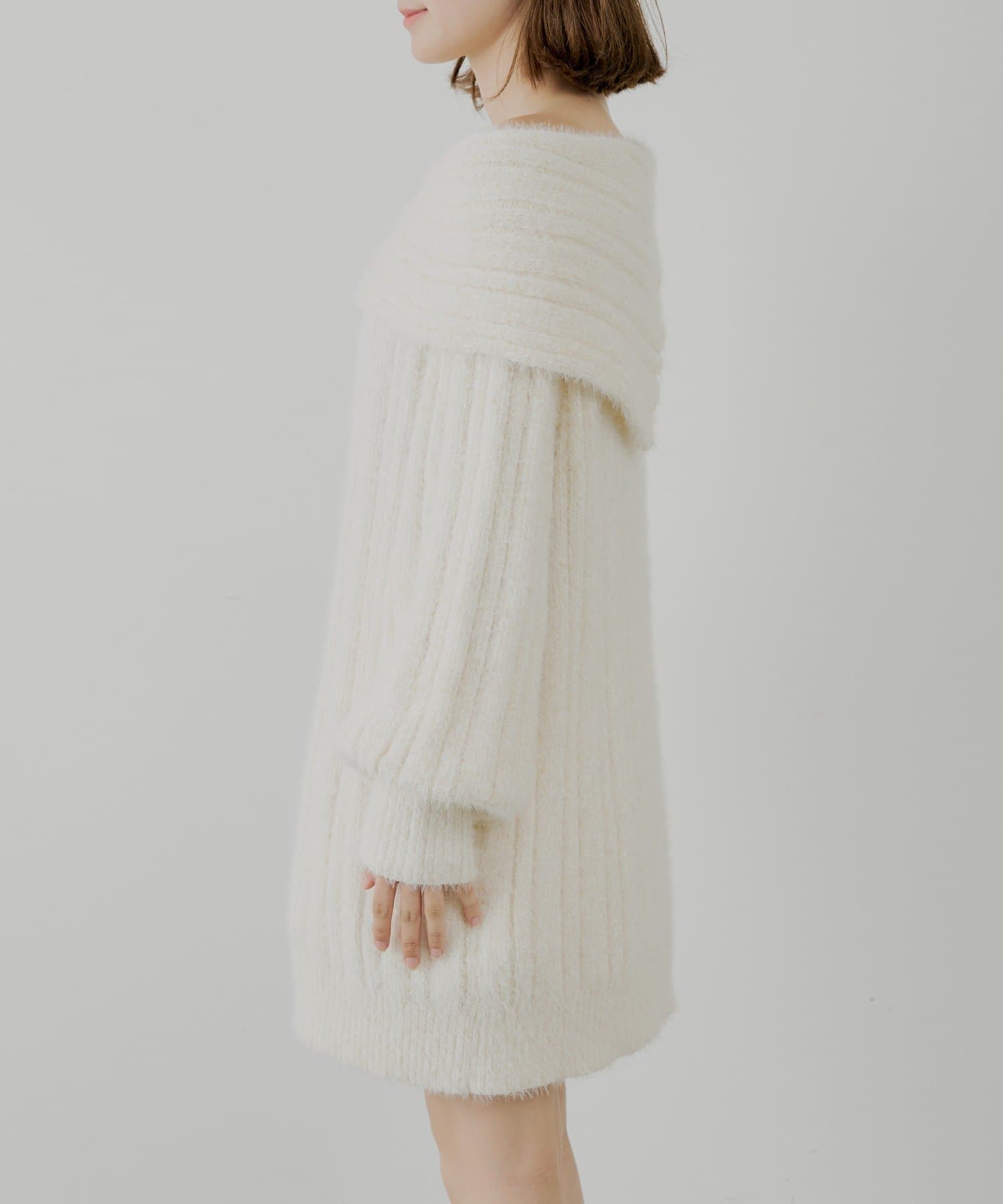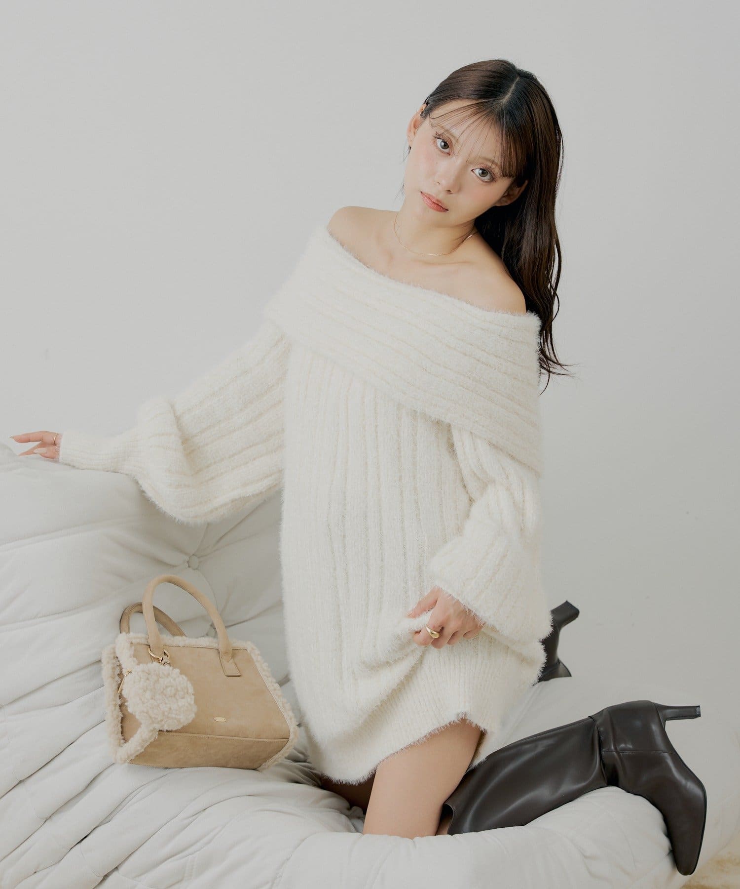 ふわふわのシャギーが魅力のオフショルミニワンピース登場!