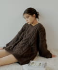 ・シンプルながらも存在感のあるケーブル編みが、コーディネートのアクセントに。