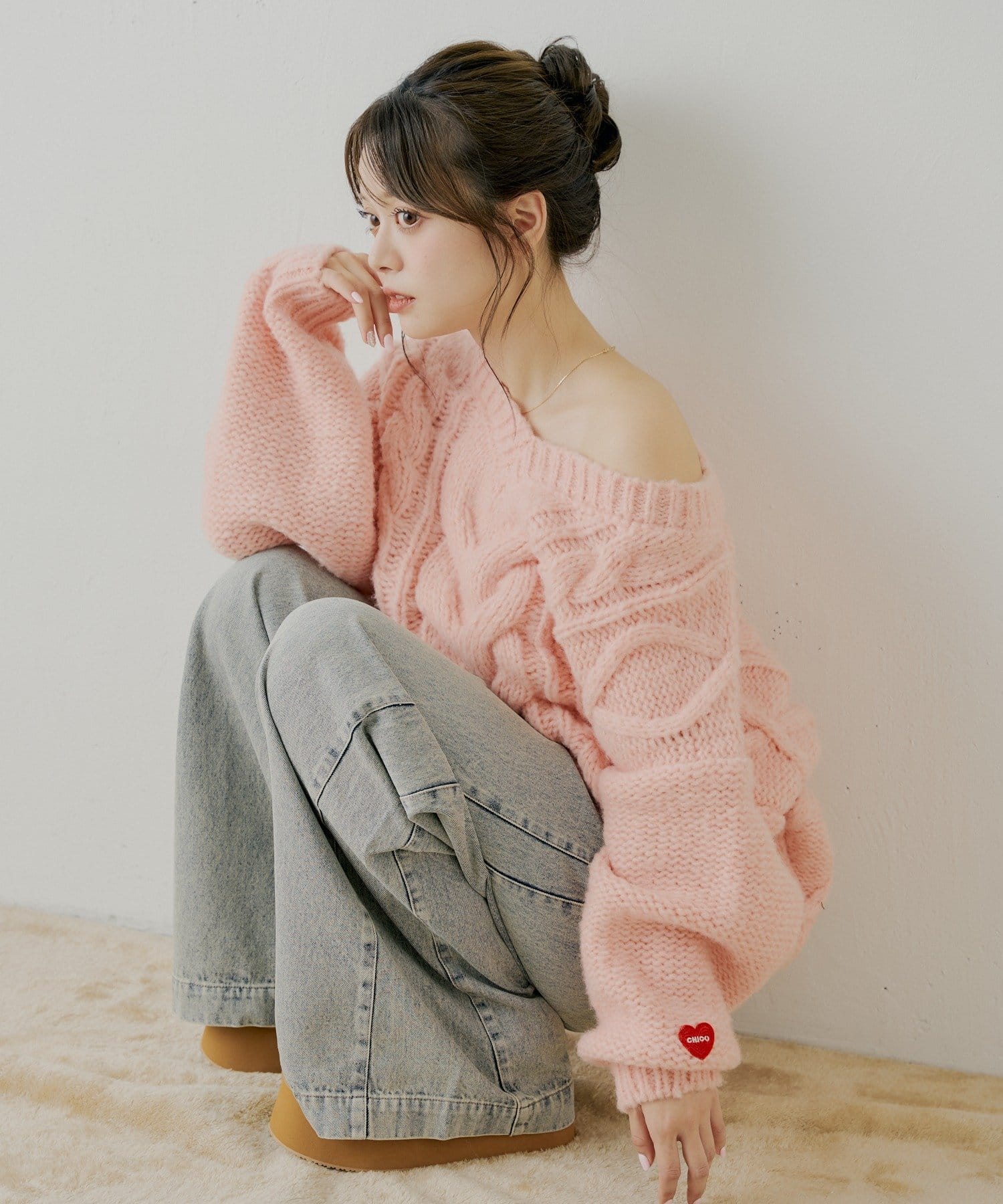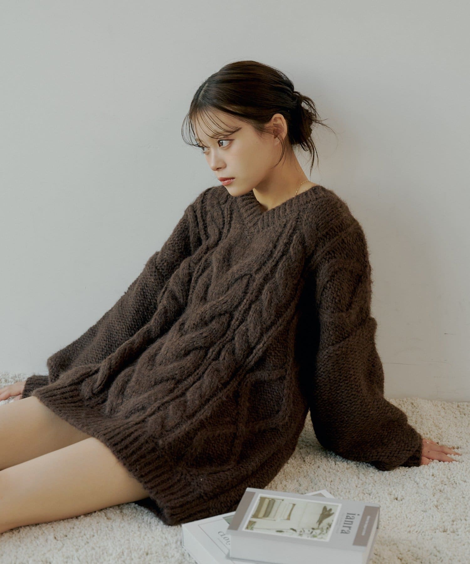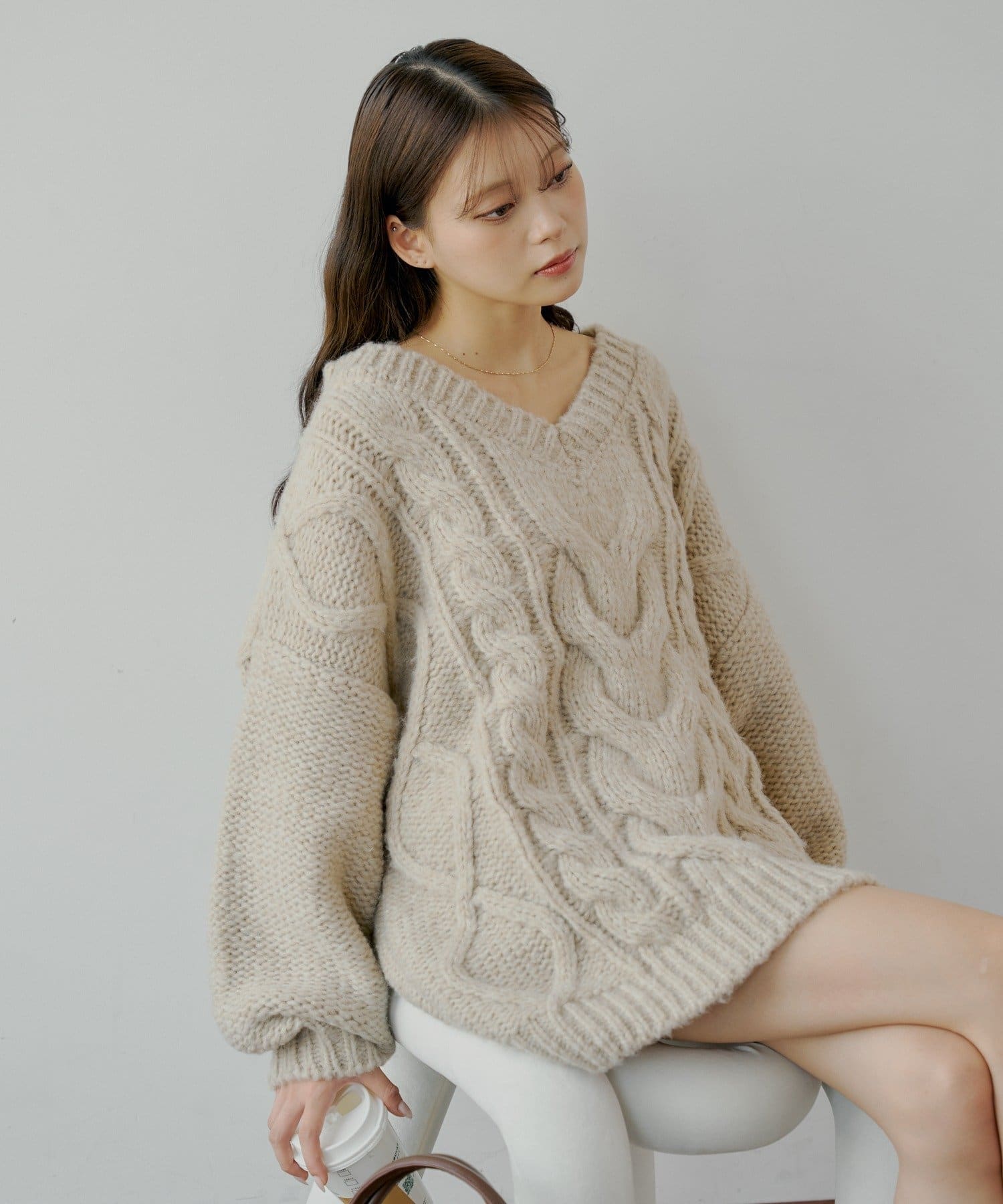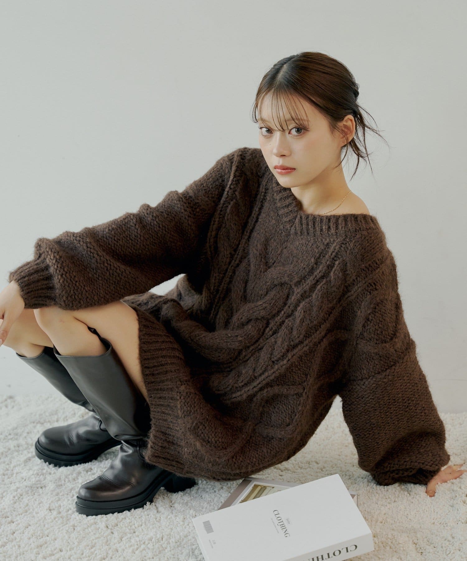 着るだけでトレンド感あふれるスタイリングが叶う、ケーブルVルーズニットワンピース