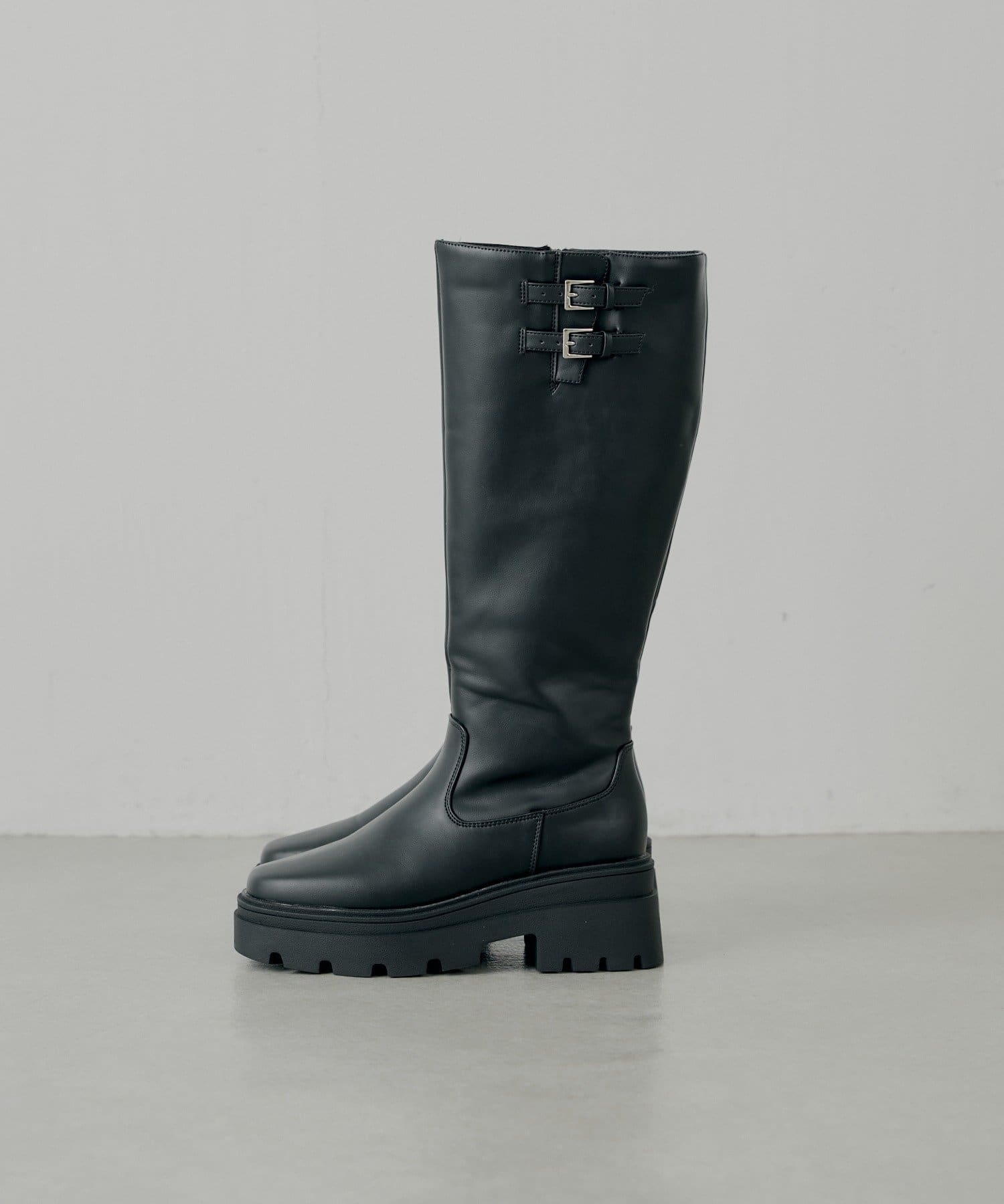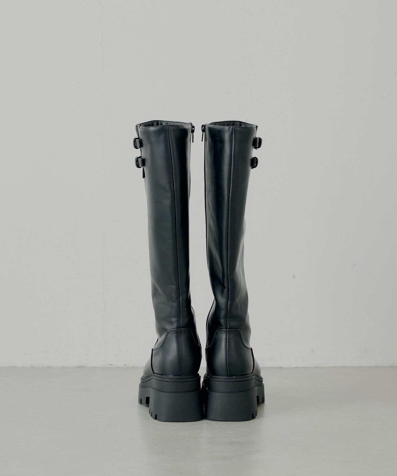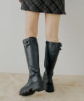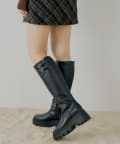 厚底ベルトデザインロングブーツ