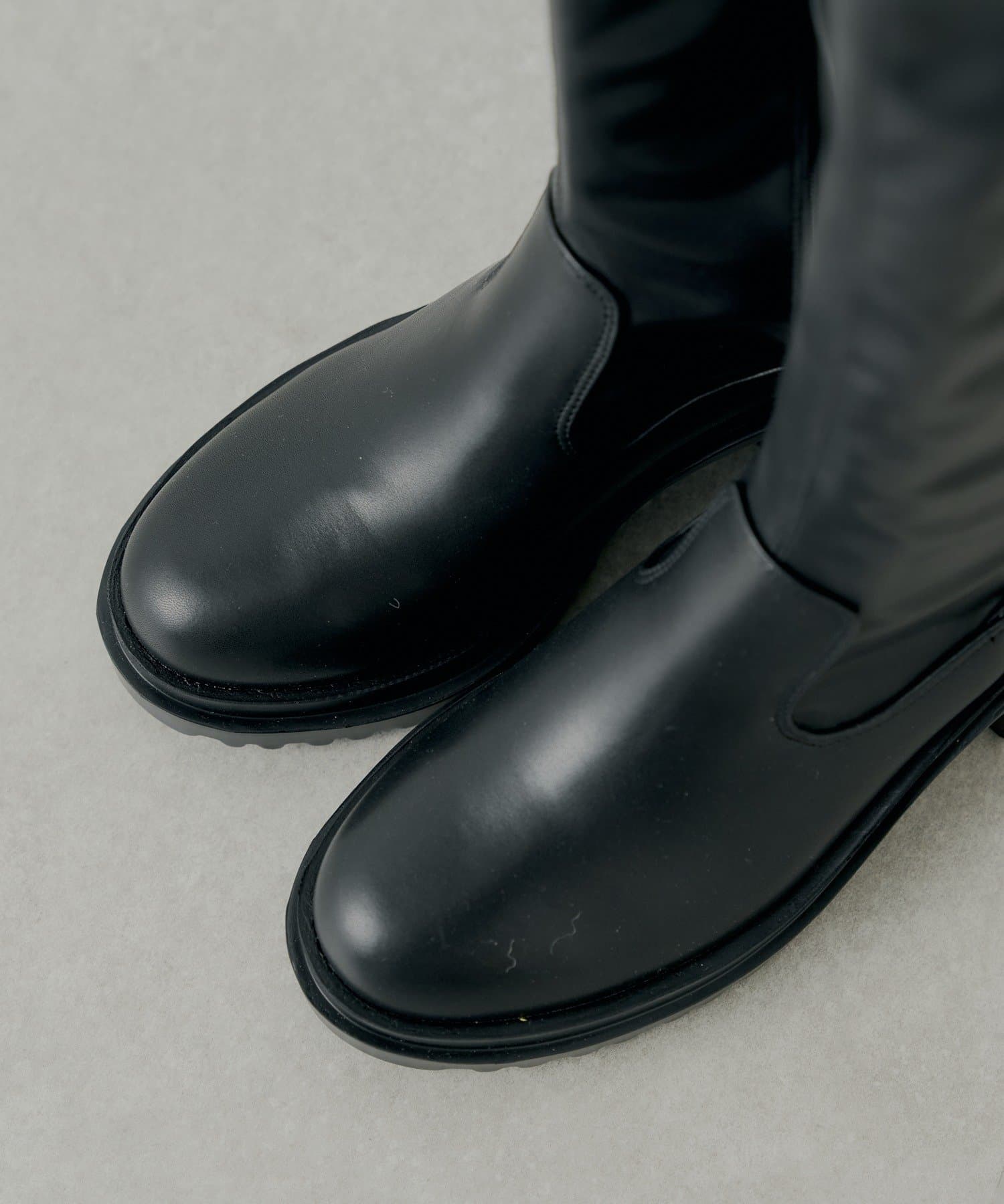 スタイルアップと履き心地を両立した厚底チャンキーストレッチロングブーツ