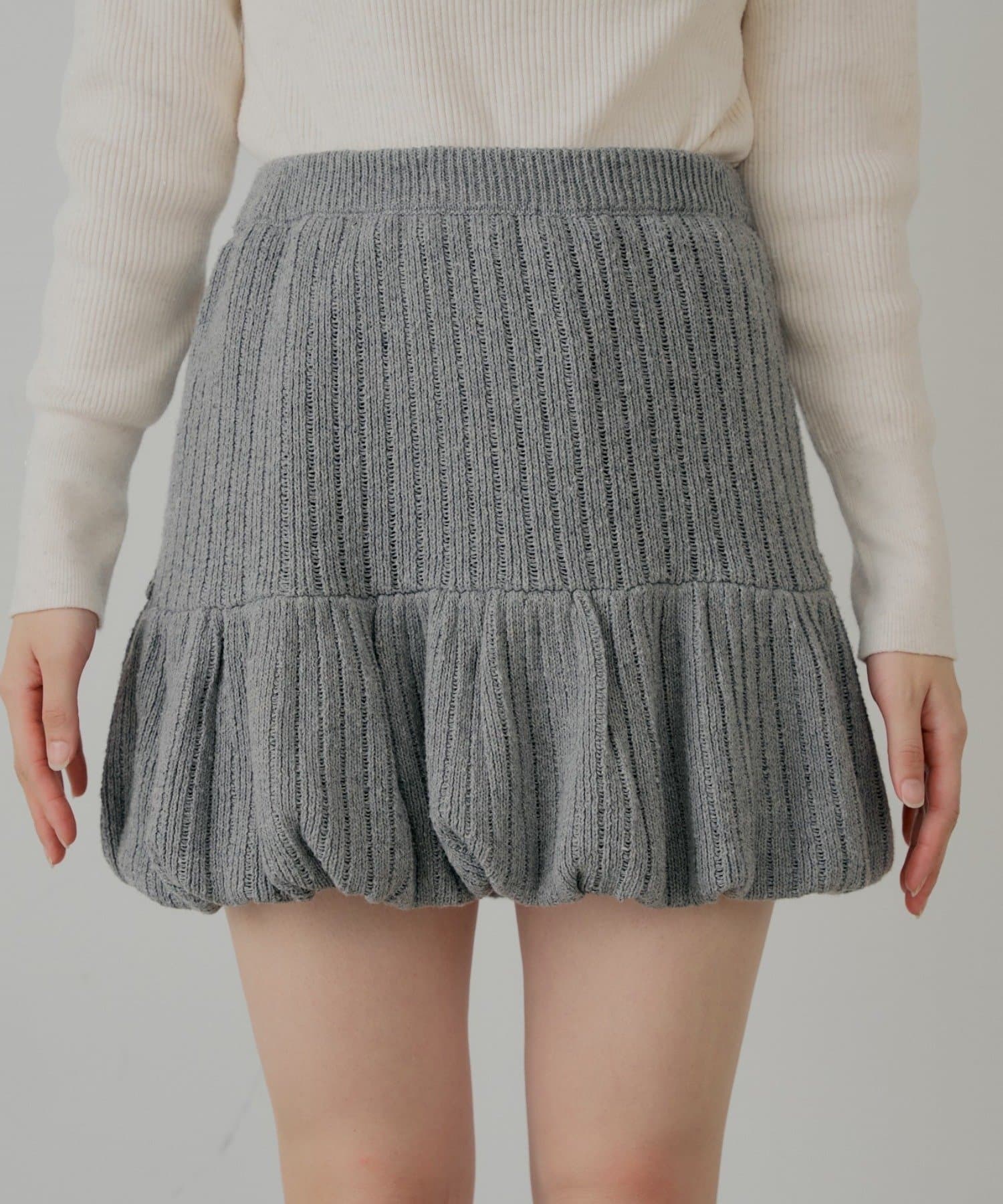 ・歩くたびに揺れるバルーンシルエットが、女性らしさを引き立てるニットスカート。