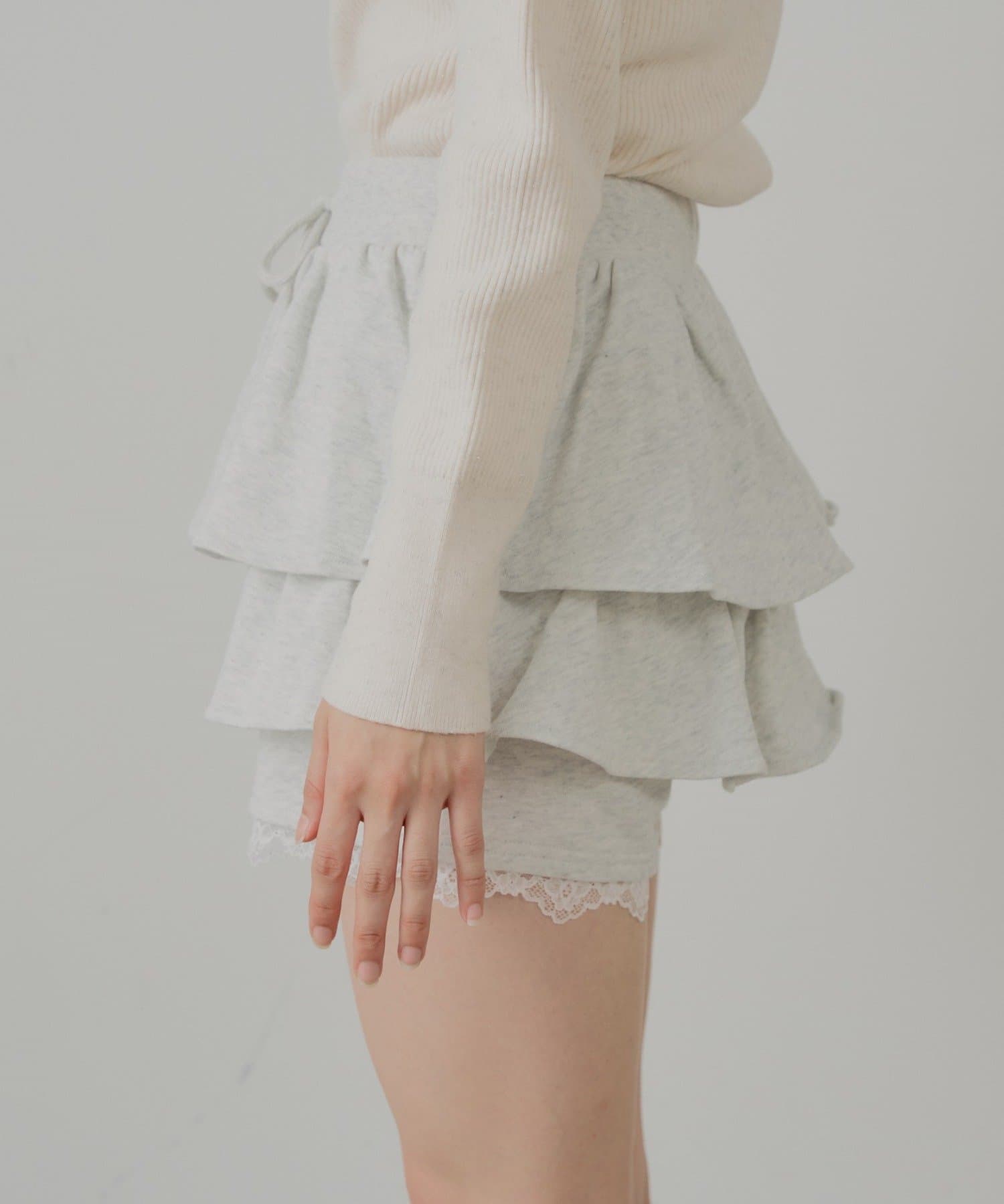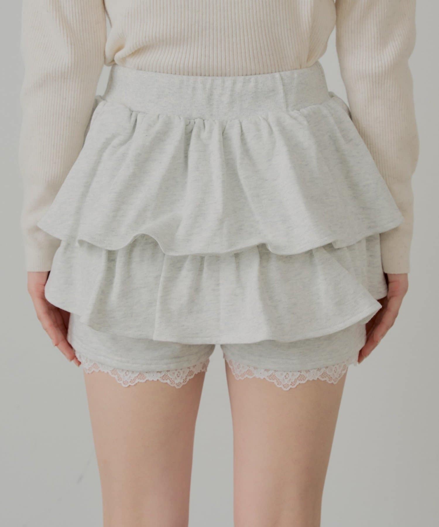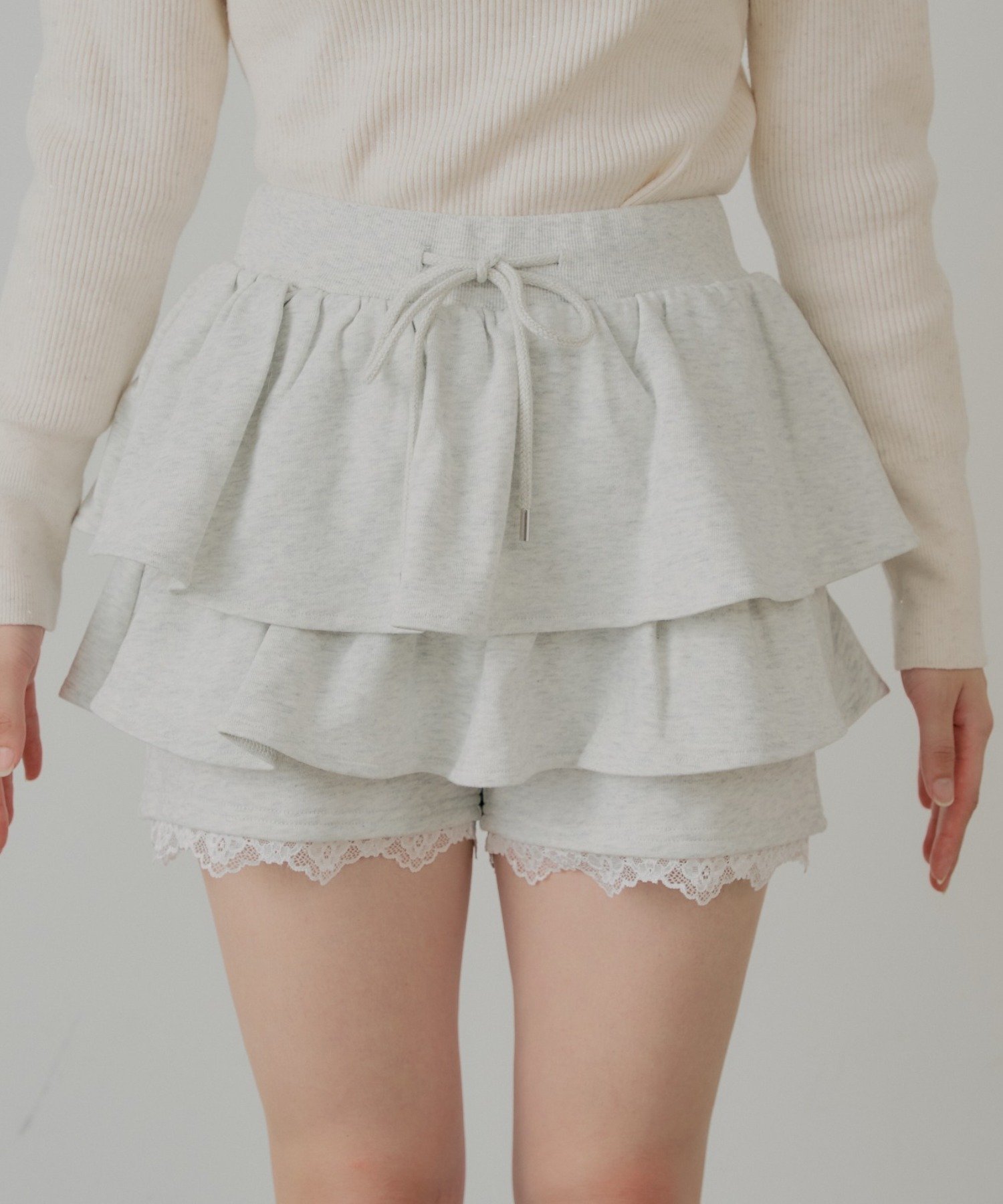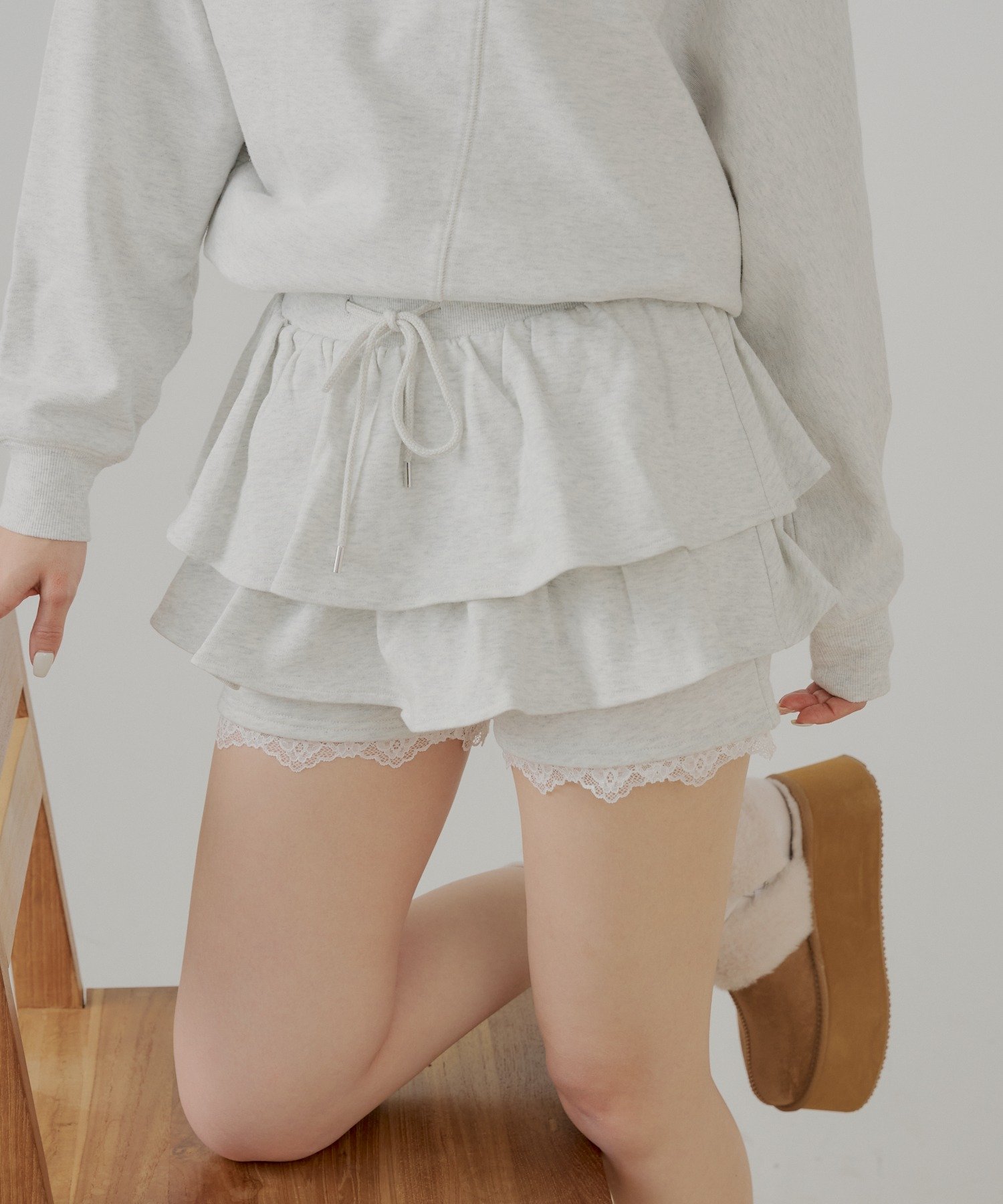 裾のレースがワンポイントアクセントなレイヤードスウェットバルーンショートパンツ