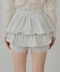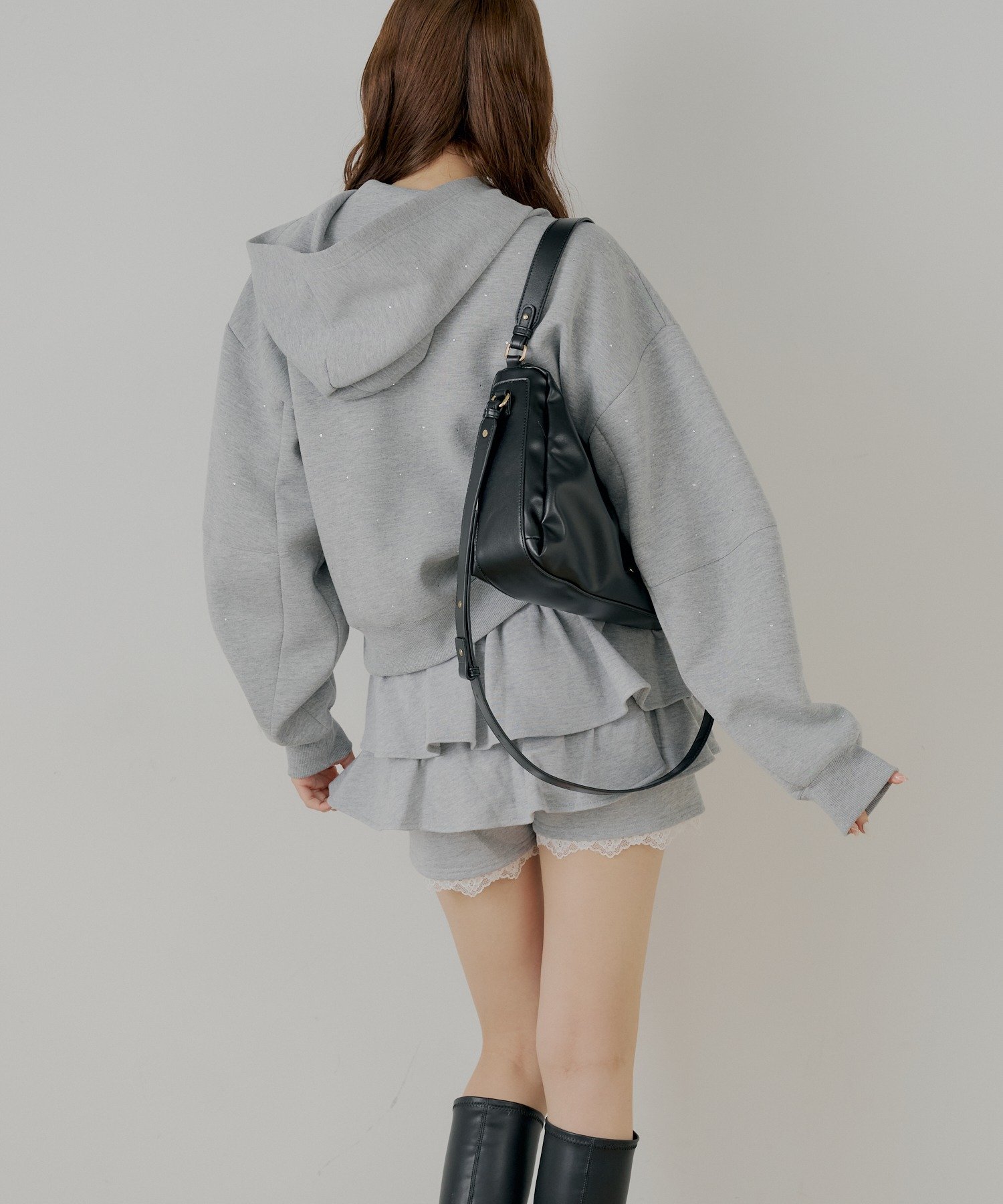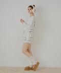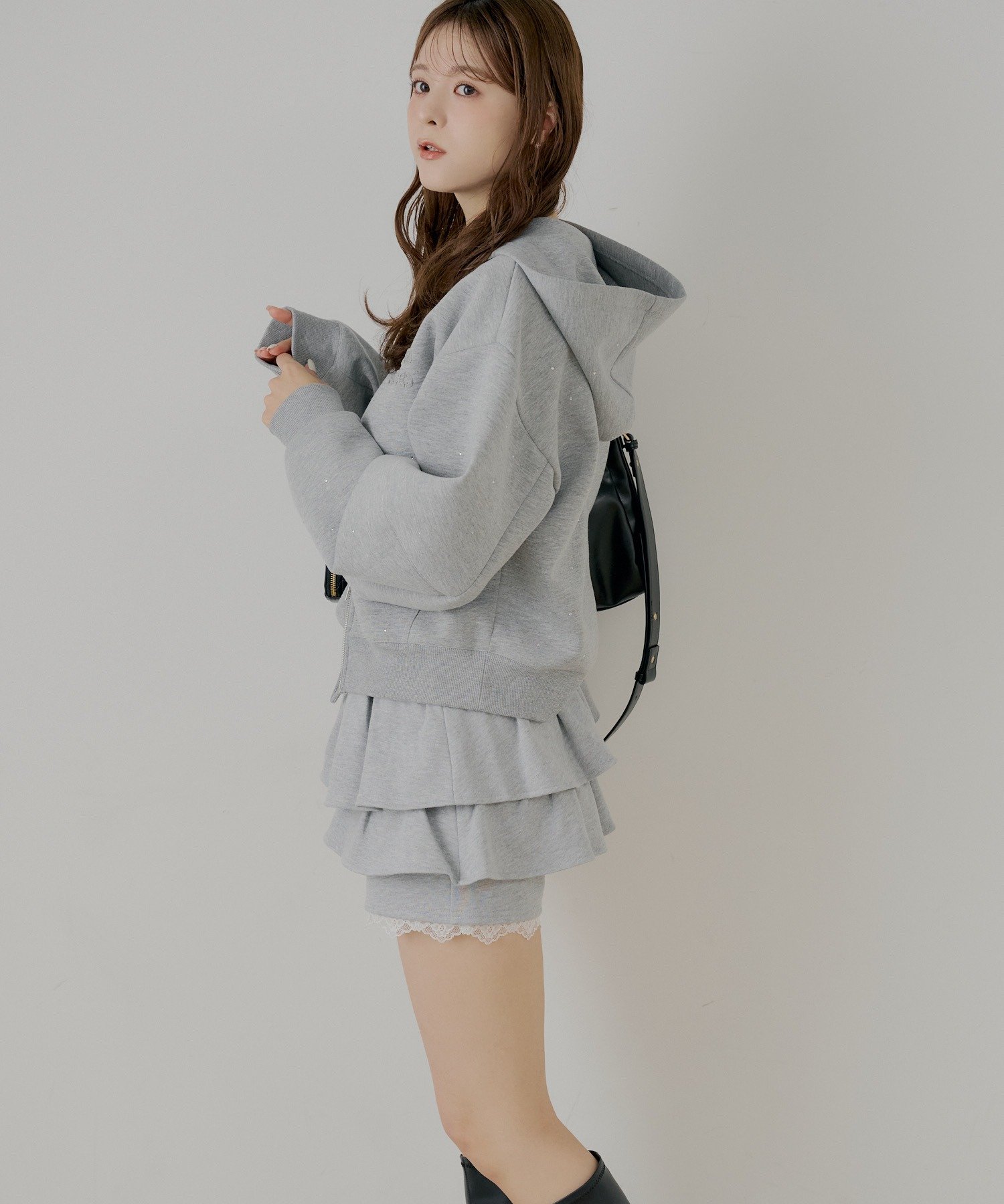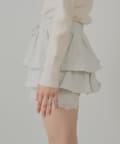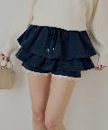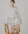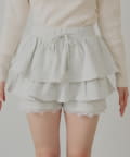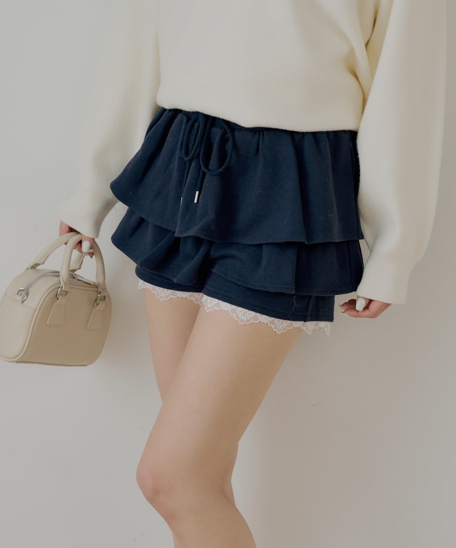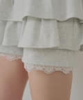 裾のレースがワンポイントアクセントなレイヤードスウェットバルーンショートパンツ