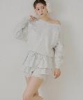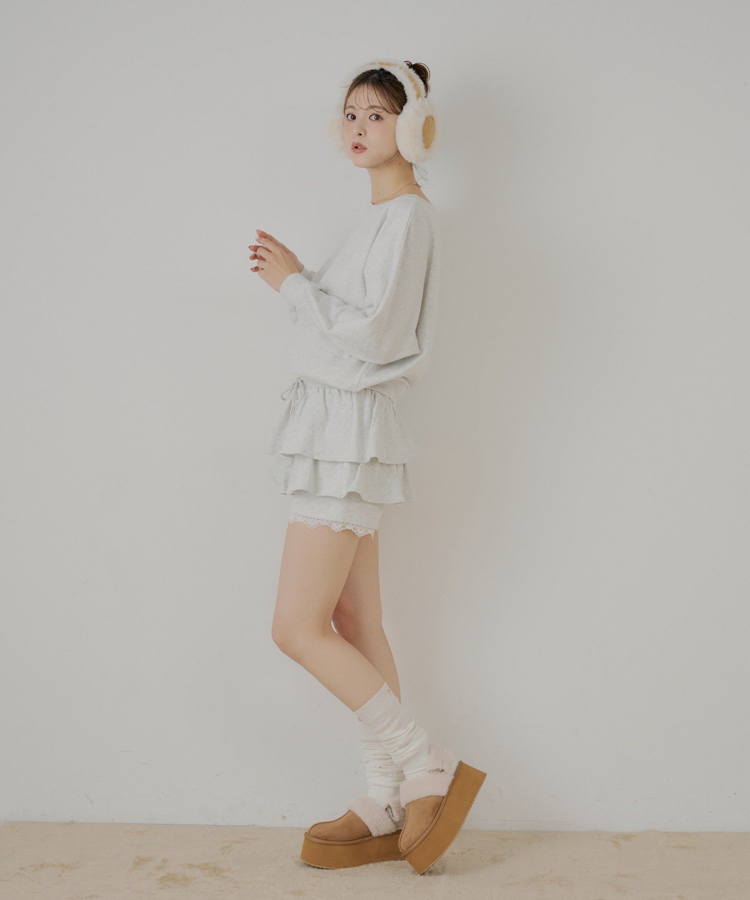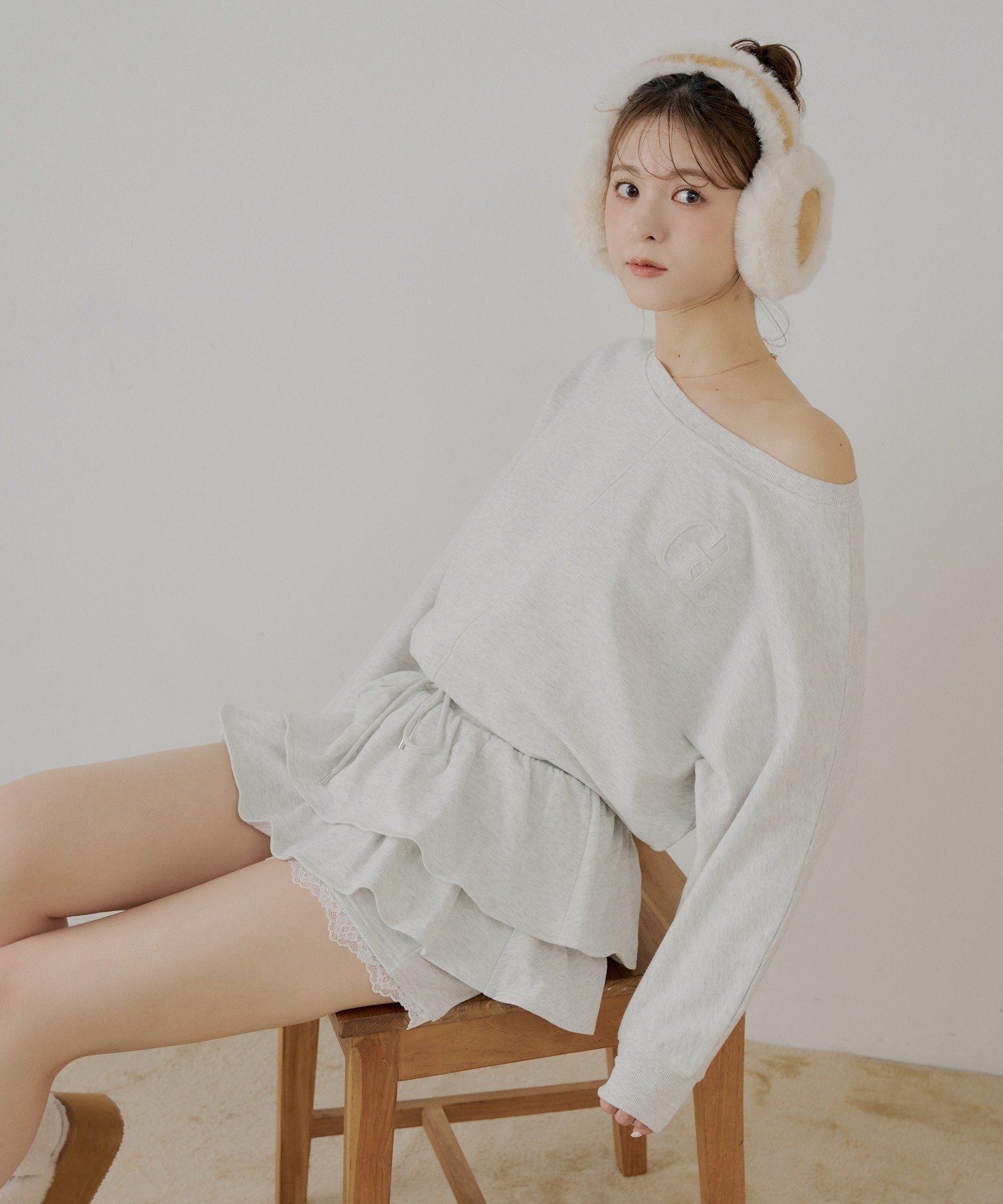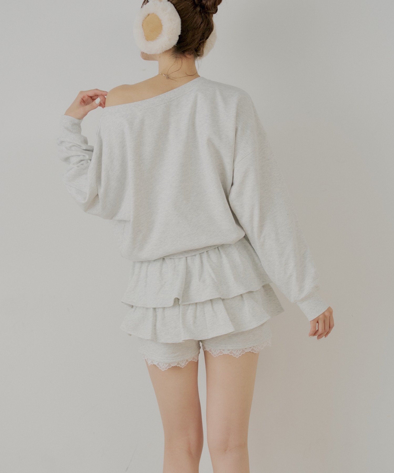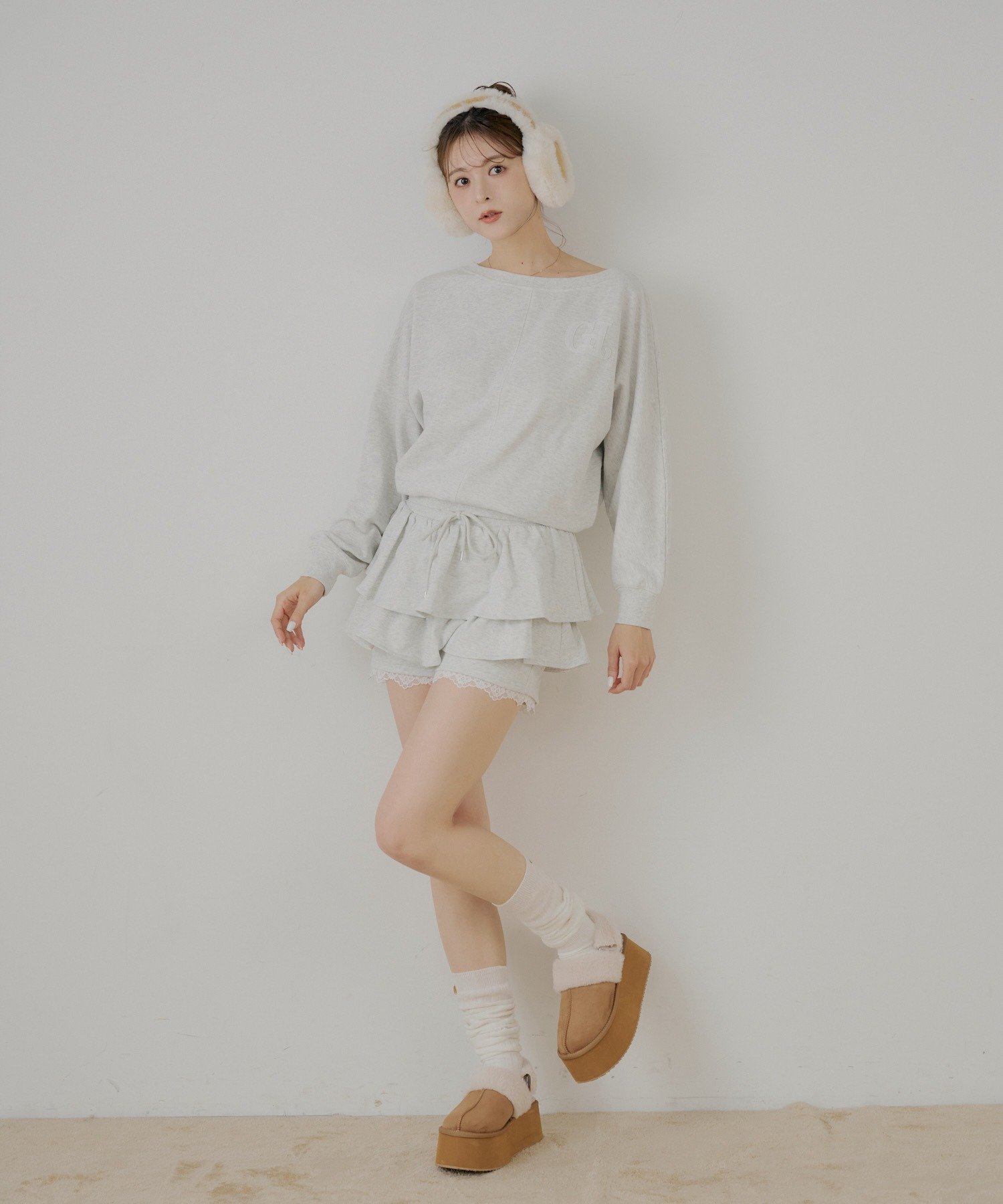 ・裾にあしらわれた繊細なレースが、さりげないアクセントになり、カジュアルなスウェット素材に上品さをプラス。