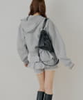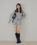 ・同素材のスウェットトップスと合わせて、統一感のあるコーディネートに。