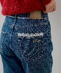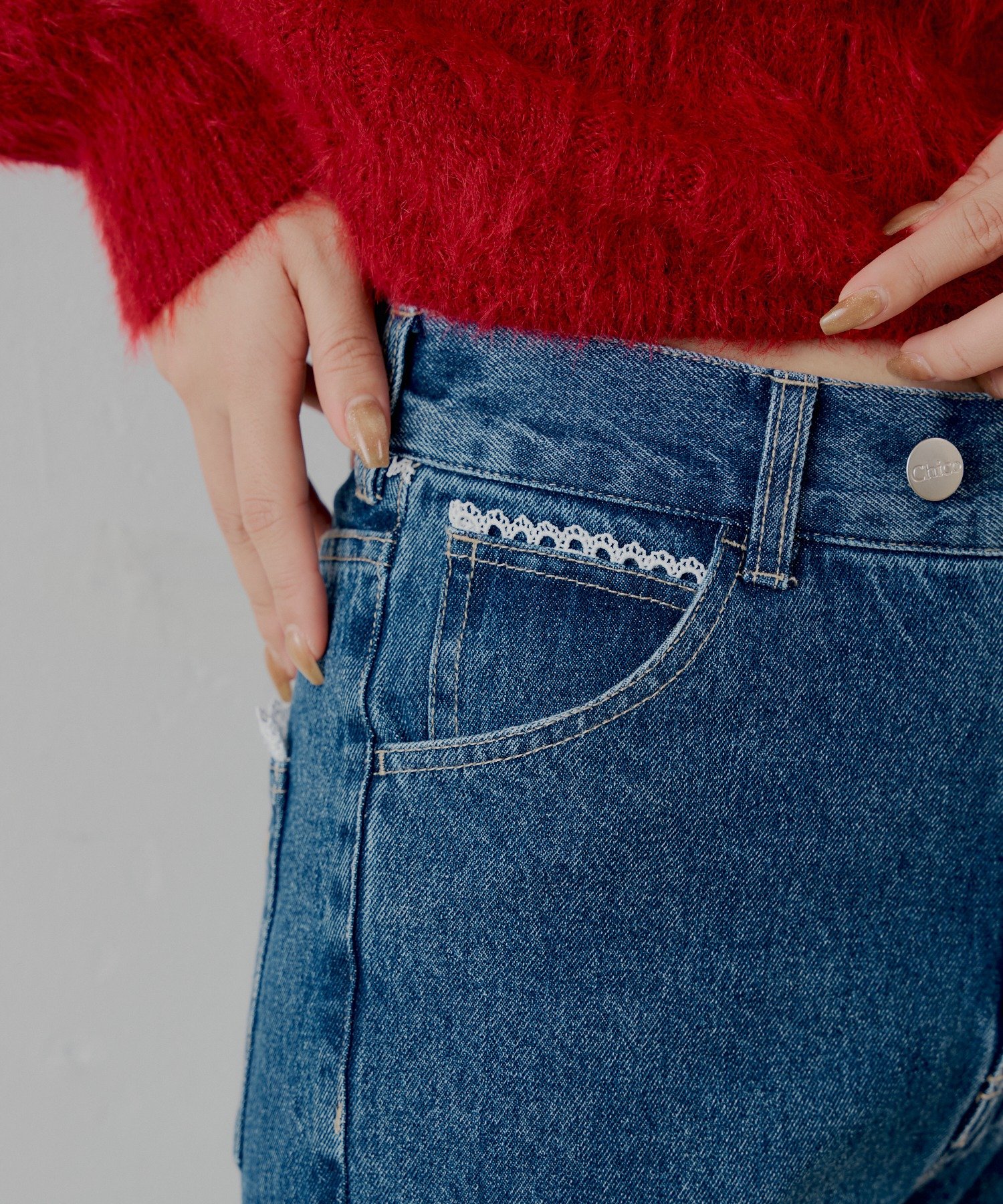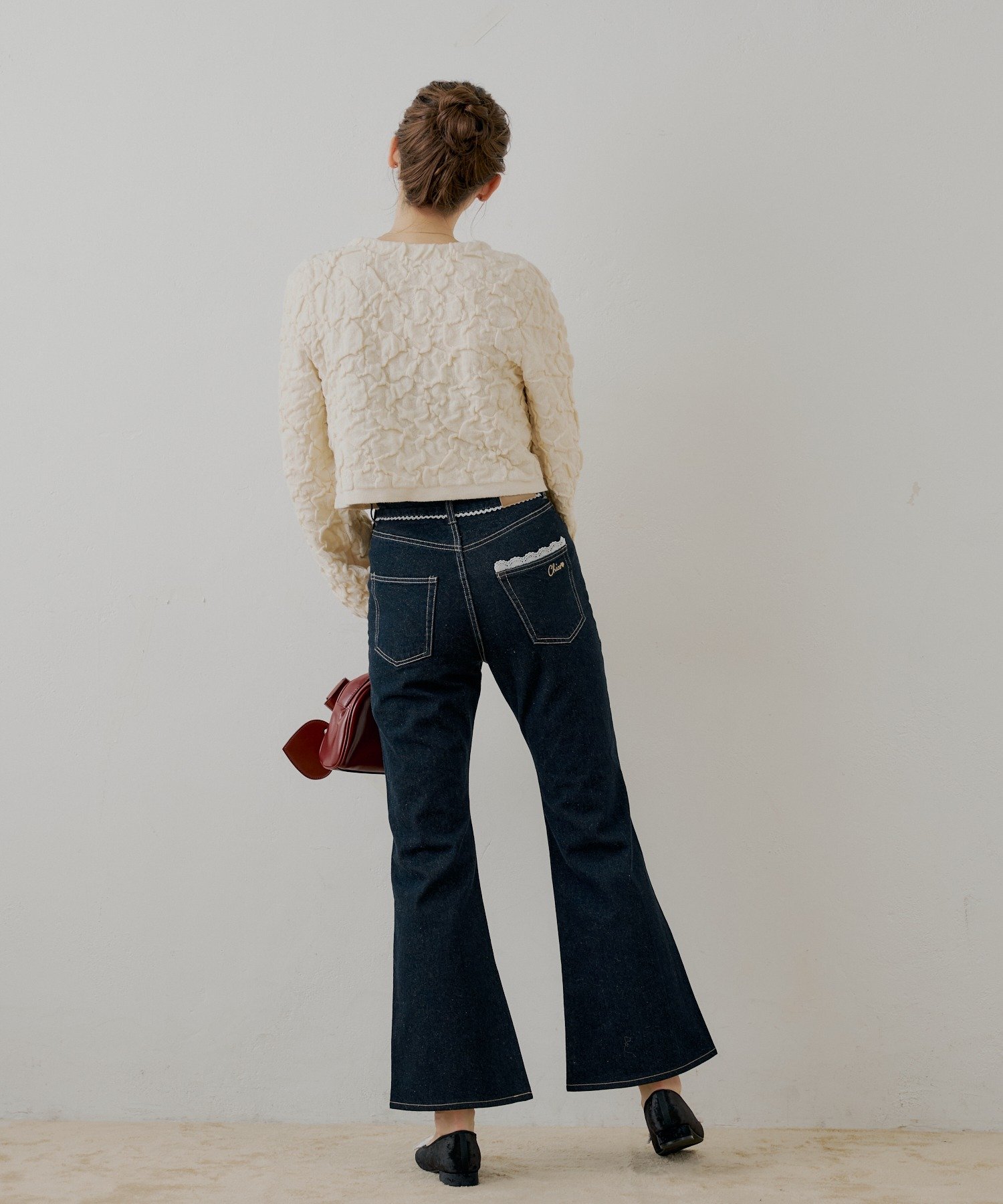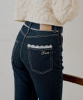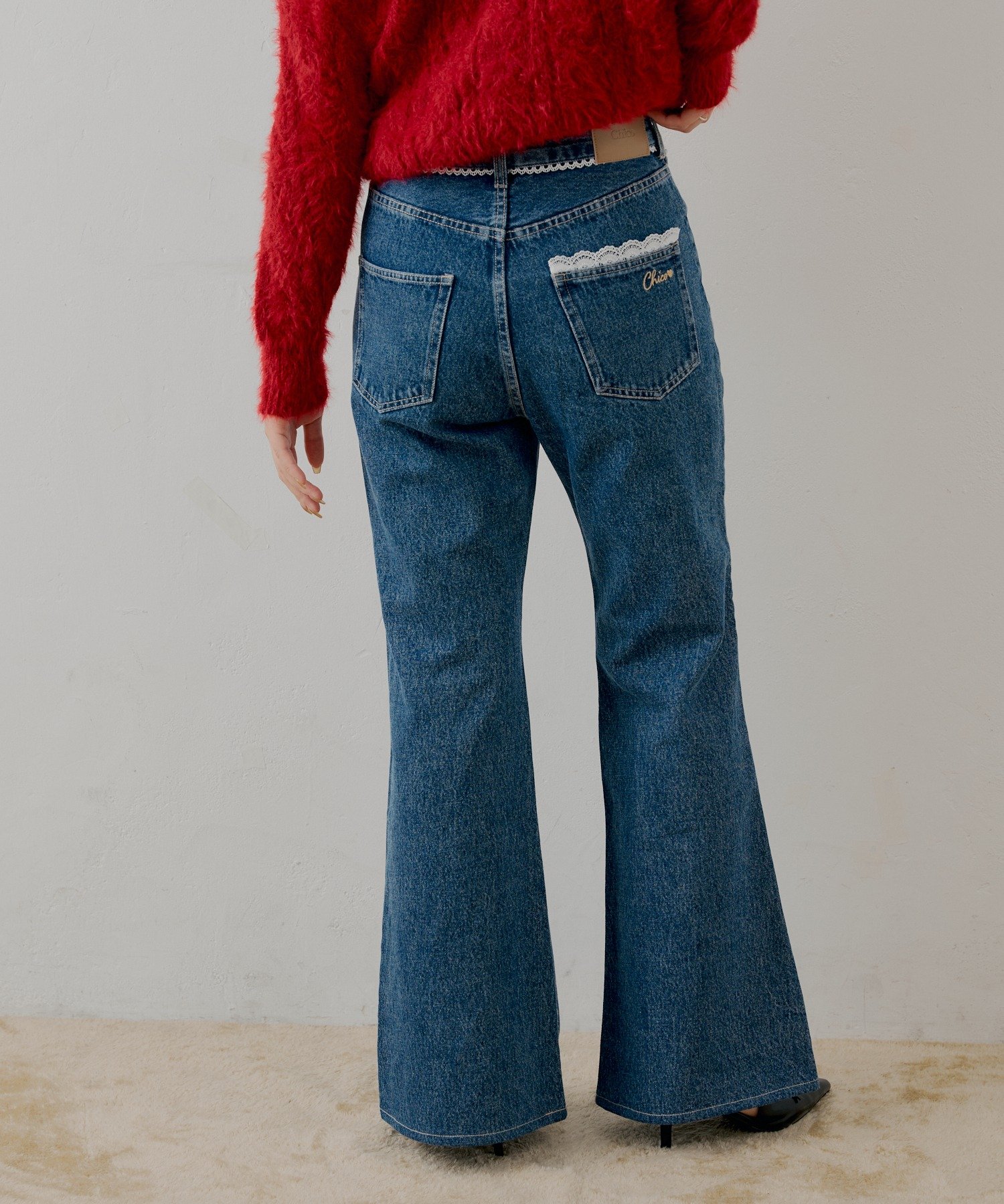 ・バックのレースとロゴ刺繍が可愛いフレアデニム。