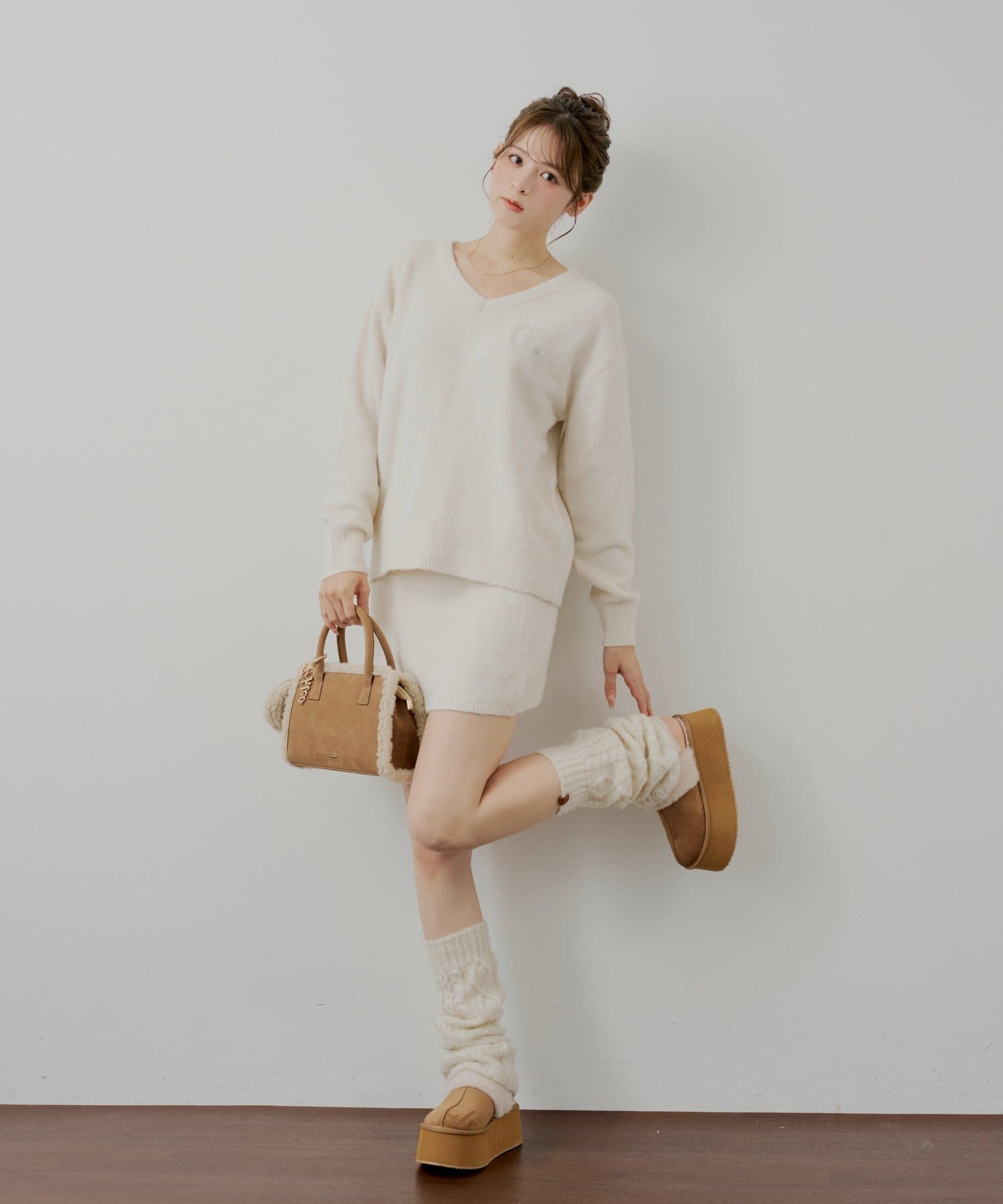 ・同素材のニットスカートと合わせてセットアップで着るのが可愛くておすすめです。