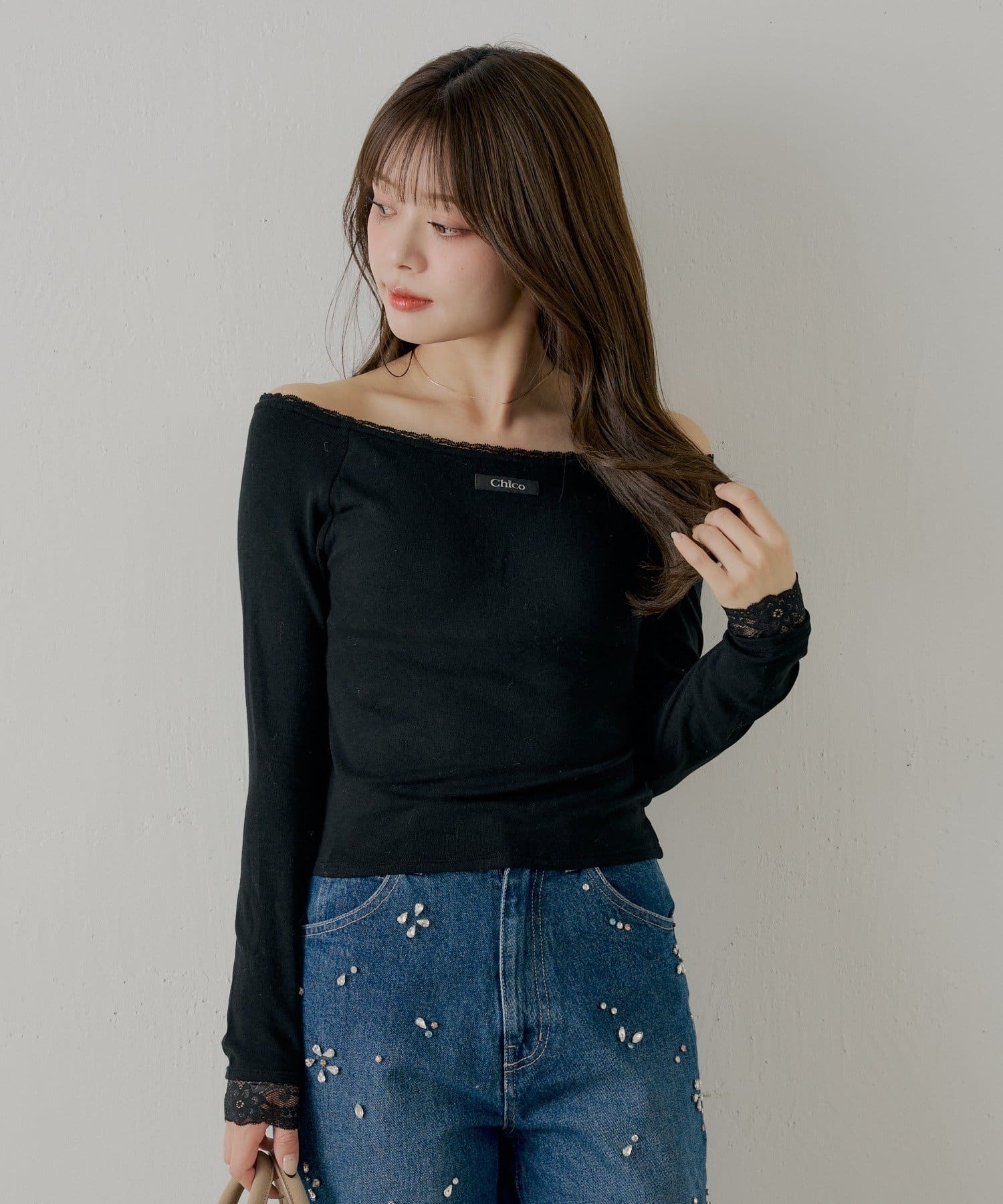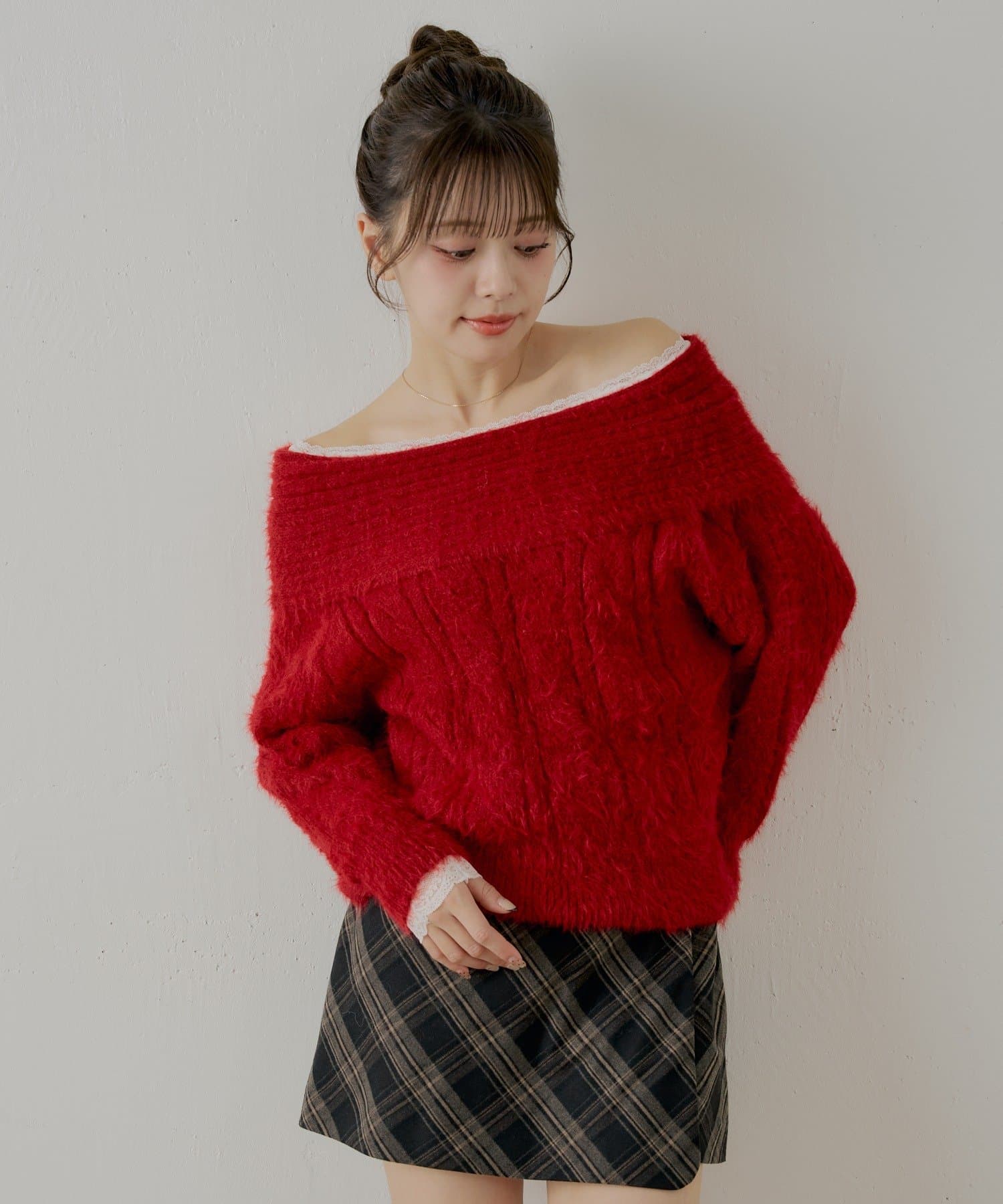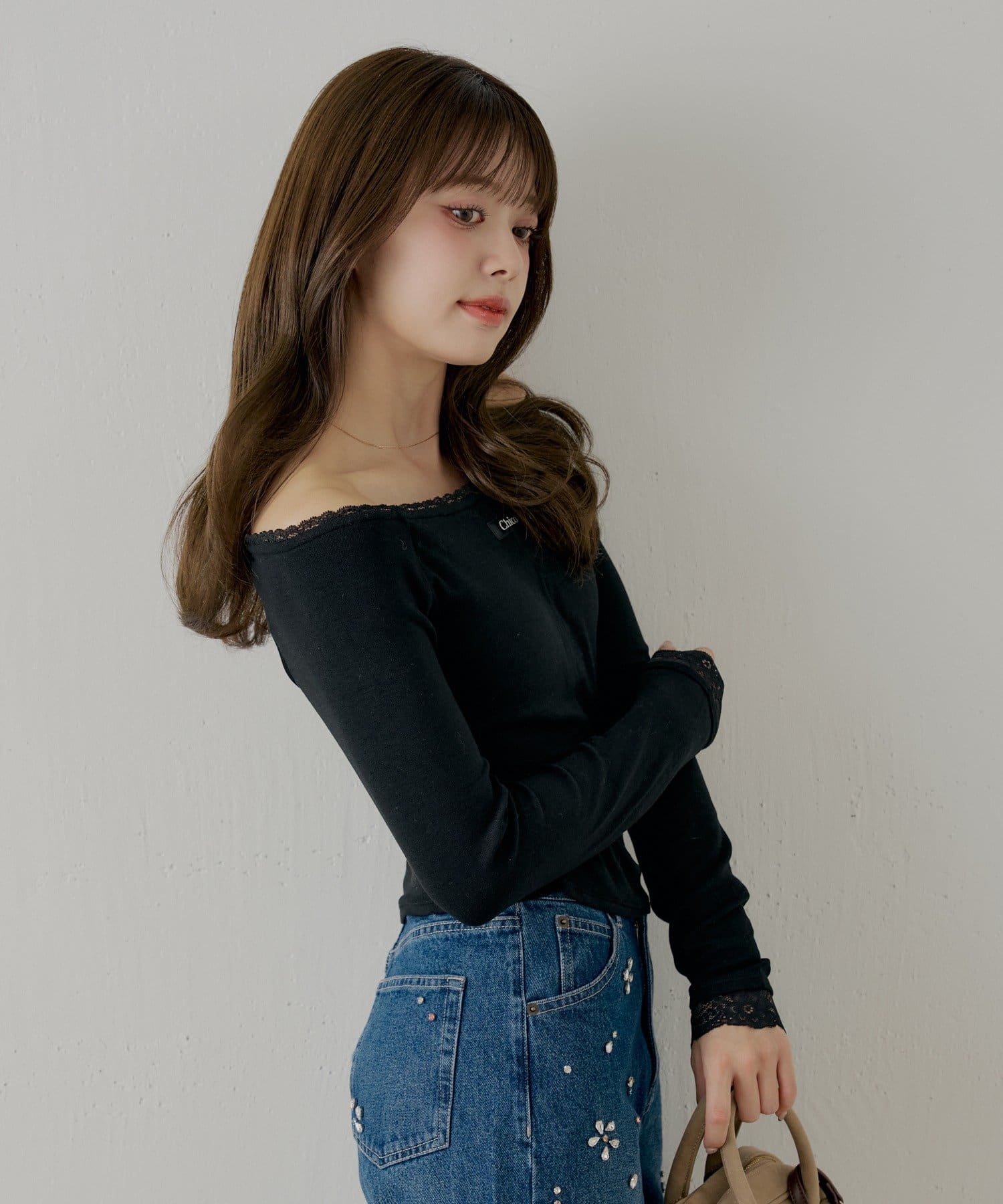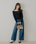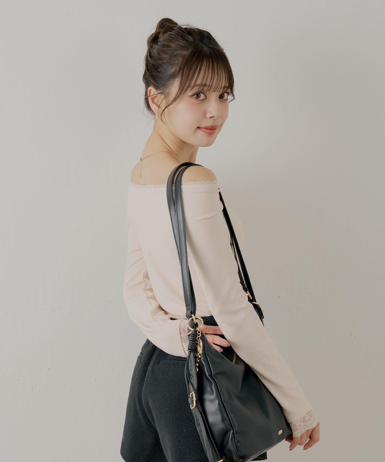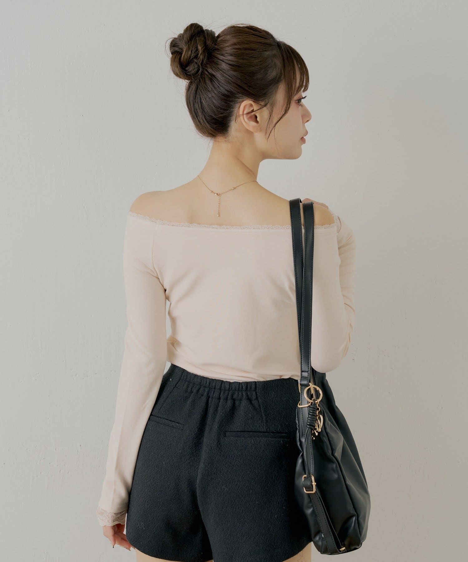・肩を少し落としてオフショルダーにして着るのもおすすめです。