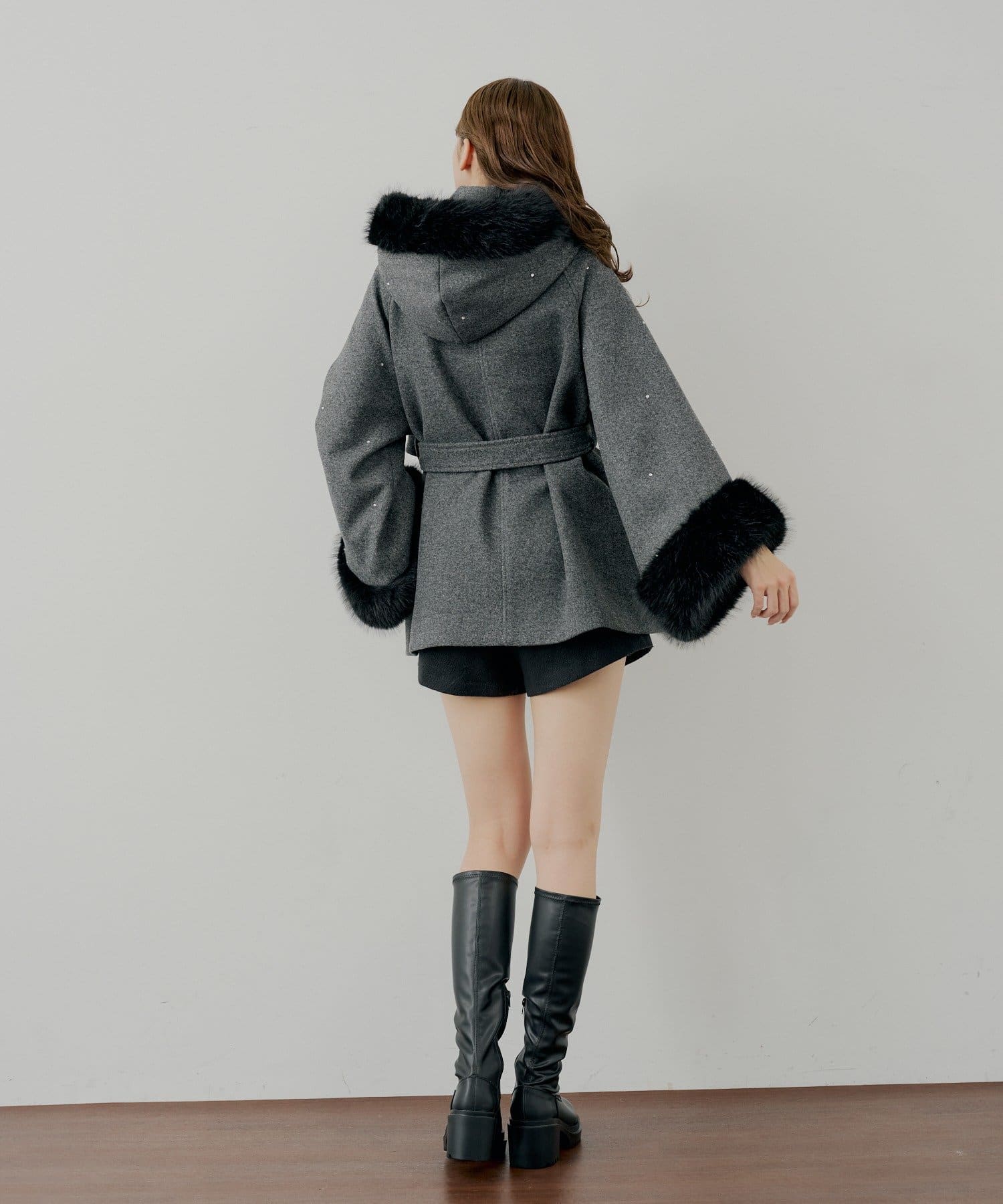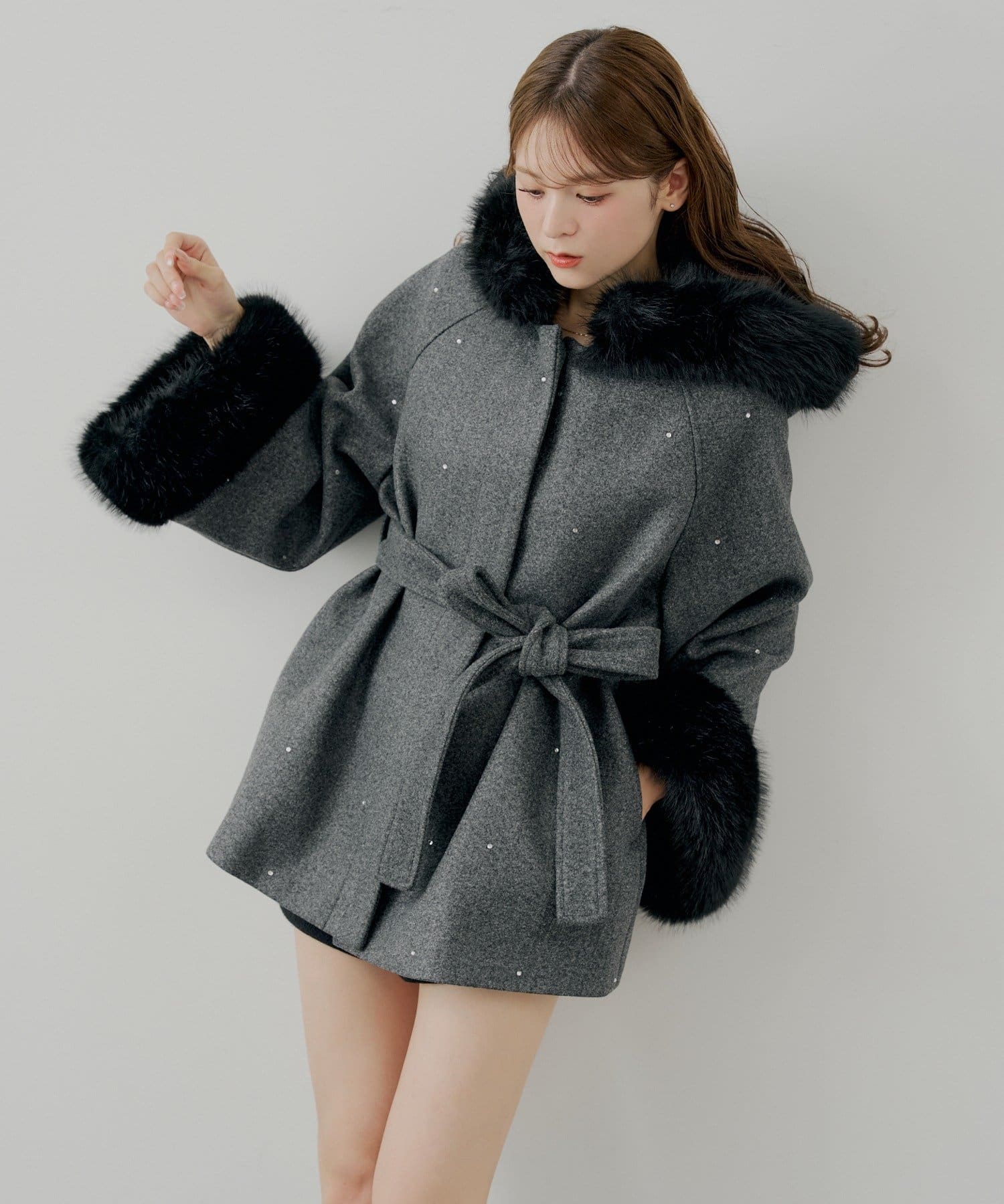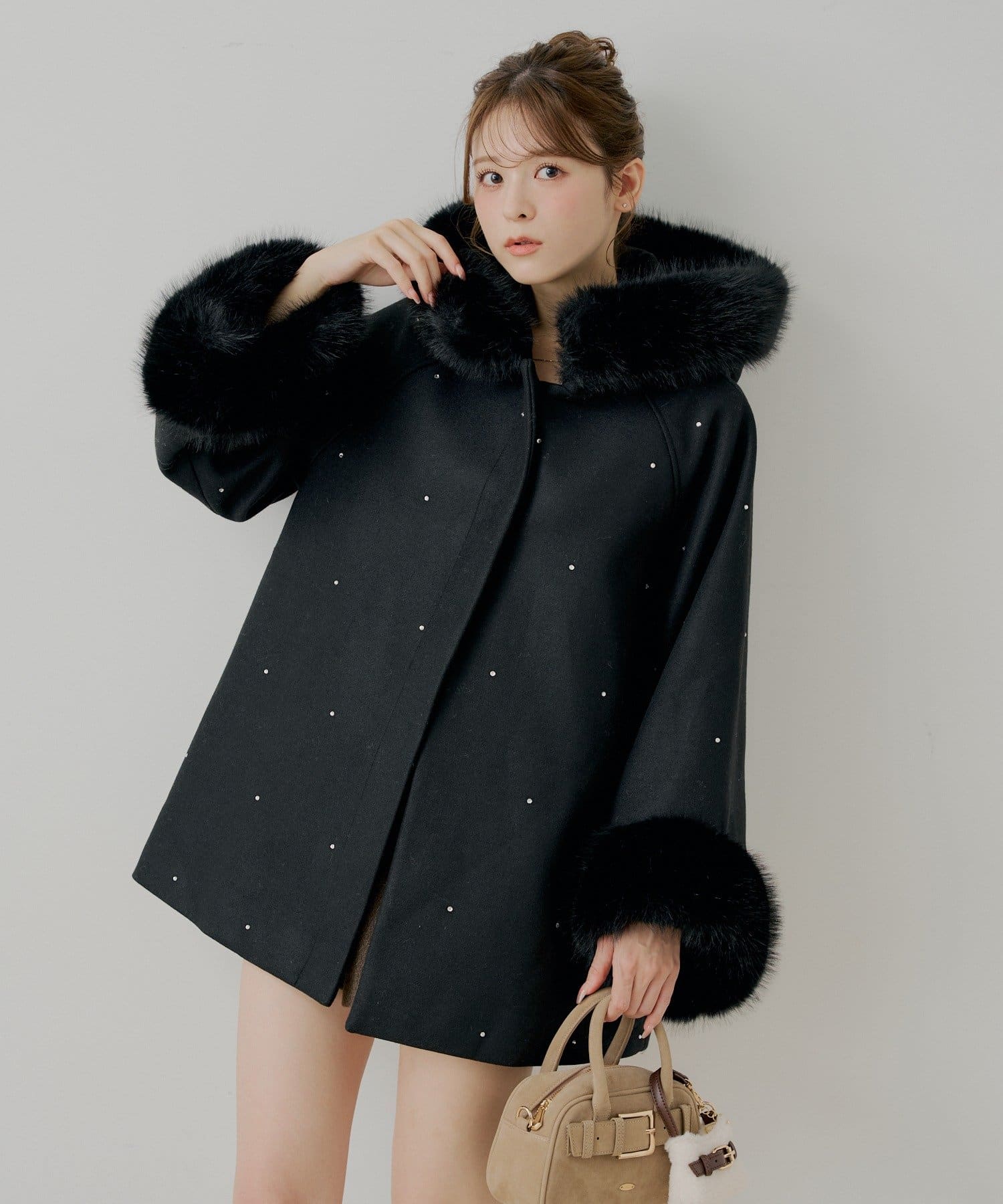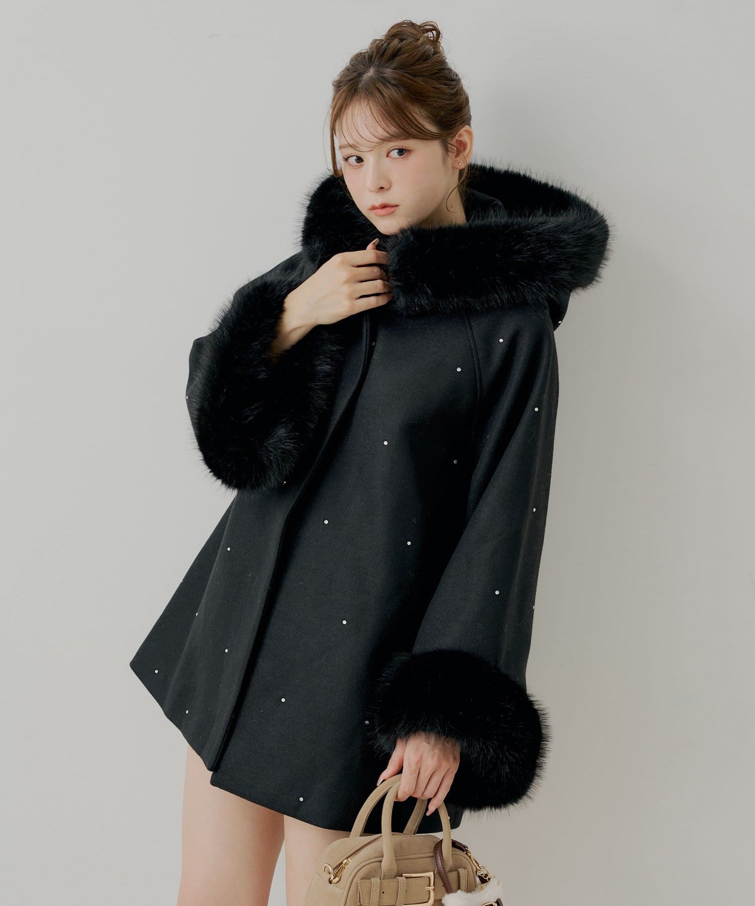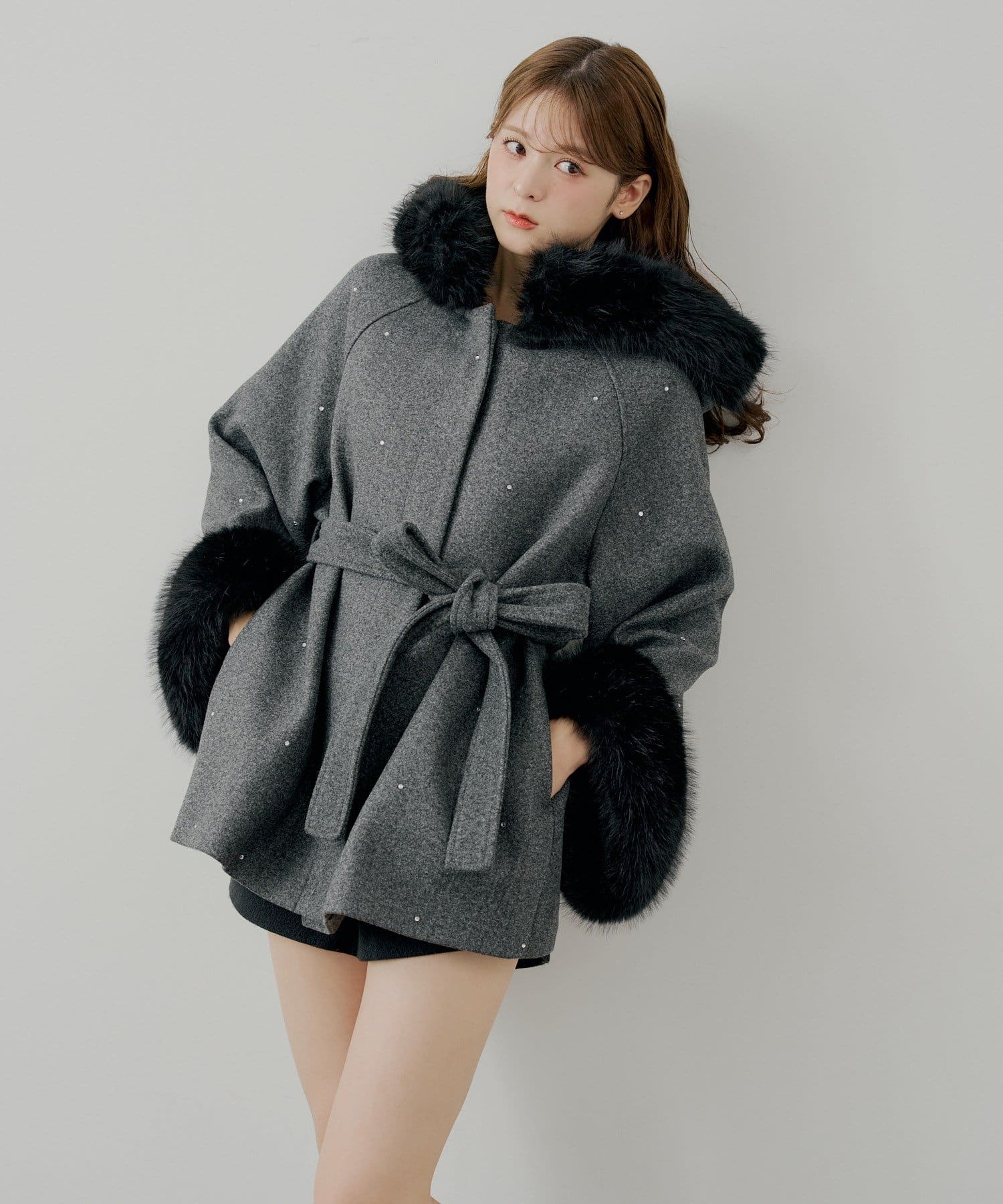 全体に散りばめられたビジューが目を惹くケープコート登場♡