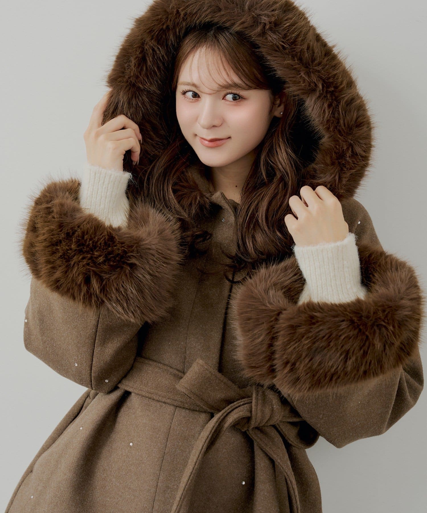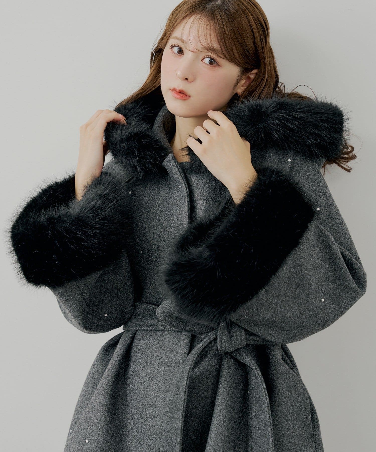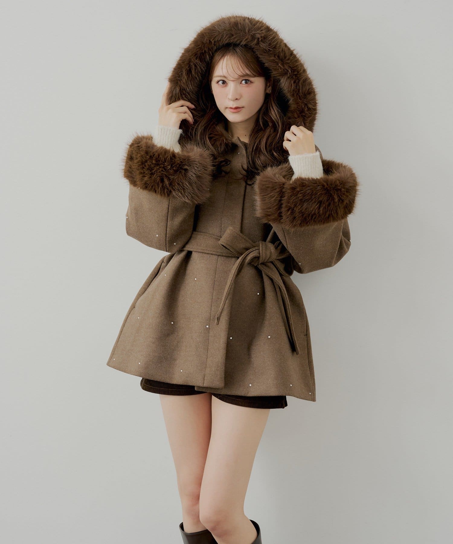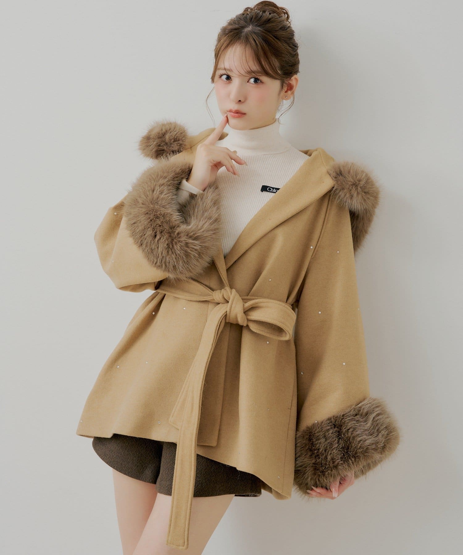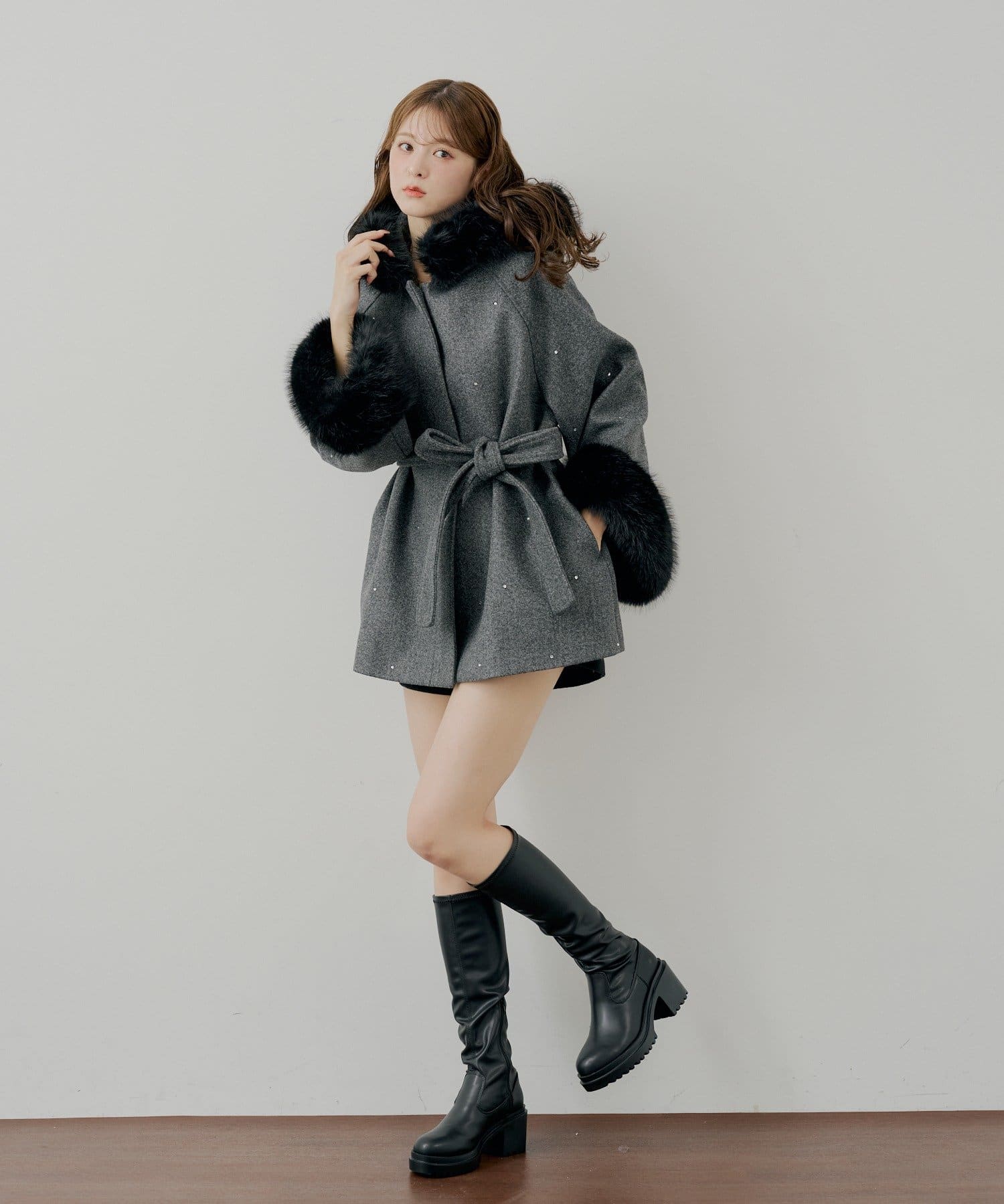 全体に散りばめられたビジューが目を惹くケープコート登場♡