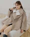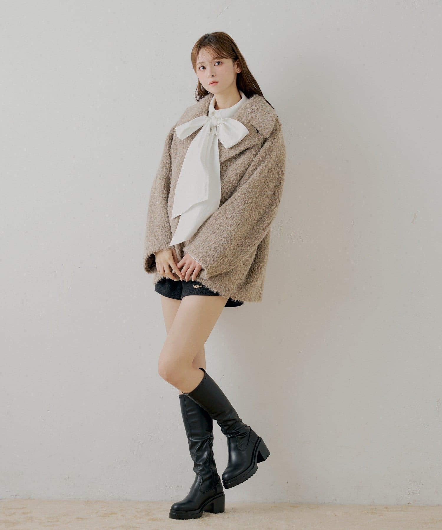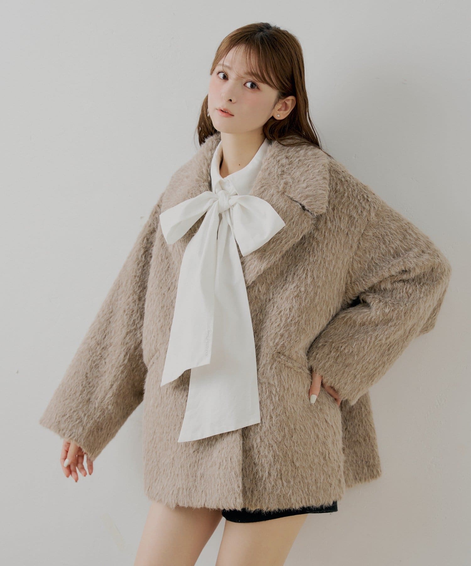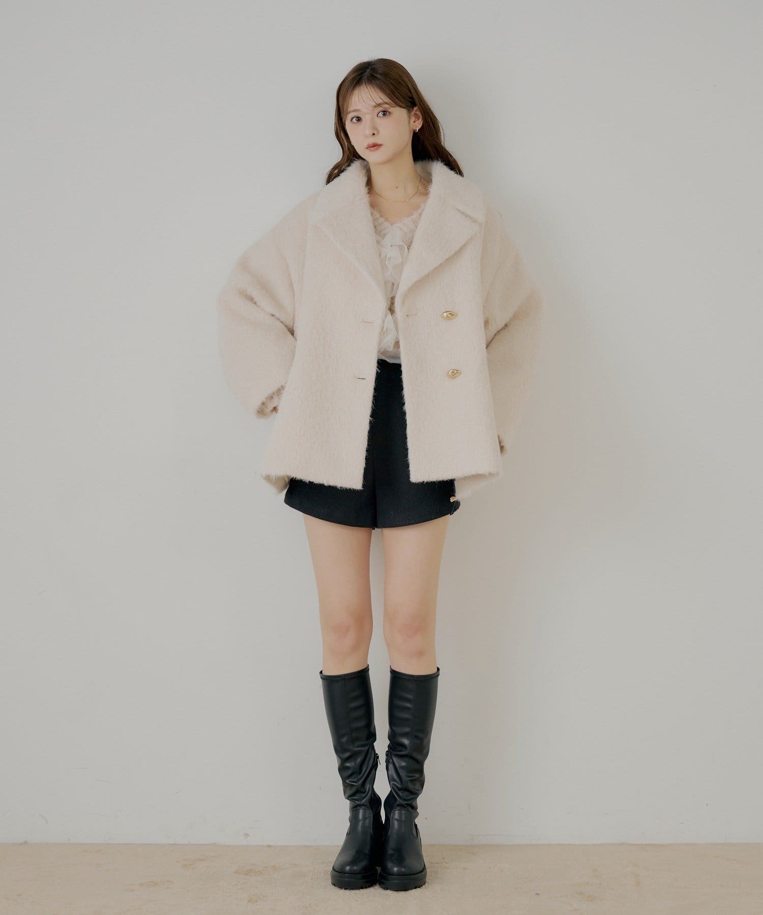 ・ふわふわのシャギー素材が、見た目にもあたたかいミディ丈のジャケットコート。