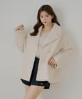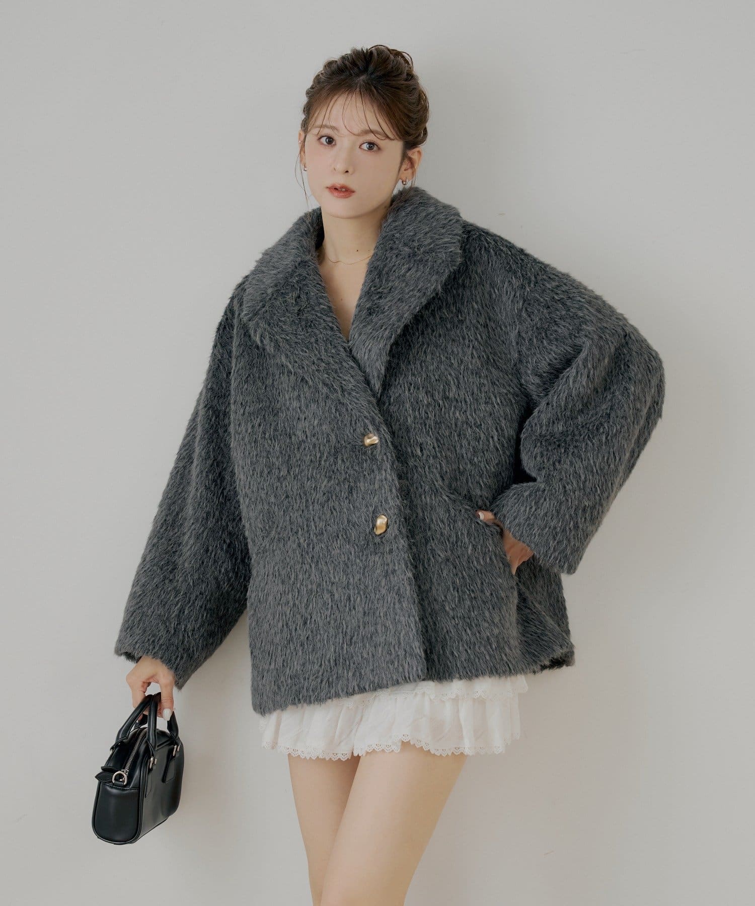 ふわふわのシャギー素材と金ボタンが目を惹くミディ丈のジャケットコート登場♡
