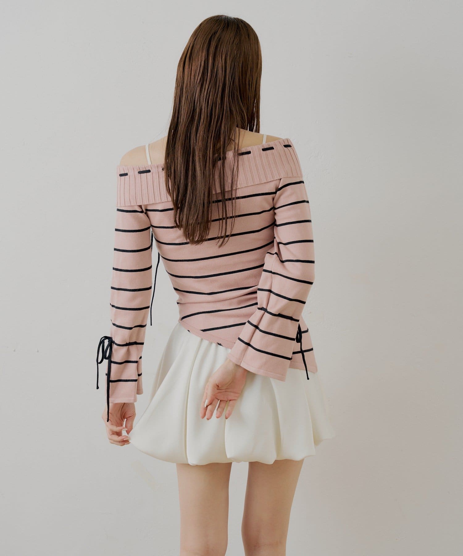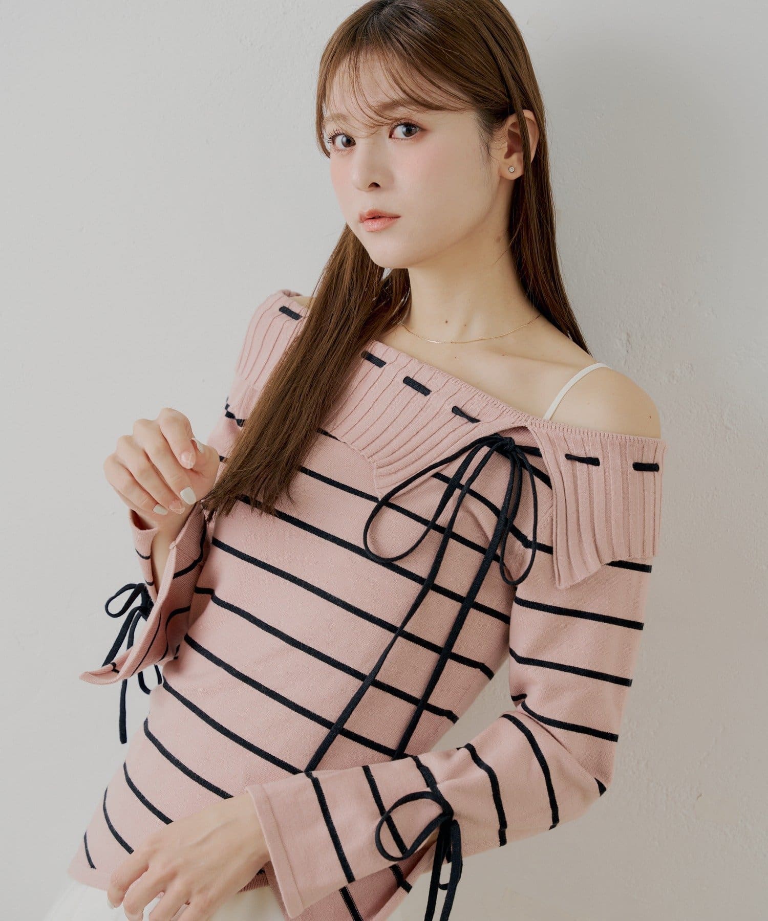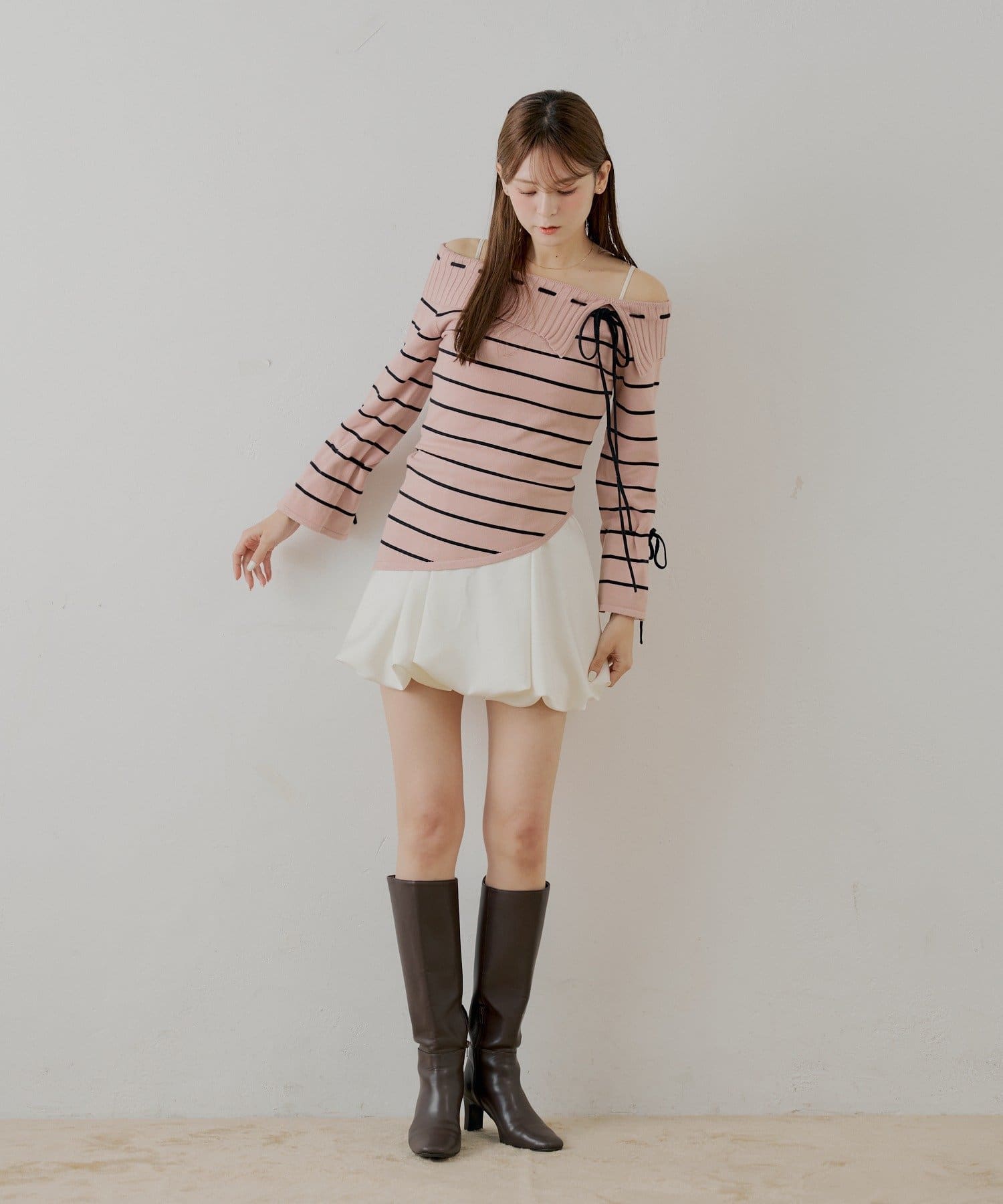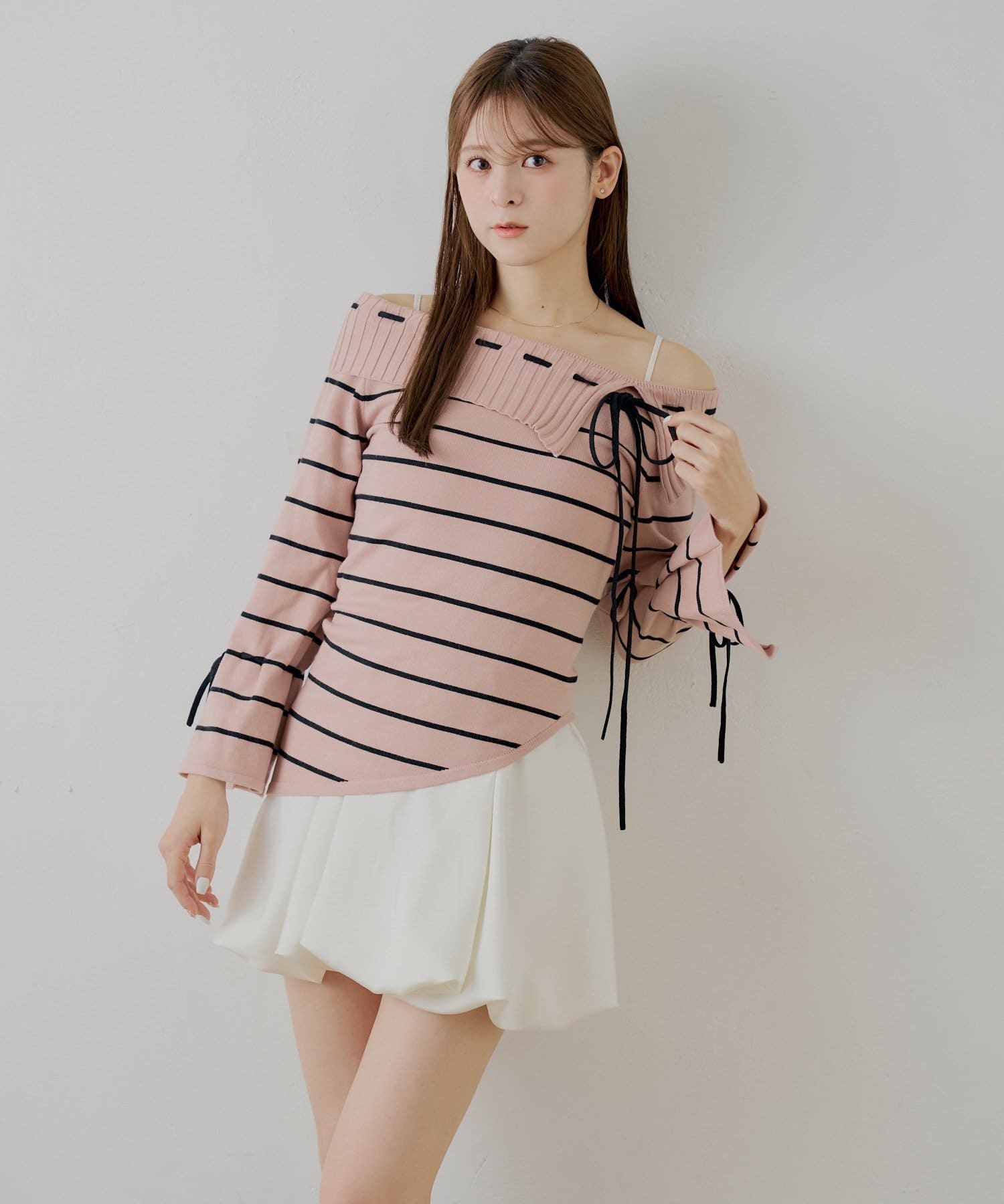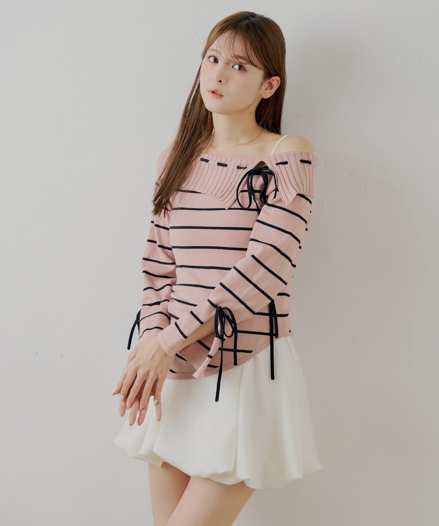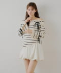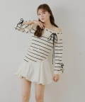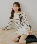 ・ボーダー柄がカジュアルさを添え、甘すぎない大人の着こなしを叶えます。