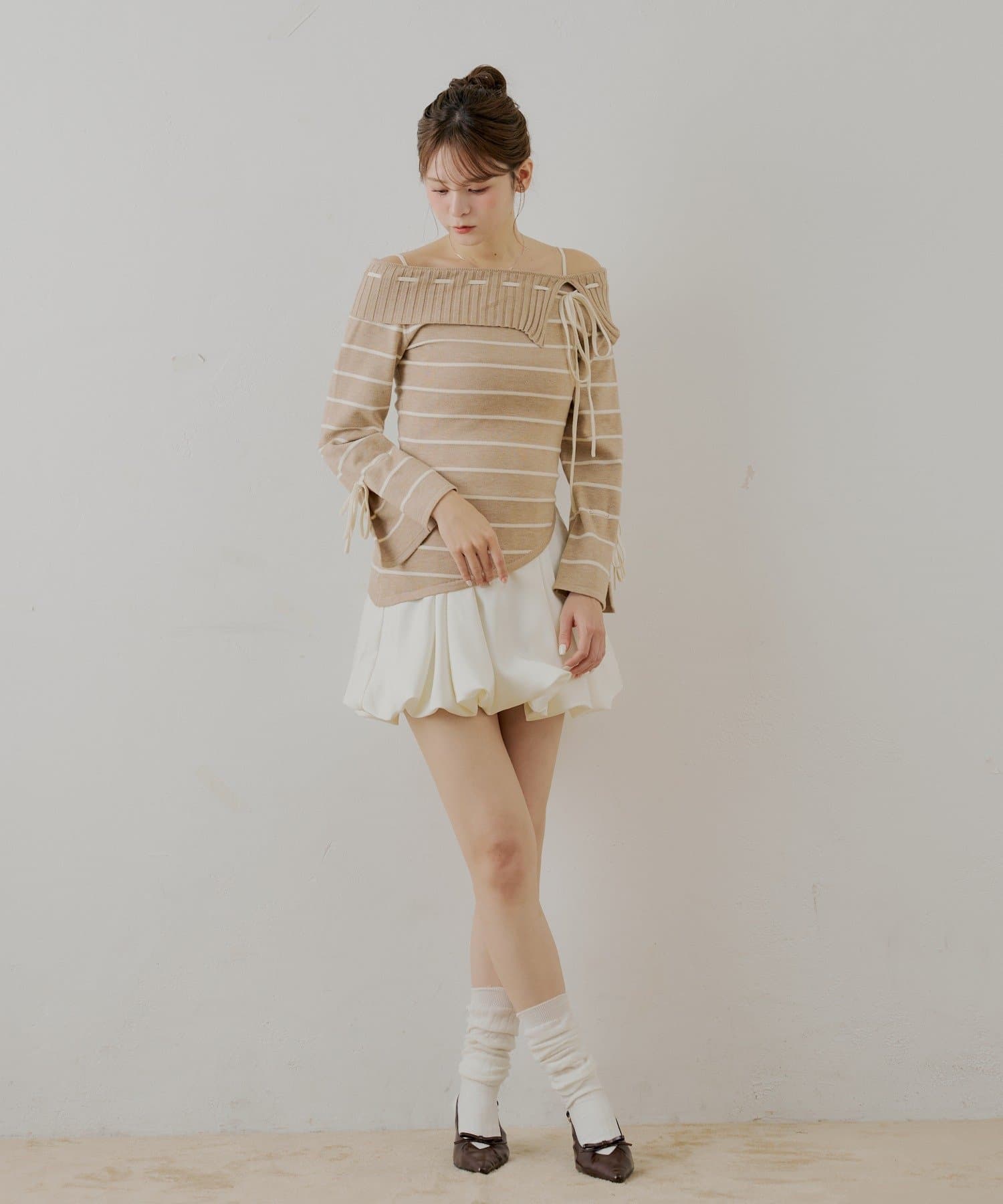 ワンショルニット+バルーンワンピースセット