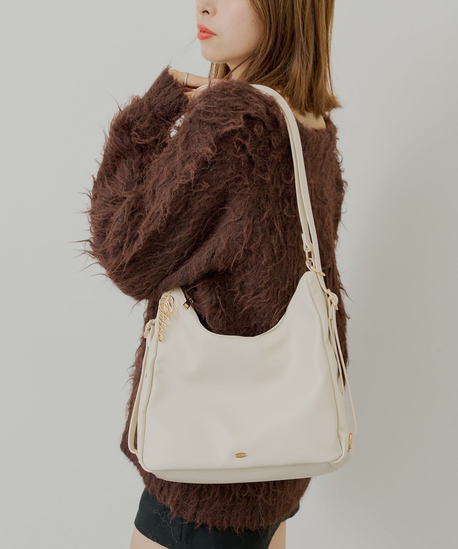 ロゴチャーム付き3wayホーボーバッグ