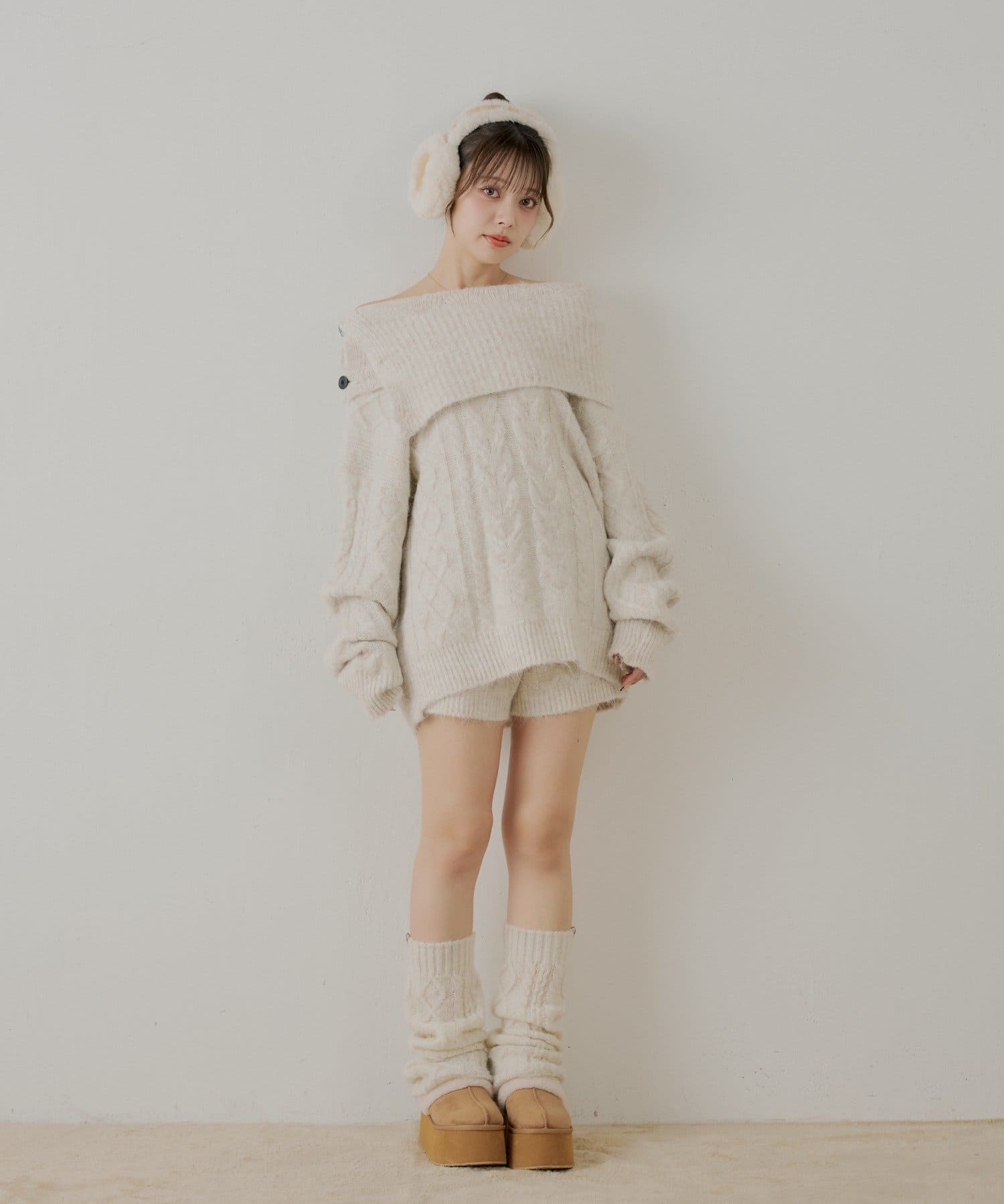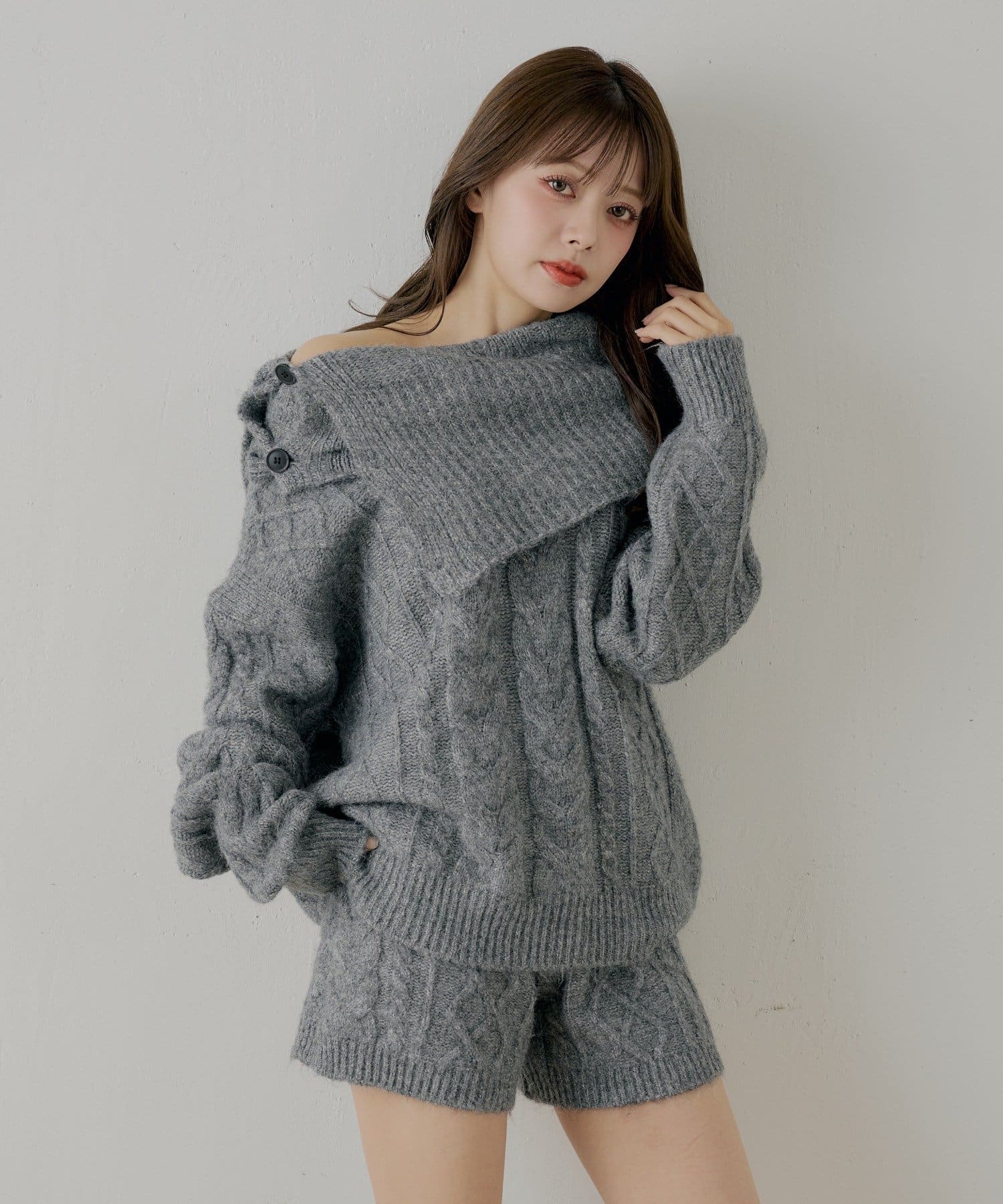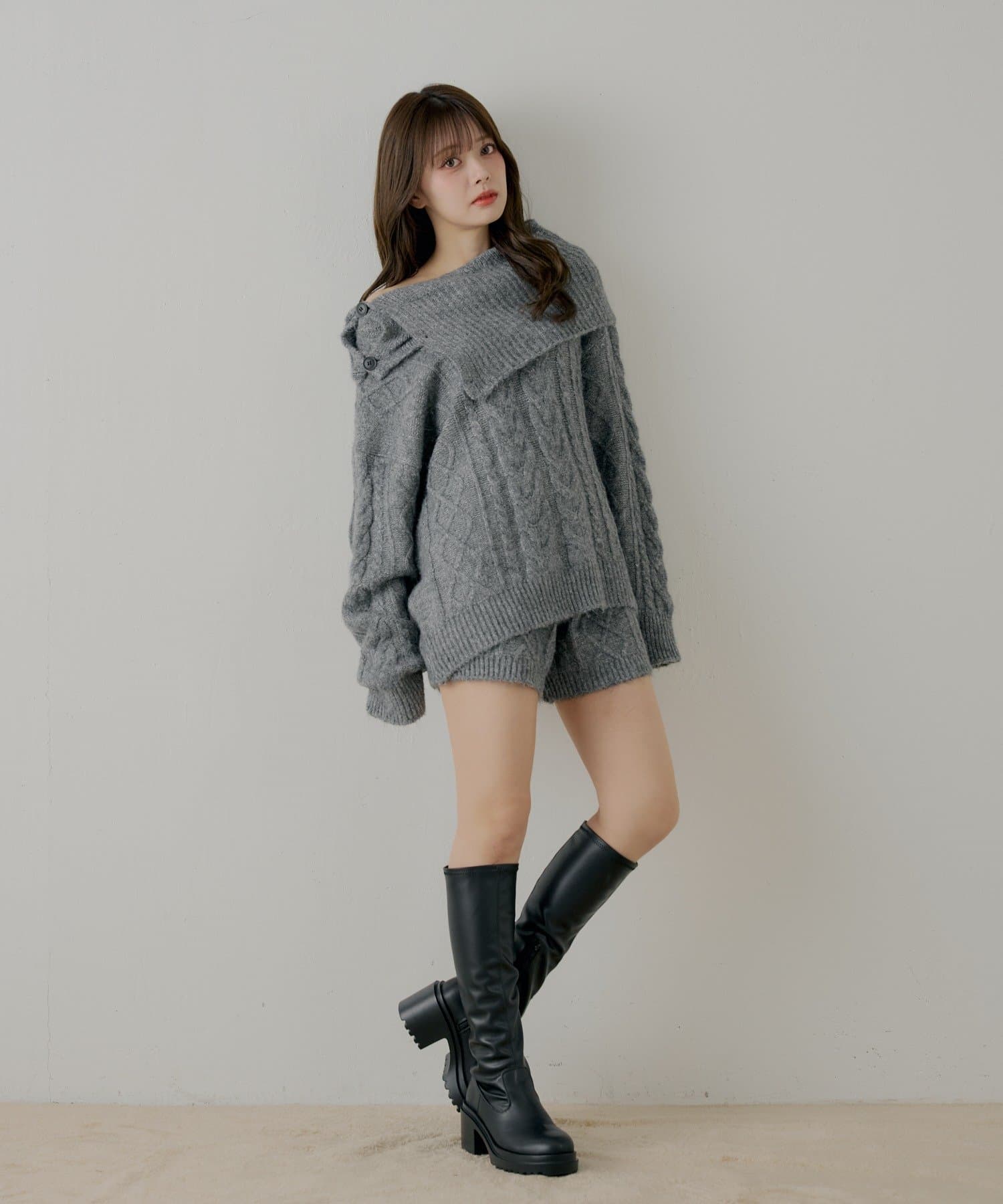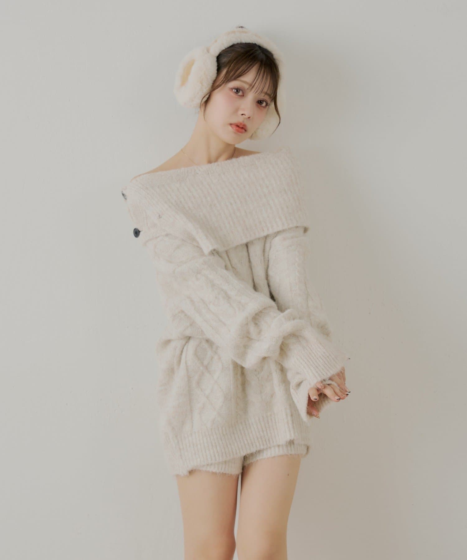 ・同素材のケーブルショートパンツと合わせてセットアップで着るのがおすすめです。