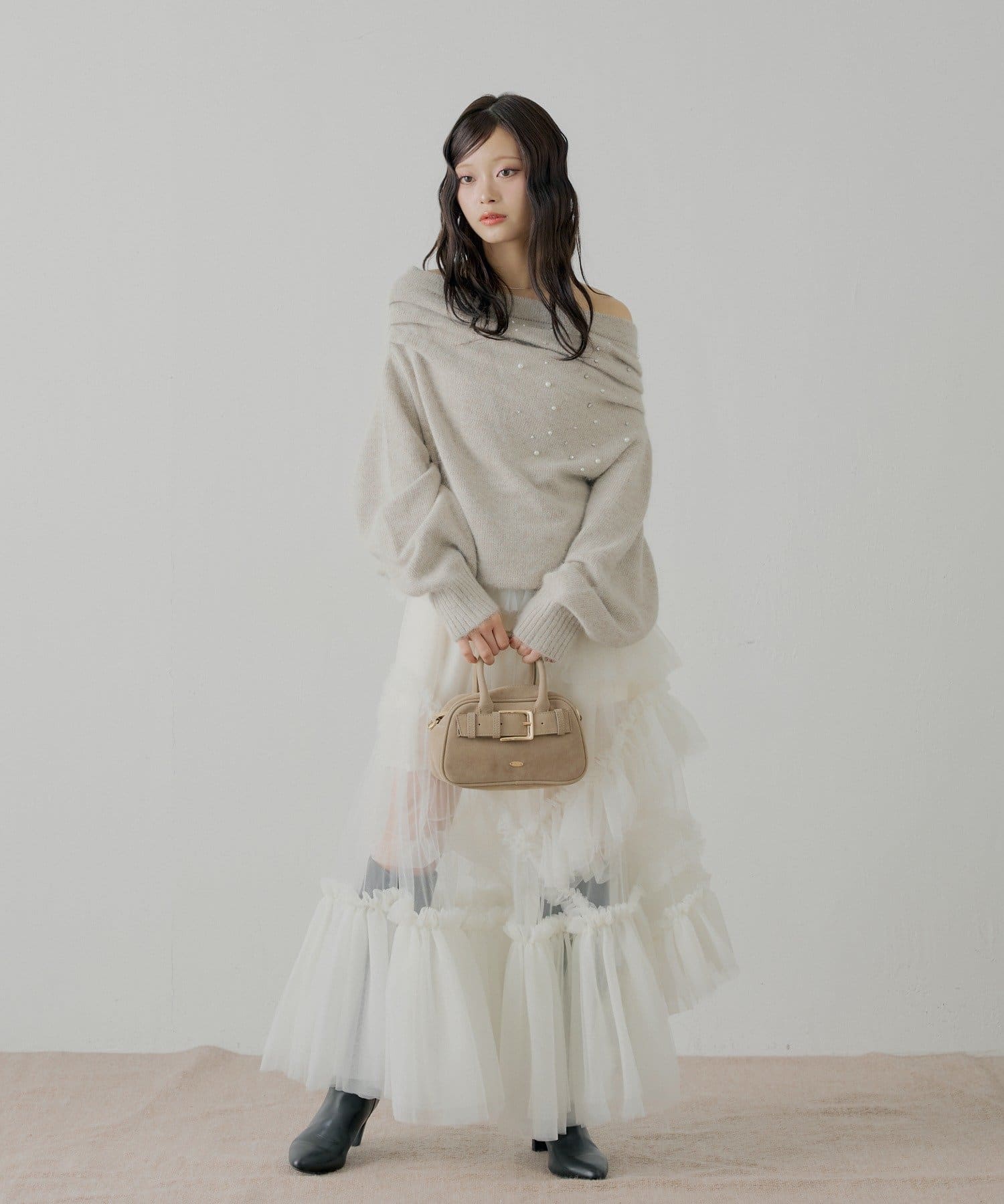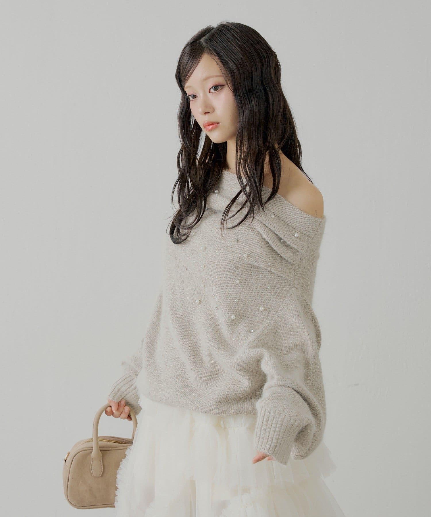 TOP > Chico > レディース > トップス > ニット/セーター > ビジュー付きアンゴラオフショルニット