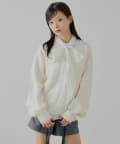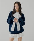 上品さと可愛らしさを兼ね備えた、ボウタイブラウスドッキングニット登場!