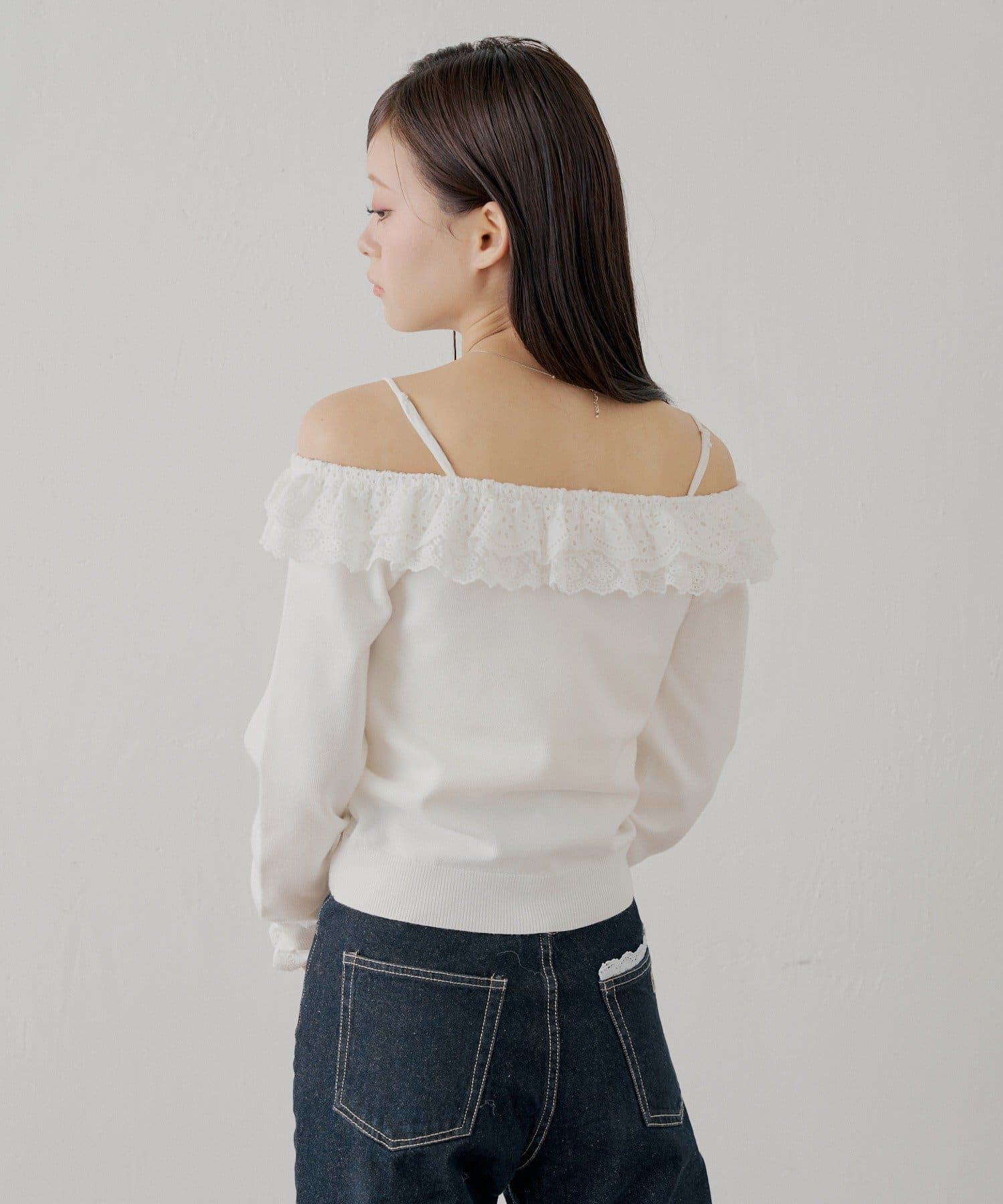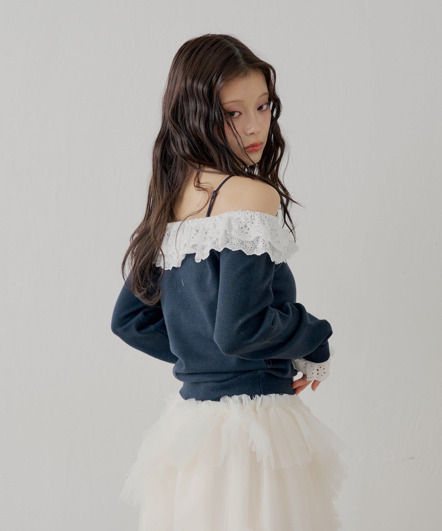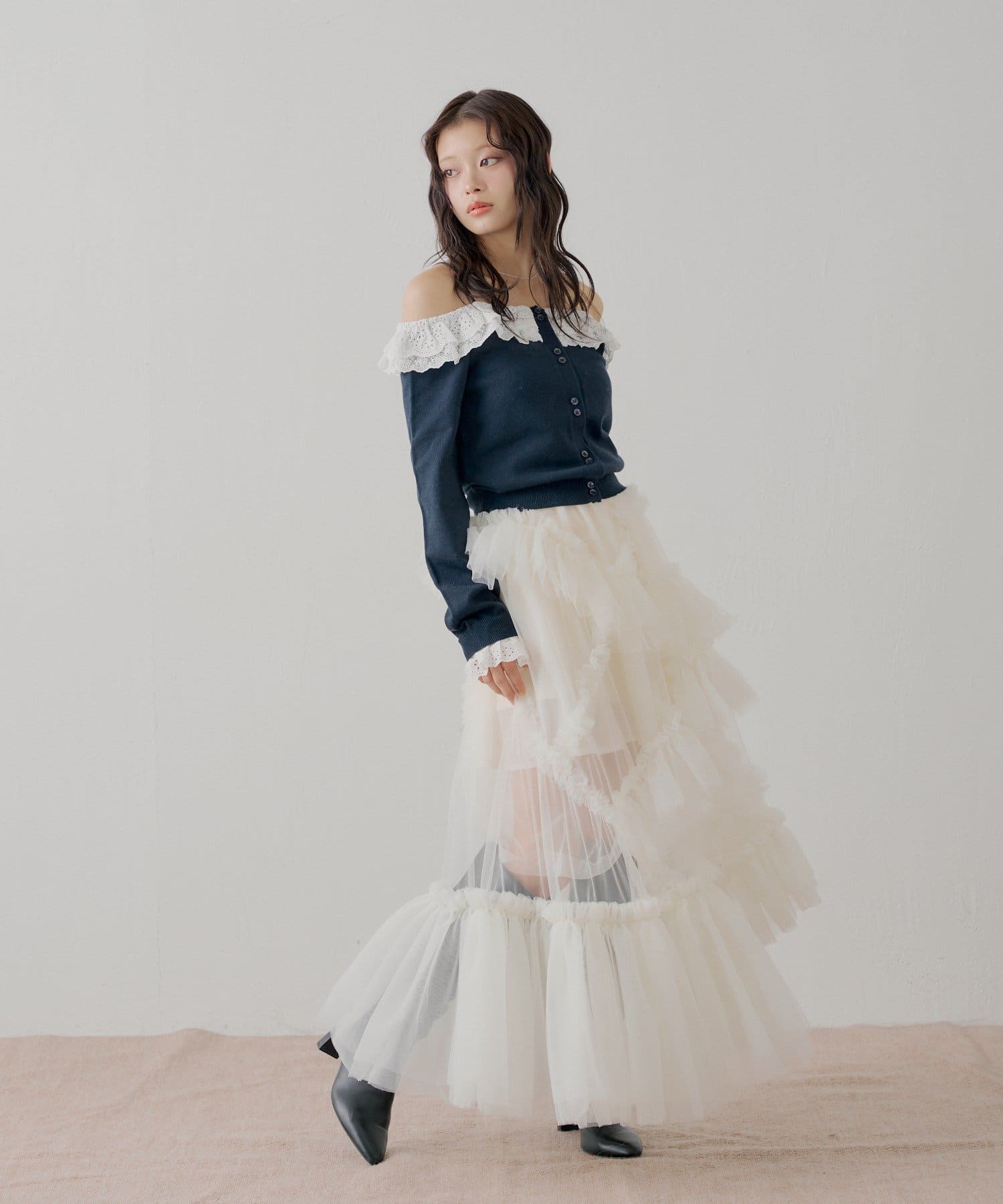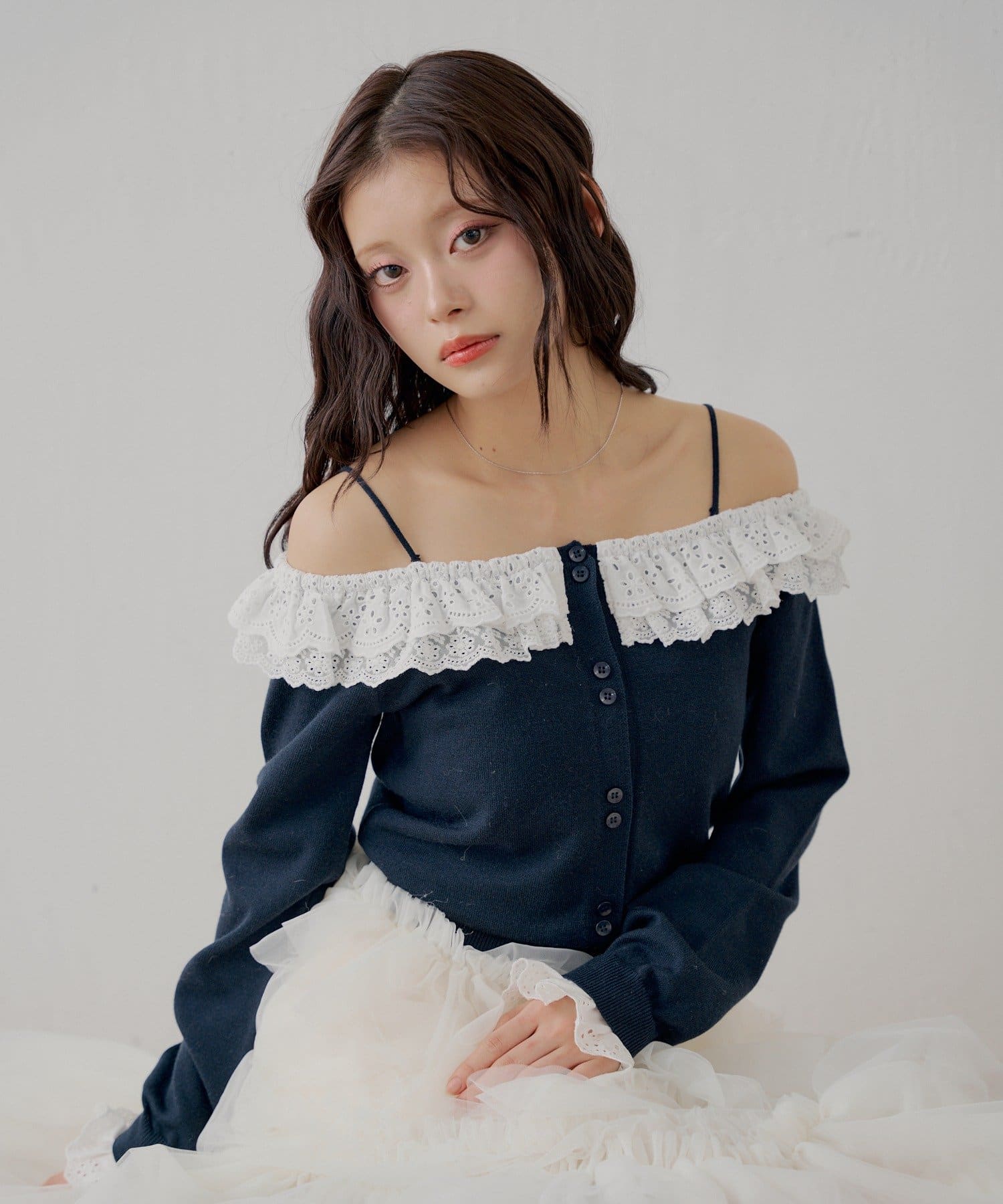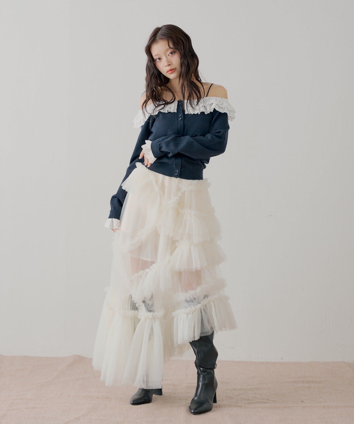 【12/19(金)18時販売】レースティアードオフショルカーディガン
