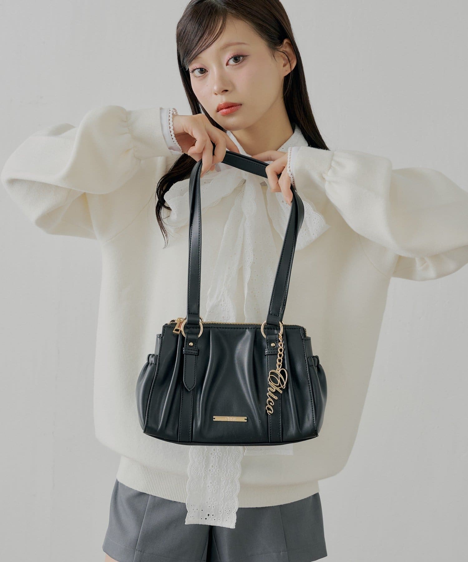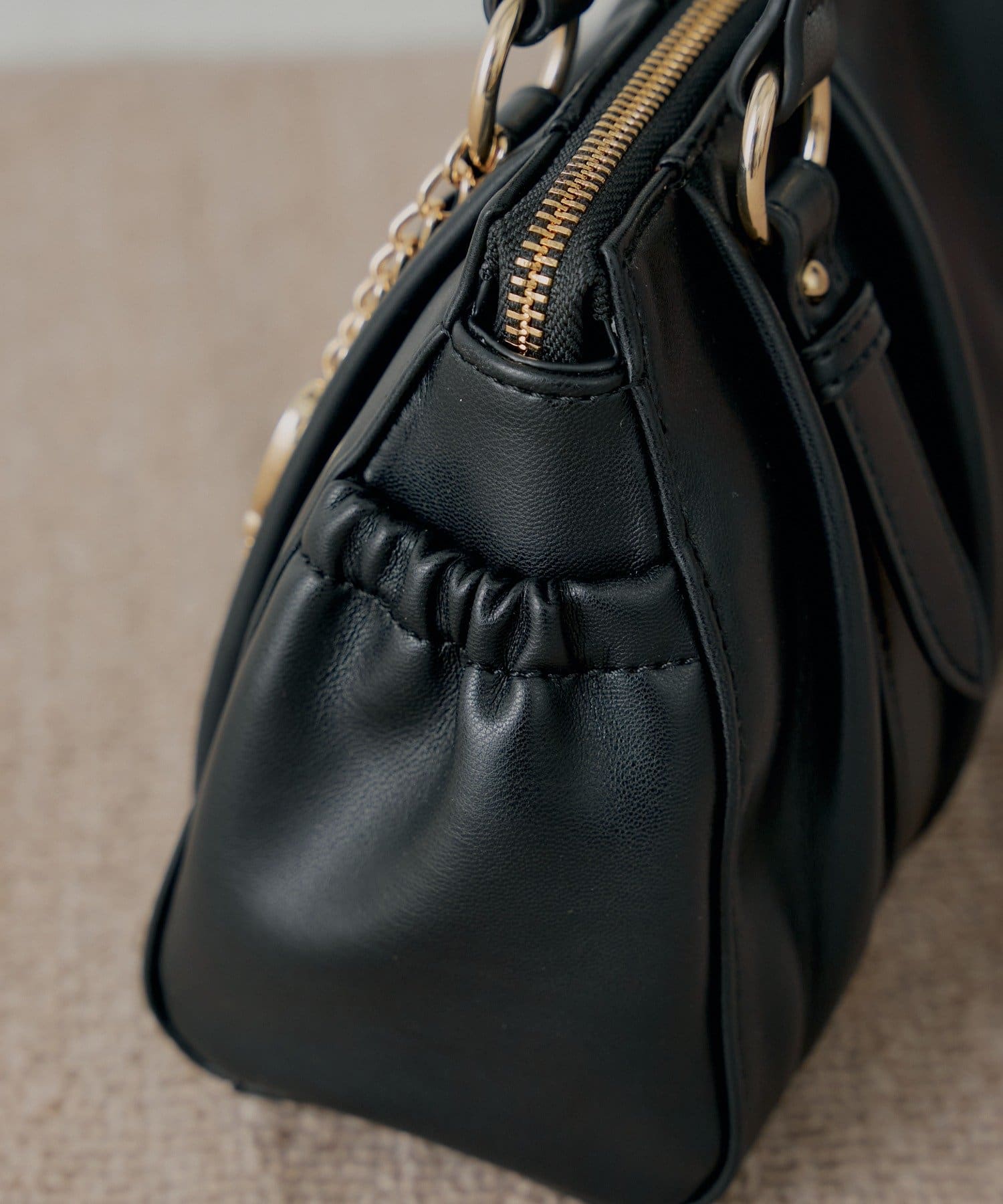 【12/19(金)18時販売】チャーム付きタックデザインボストンバッグ