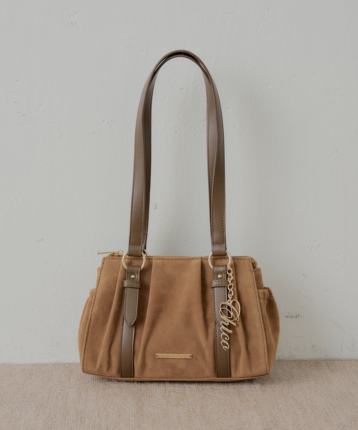 Chico(チコ) 【12/19(金)18時販売】チャーム付きタックデザインボストンバッグ