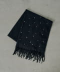 ・シンプルな装いにプラスするだけで、一気に華やかさを添えるビジュー付きストール。