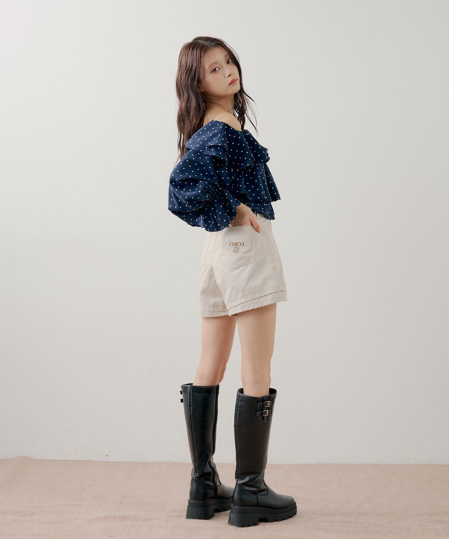 ・ブラウスと合わせるとフェミニンなスタイルに仕上がります。