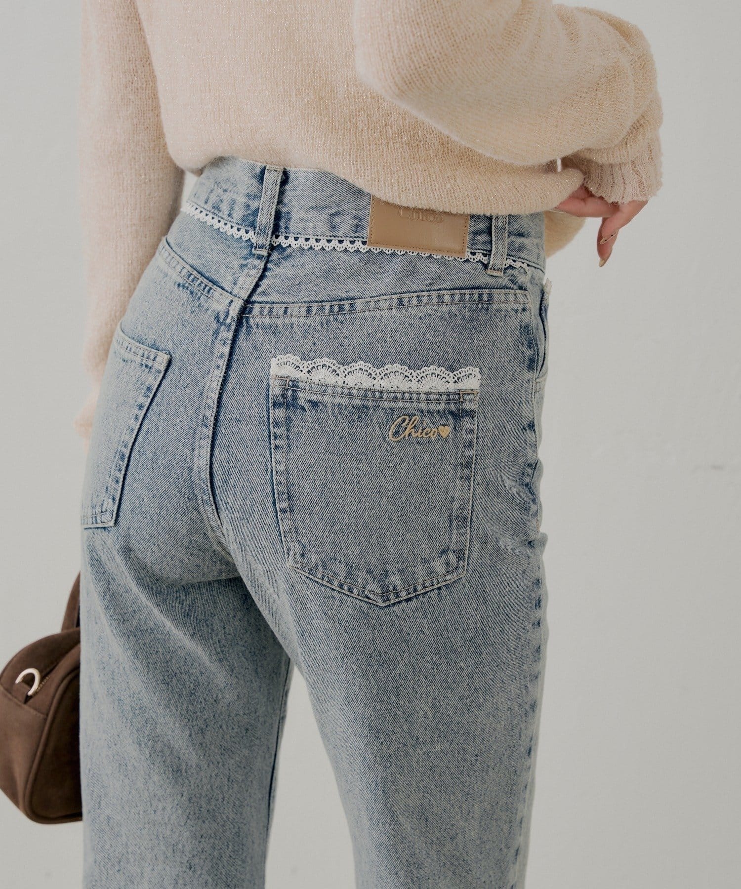 • Chico(チコ) レースデザインフレアデニム