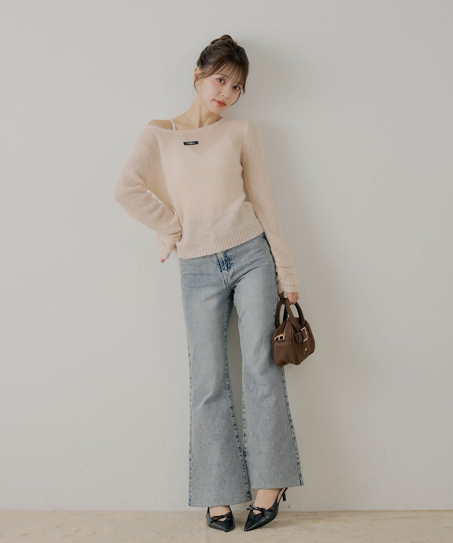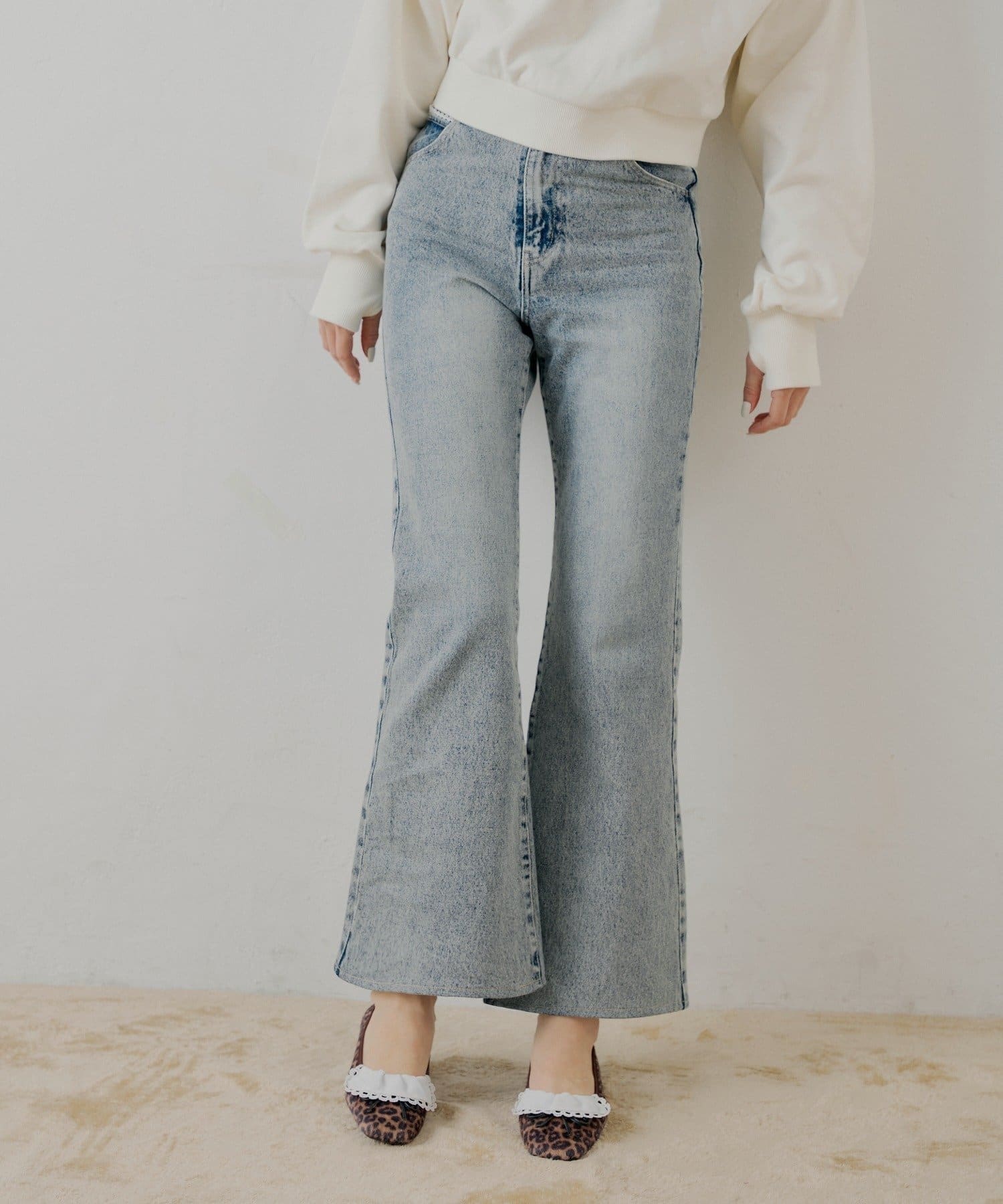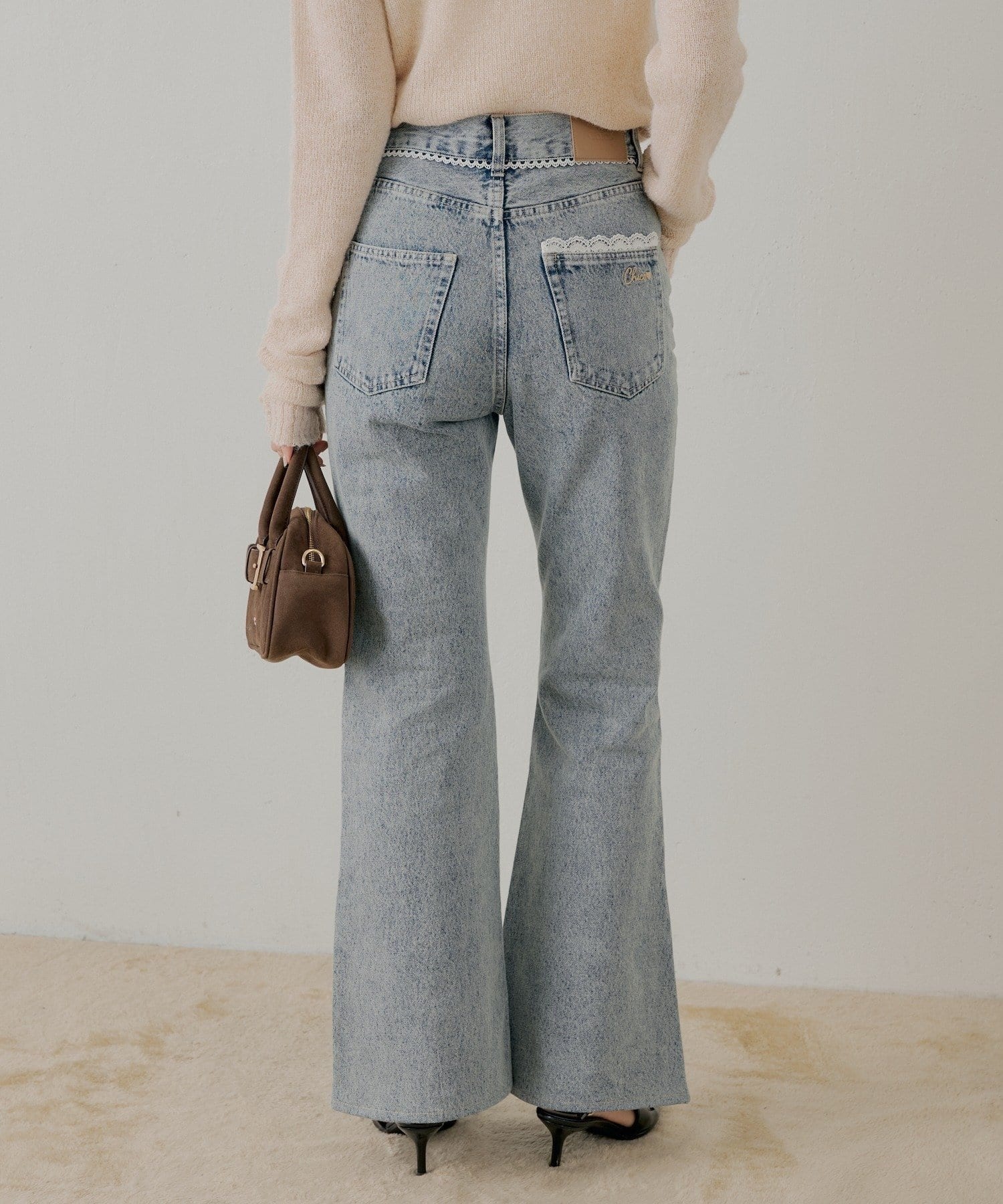 ・バックのレースとロゴ刺繍が可愛いフレアデニム。