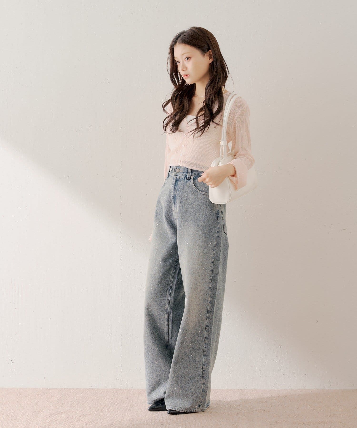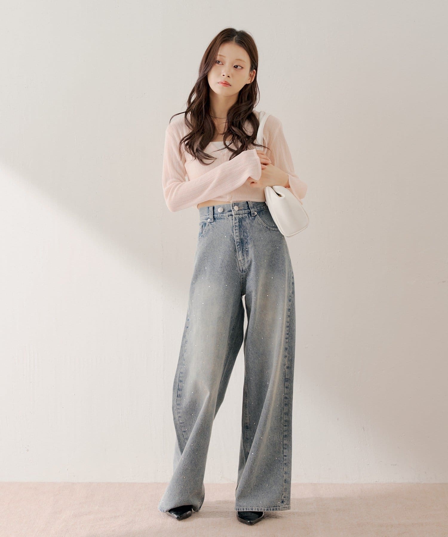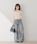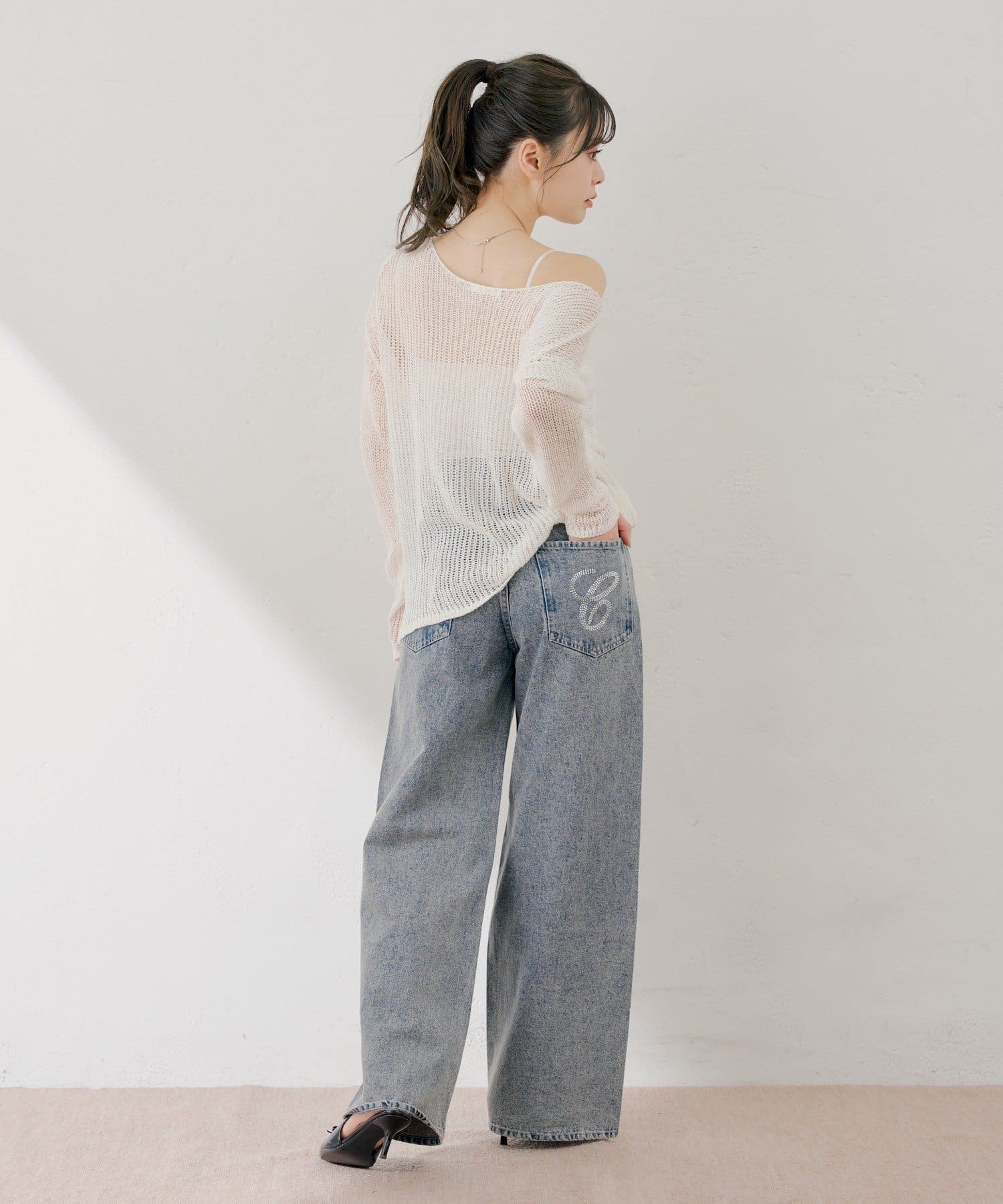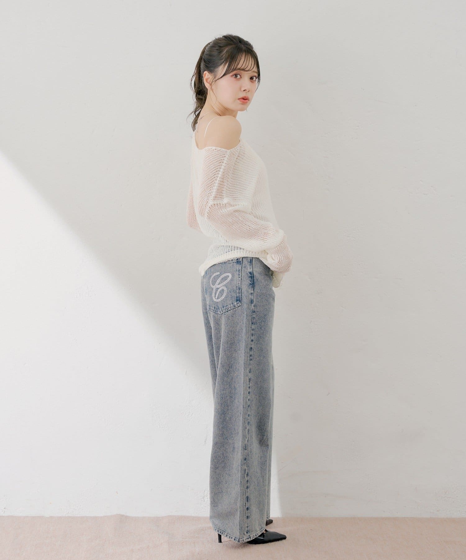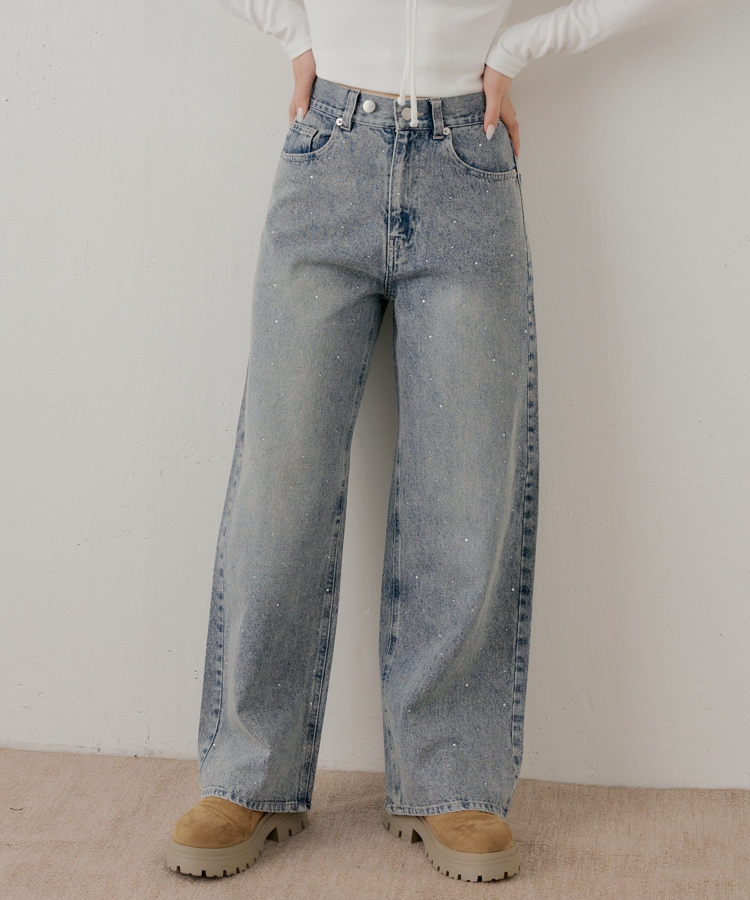ラインストーンが目を惹くワイドデニムパンツ登場!