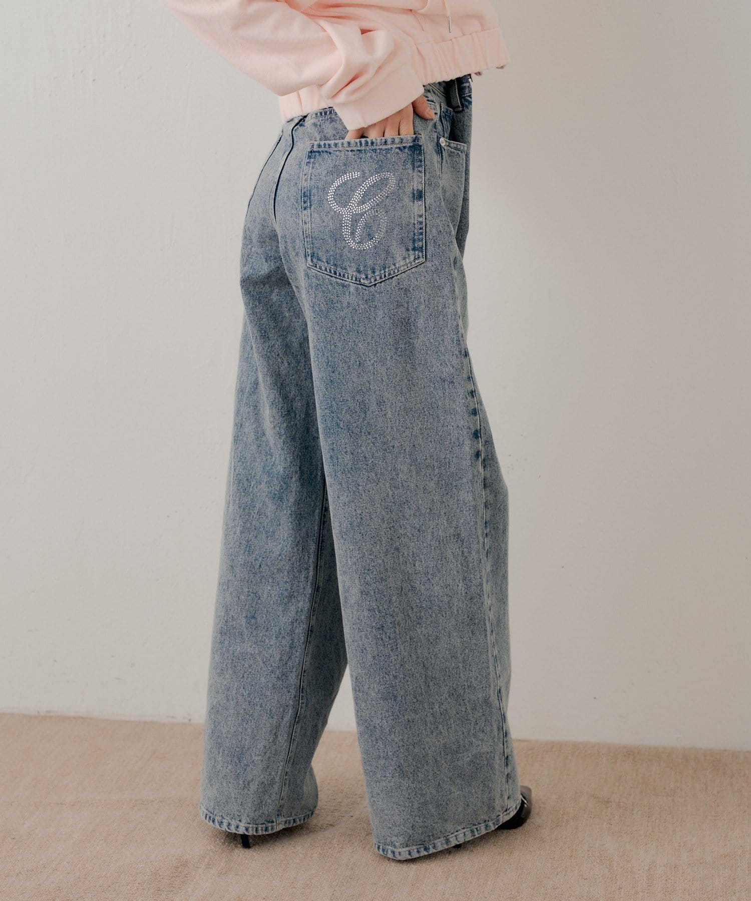 ラインストーンが目を惹くワイドデニムパンツ登場!
