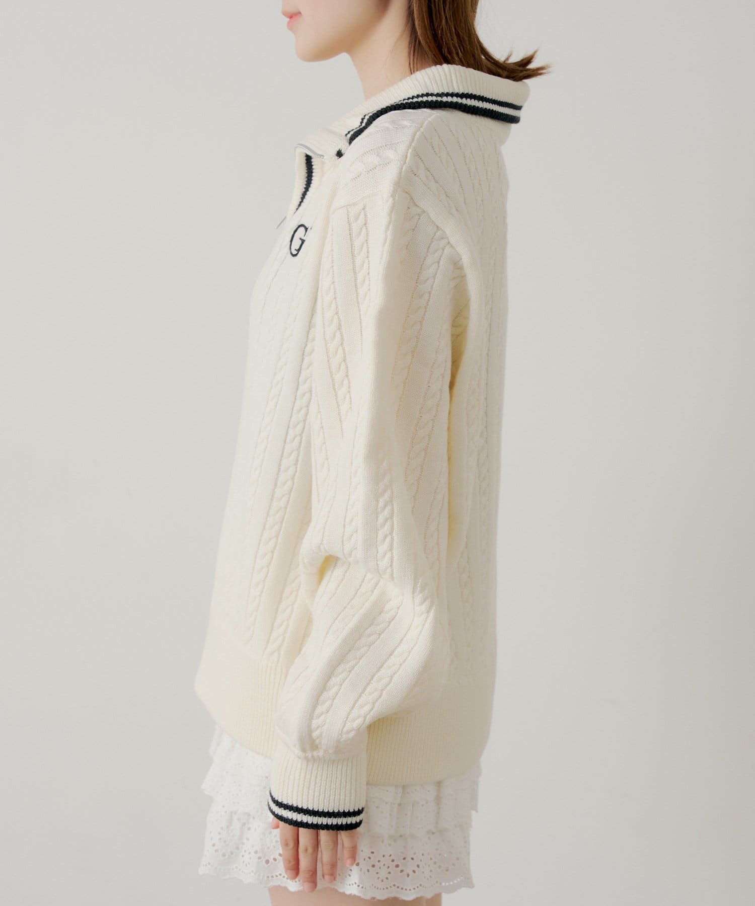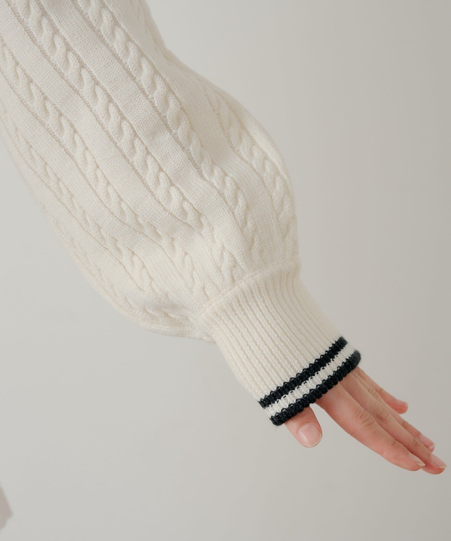 ・立体感のあるケーブル編みが、シンプルながらも表情豊かな印象を与えます。
