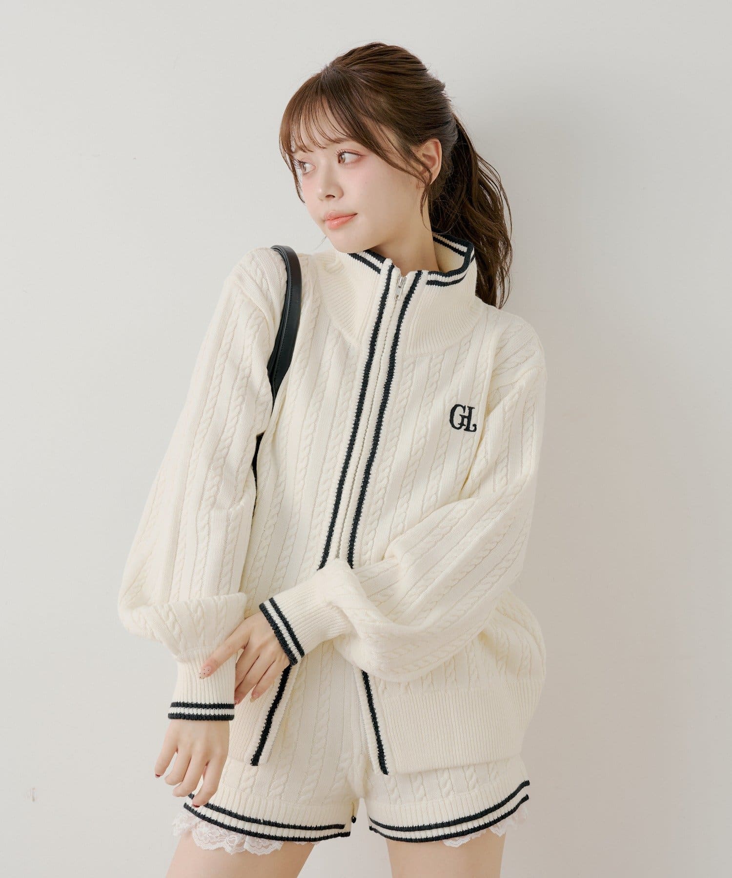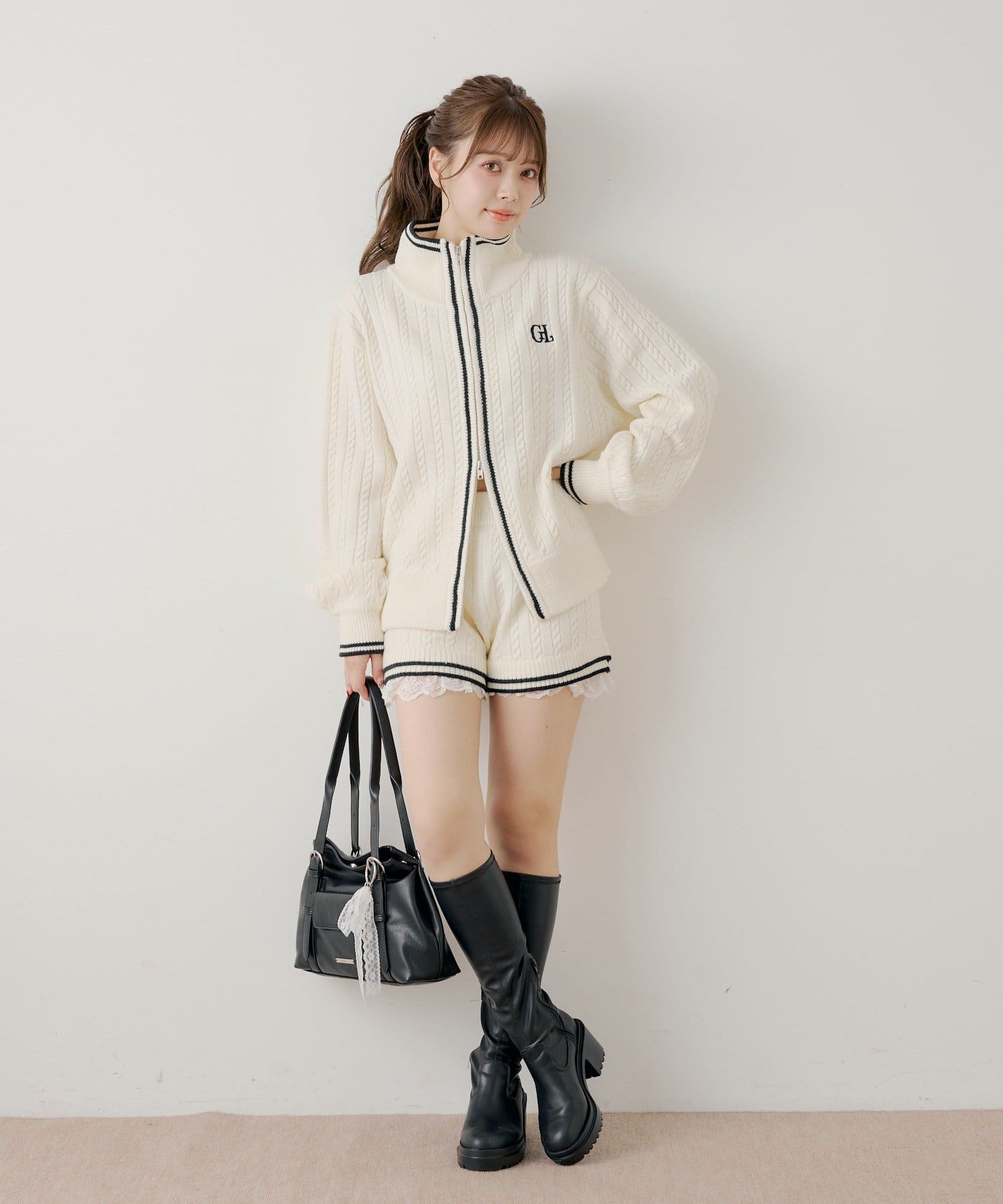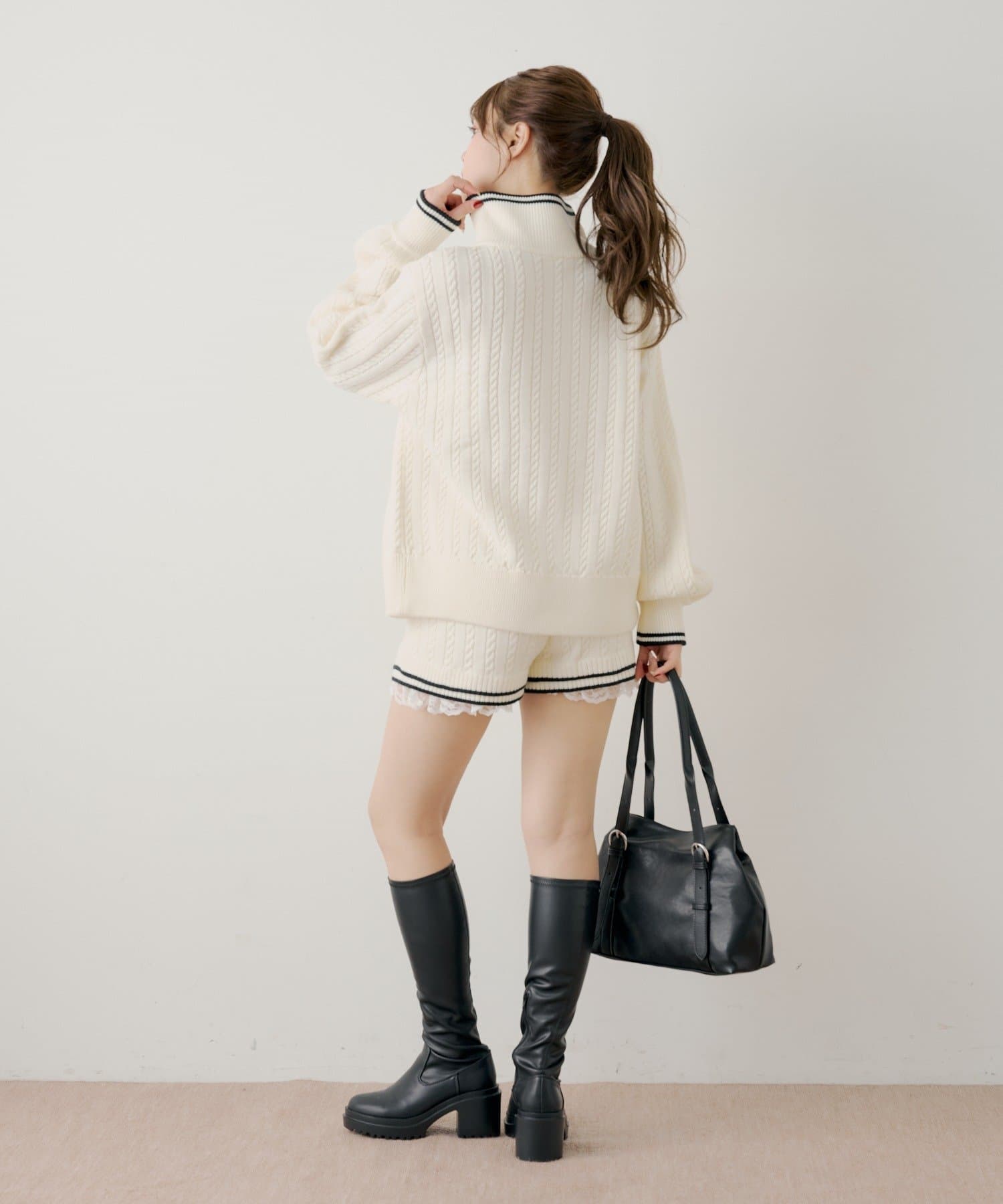 ・同素材のニットショートパンツと合わせてセットアップで着るのが可愛くておすすめです。
