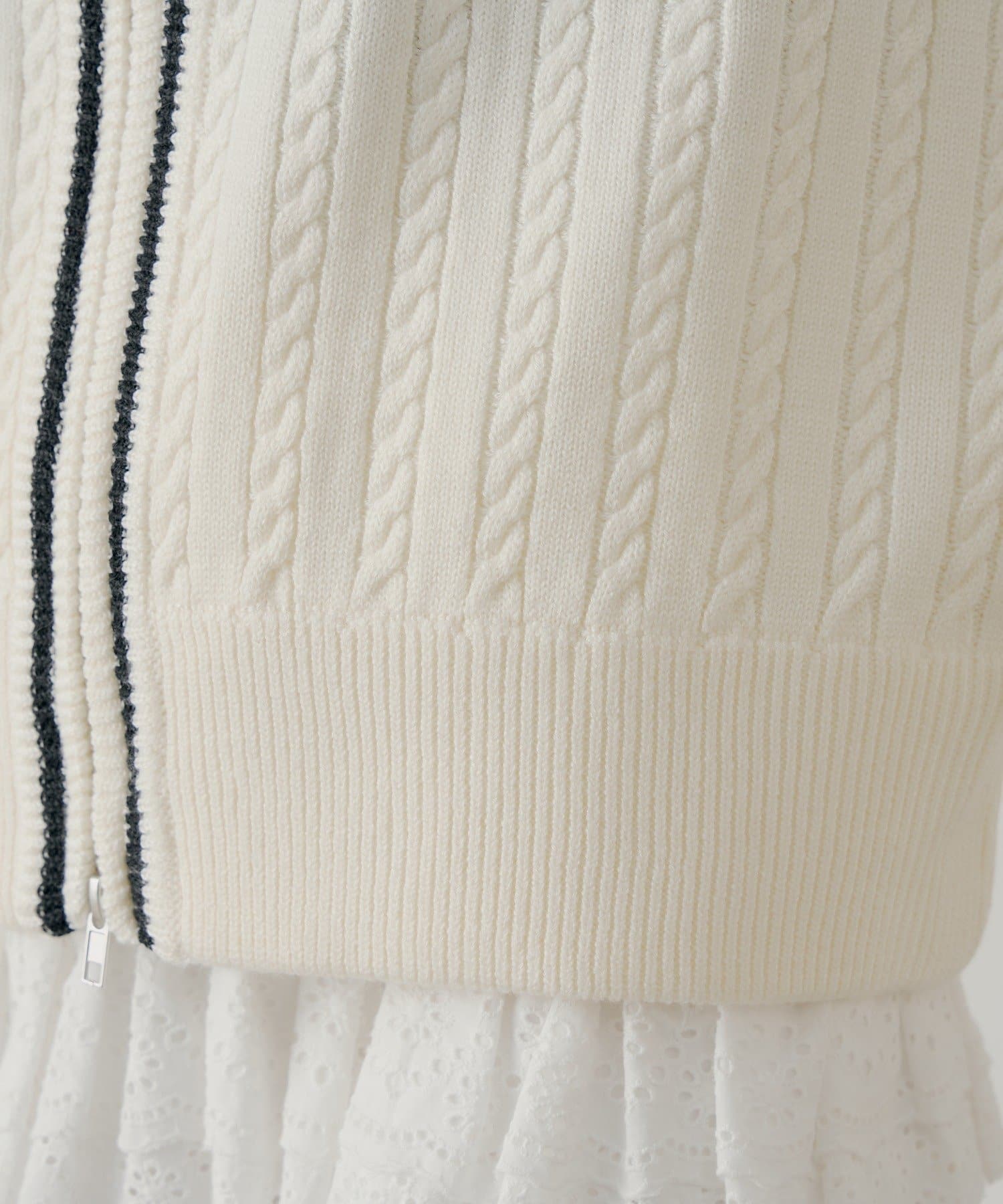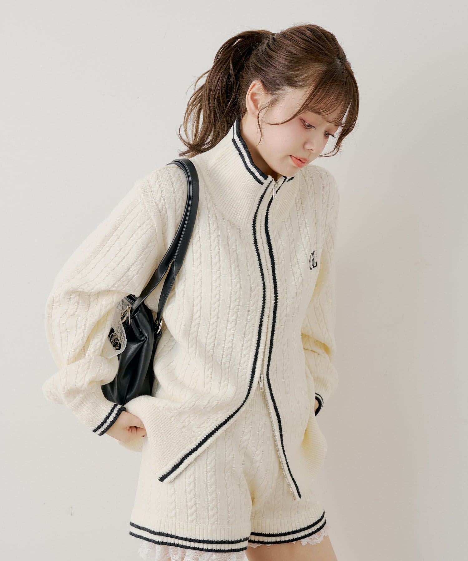 ざっくりとしたケーブル編みが、温かみのある表情を演出するダブルジップニット登場!
