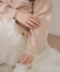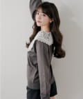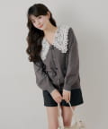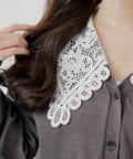 ・大きめの襟に施されたレースは、顔周りを華やかに彩り上品な印象を与えます。