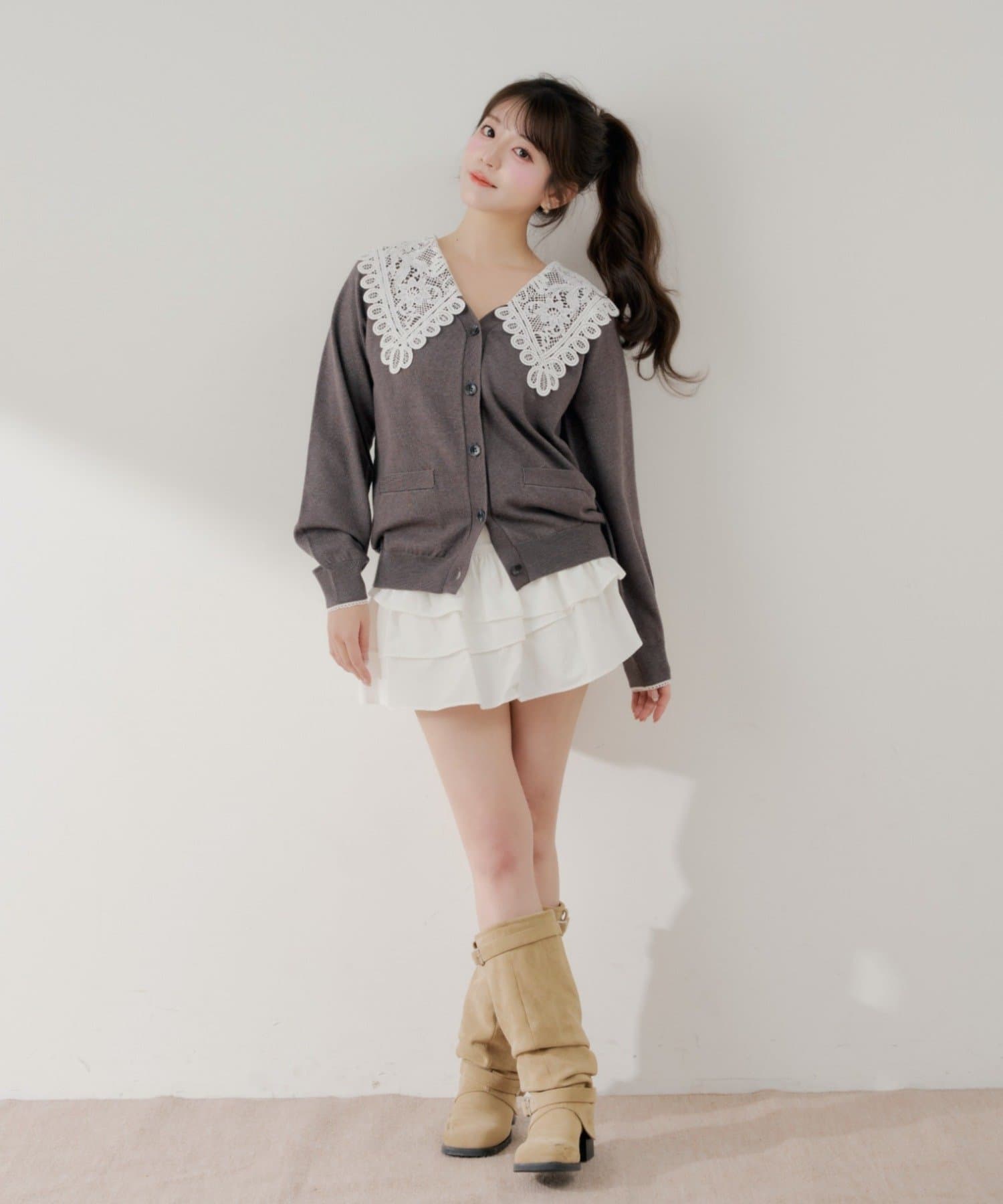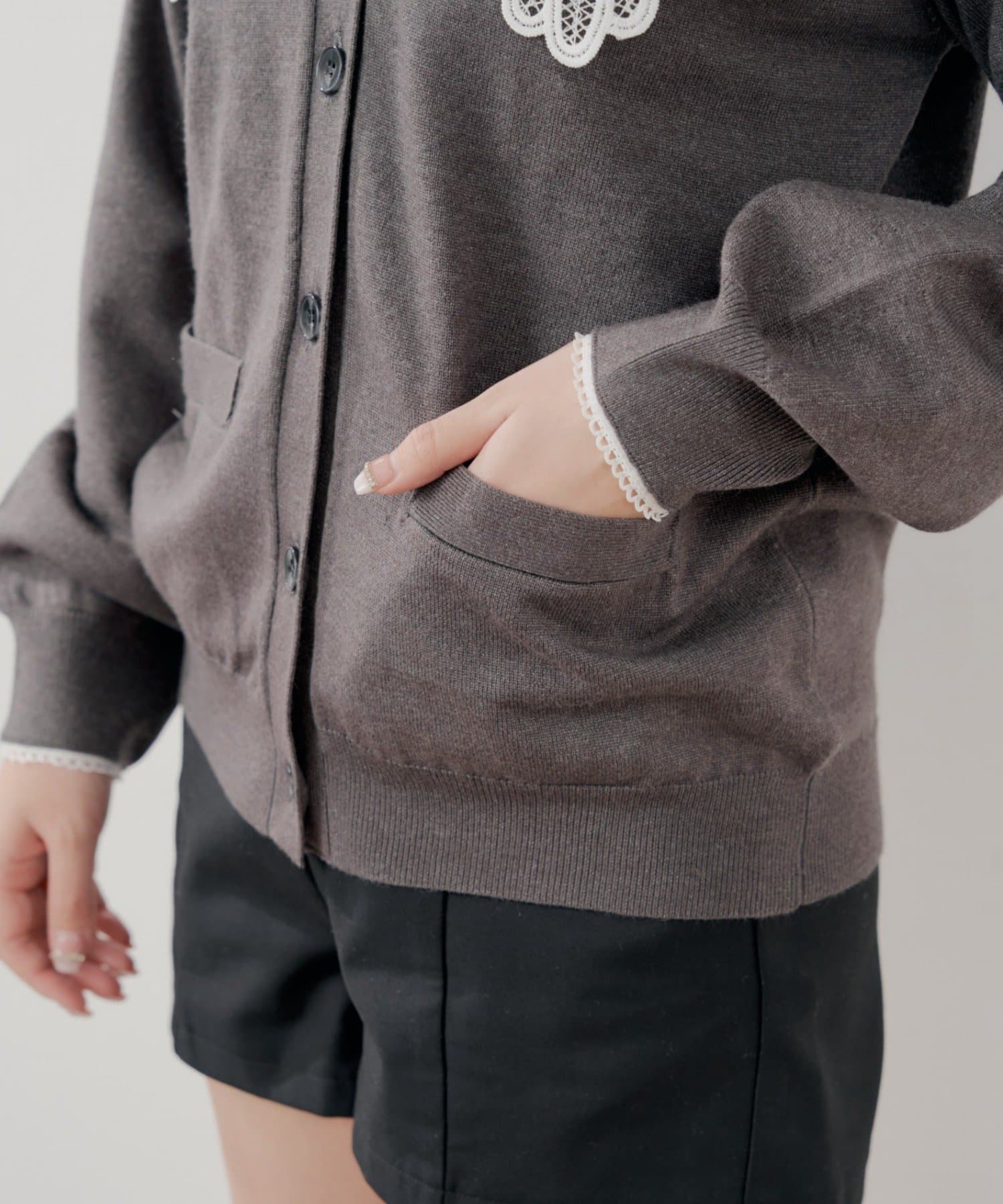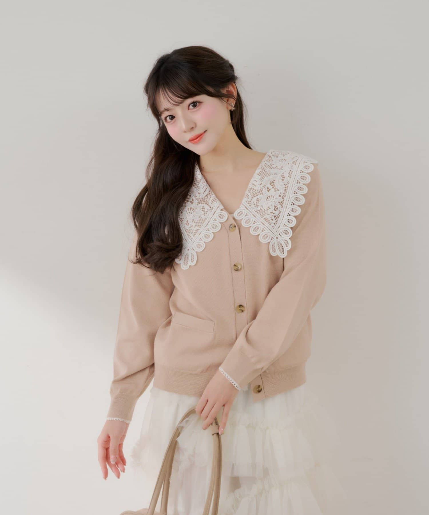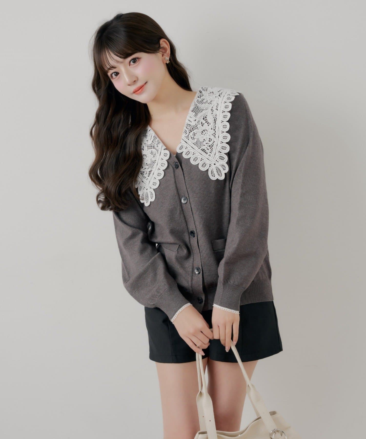 繊細レースで、大人可愛いを叶える襟レースルーズカーディガン