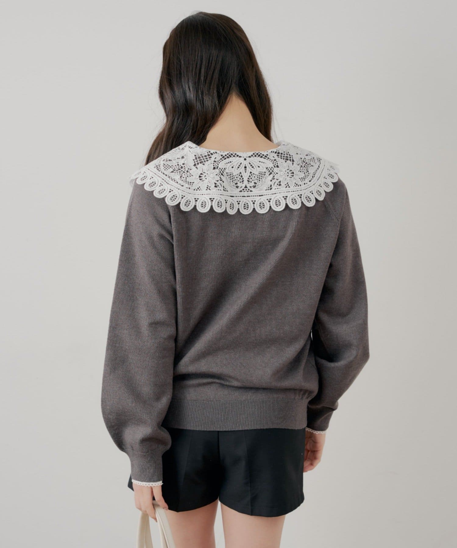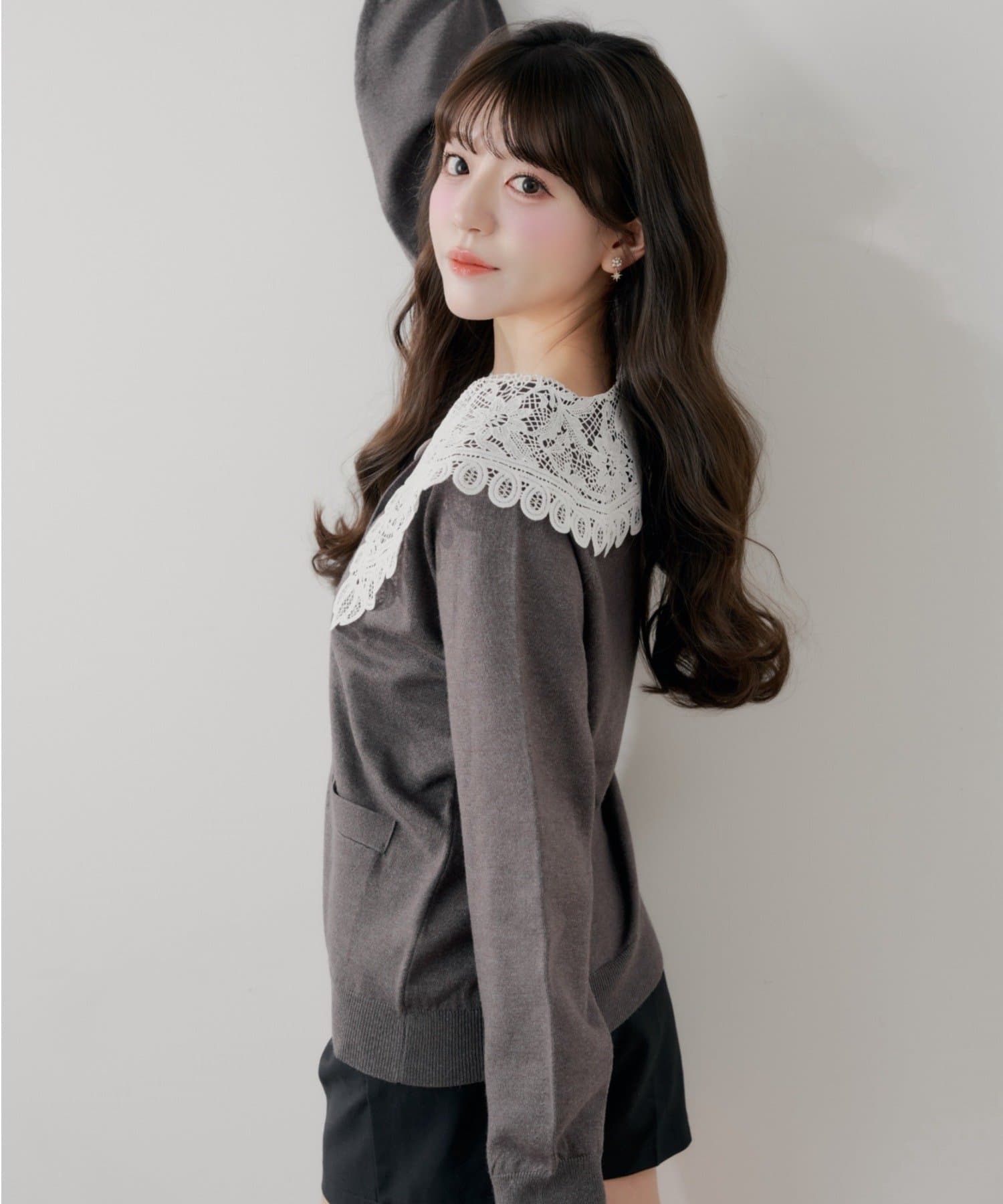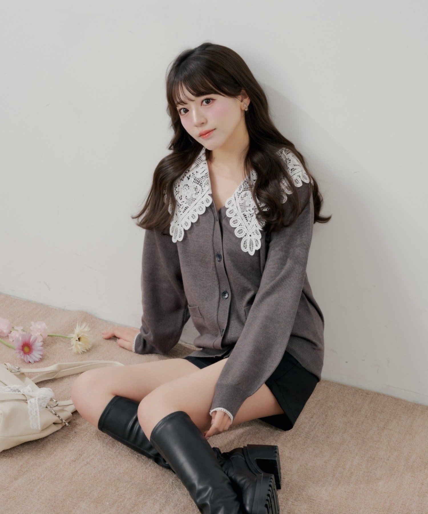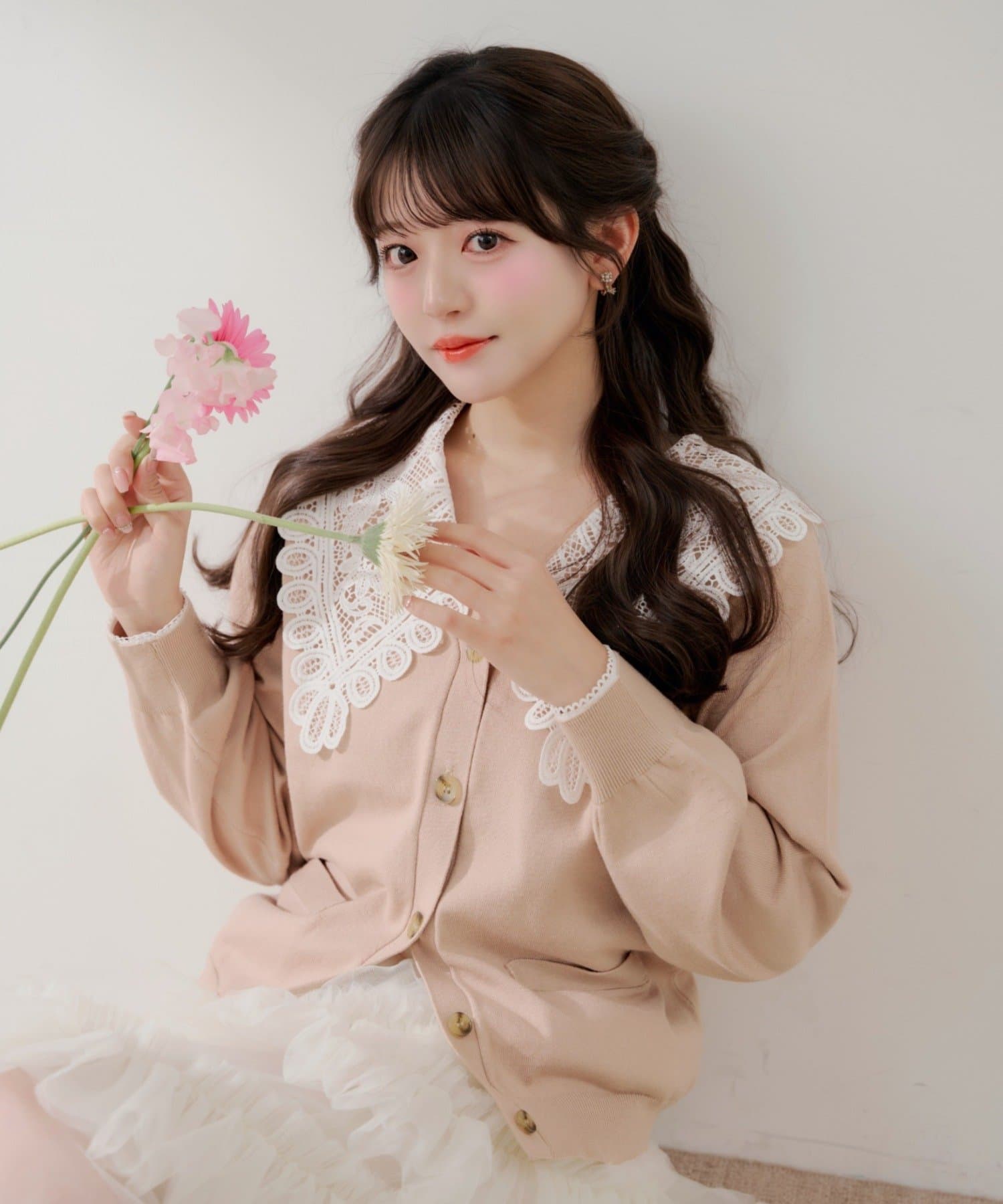 繊細レースで、大人可愛いを叶える襟レースルーズカーディガン