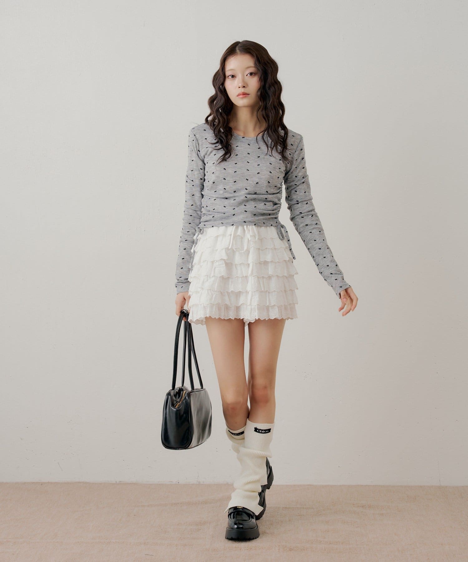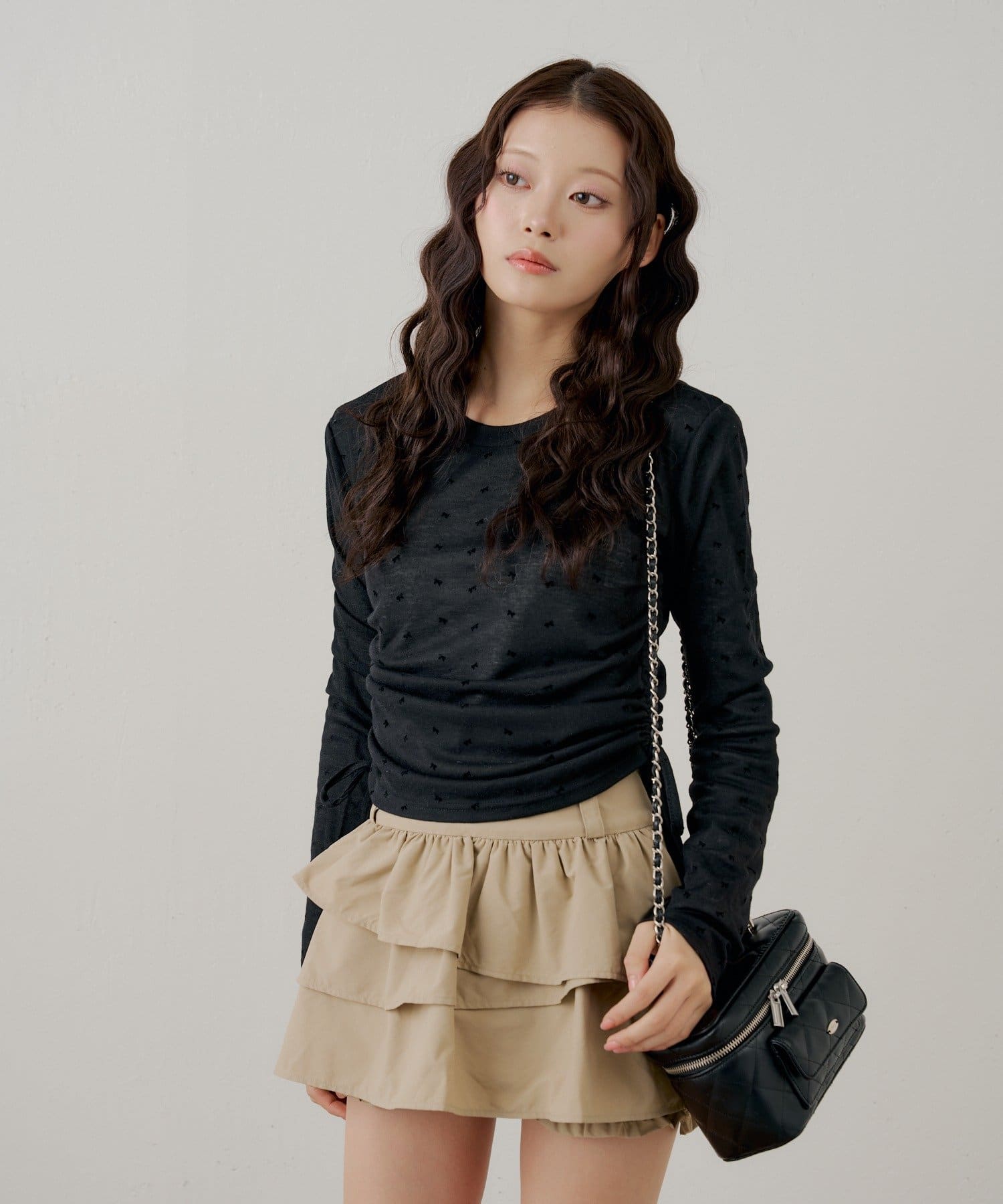 ・サイドにあしらわれたリボンがシルエットのアレンジを可能にし、着こなしの幅を広げます。