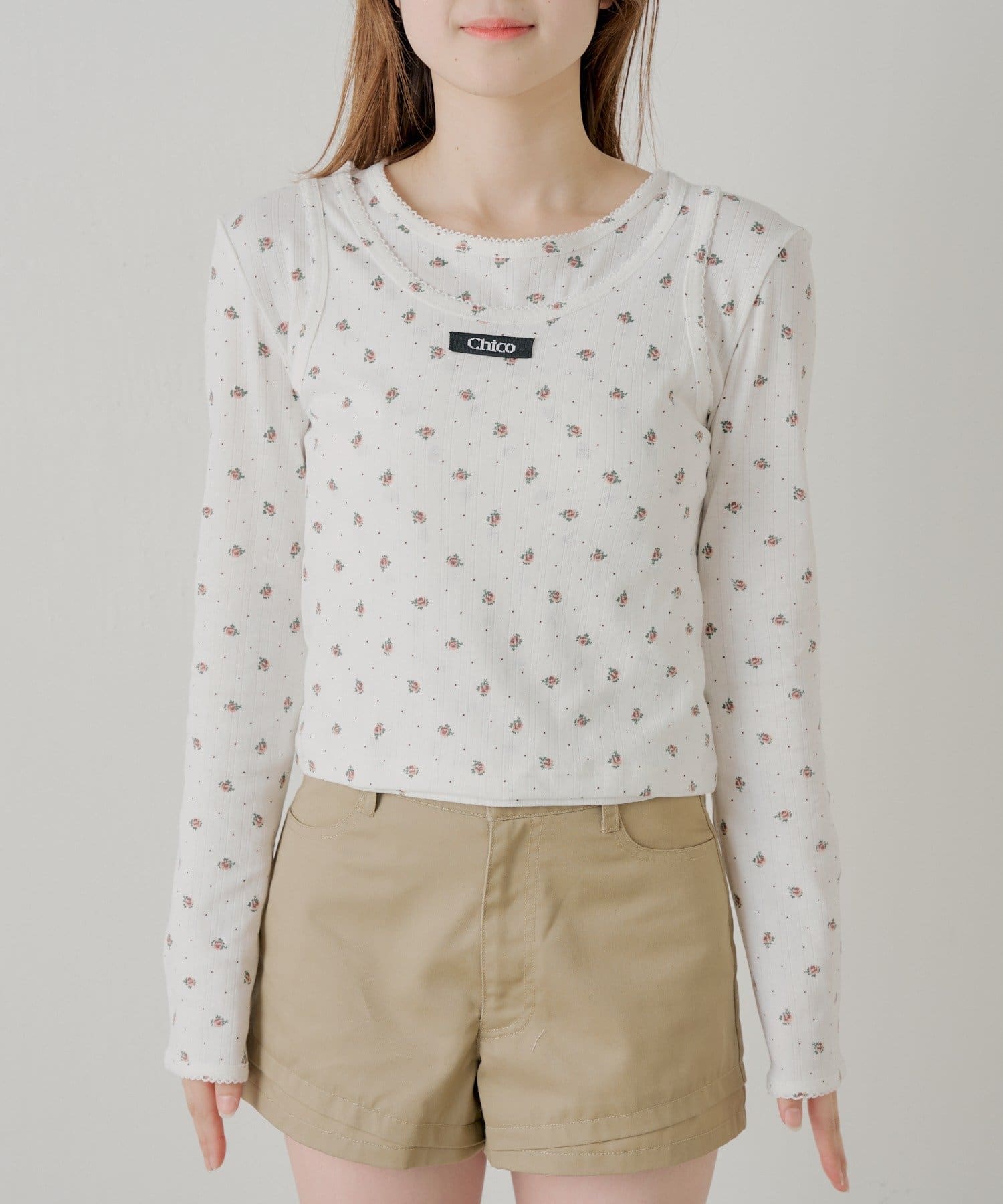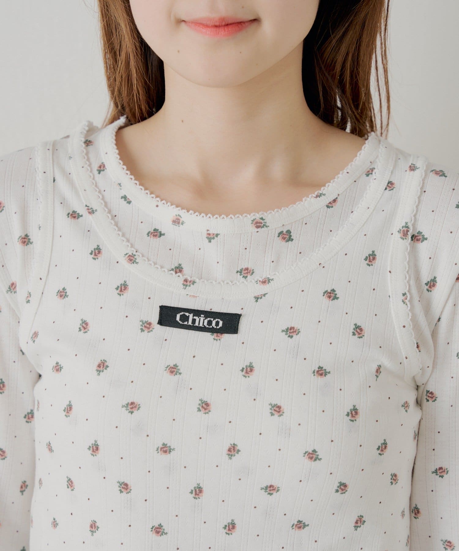 花柄レイヤードトップス