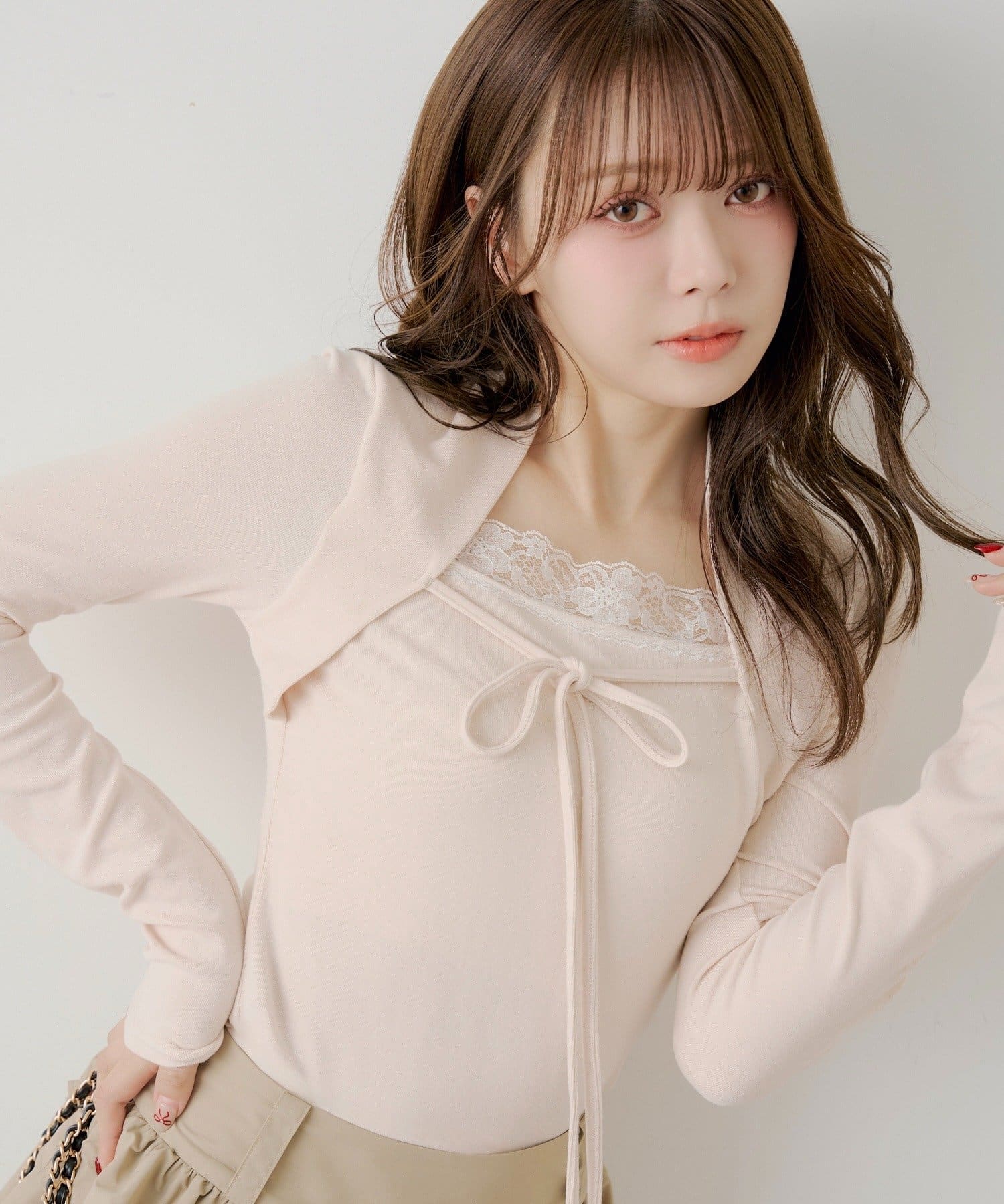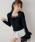 ・ネックラインに施された繊細なレースが、上品でフェミニンな印象を与えます。
