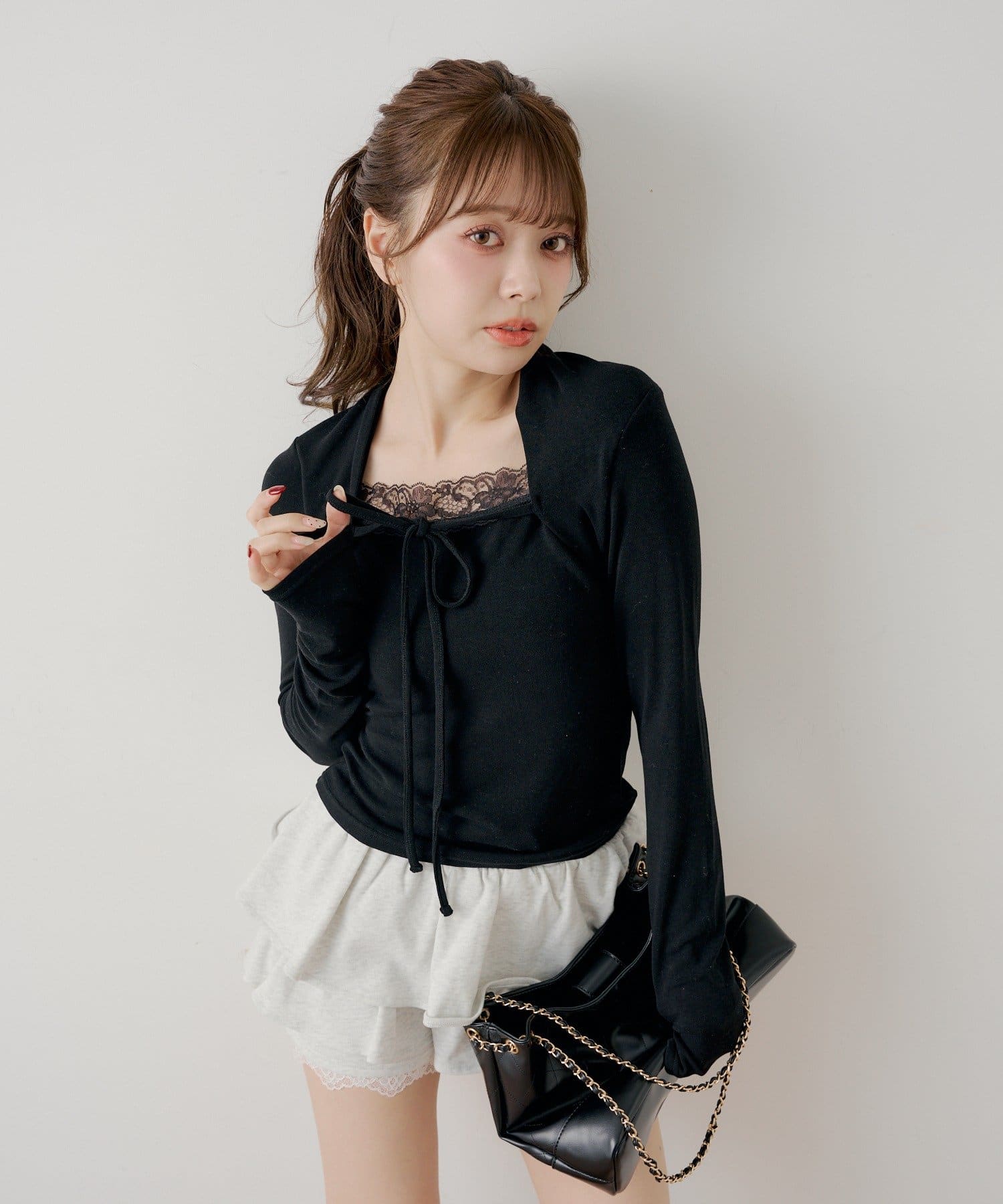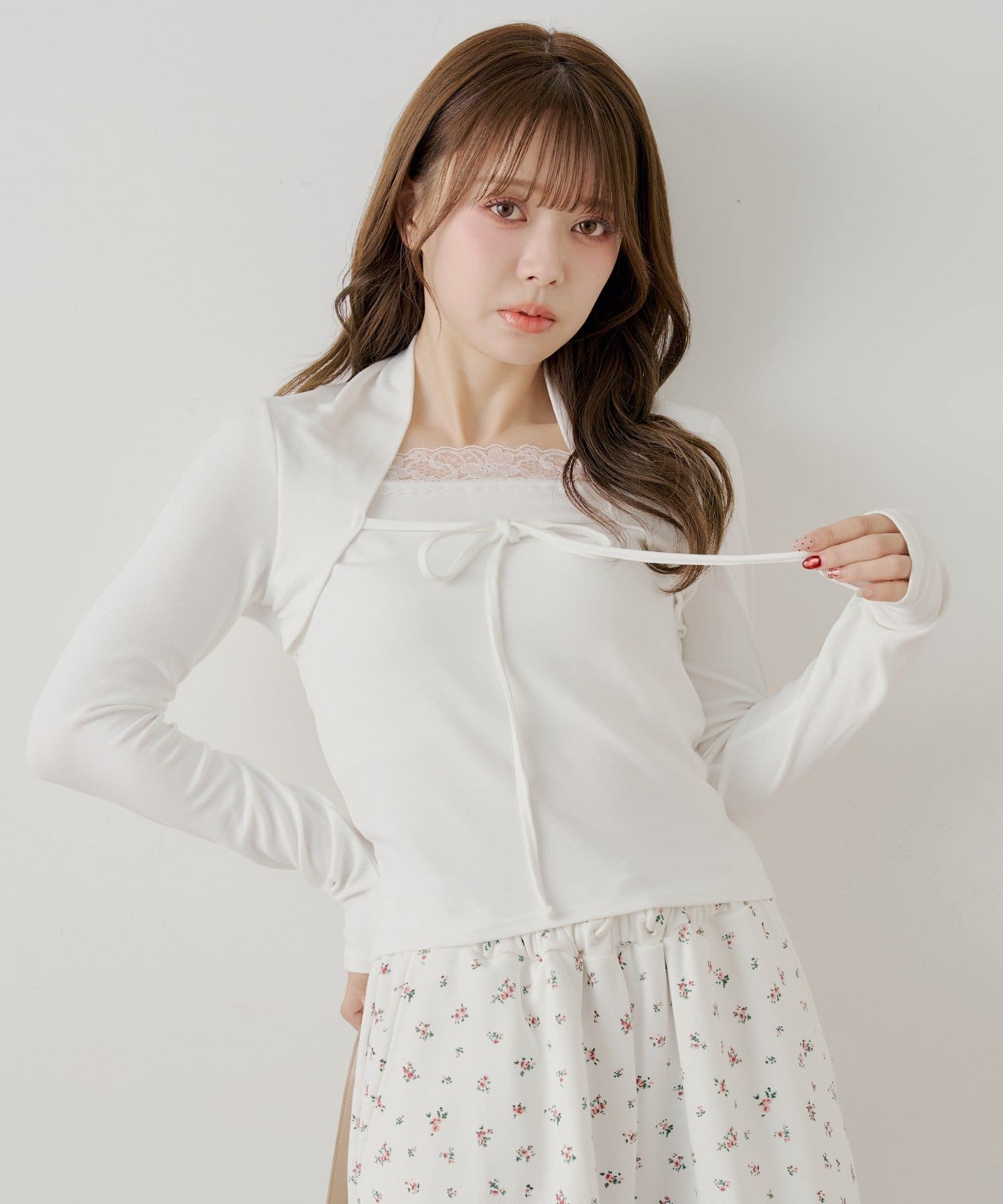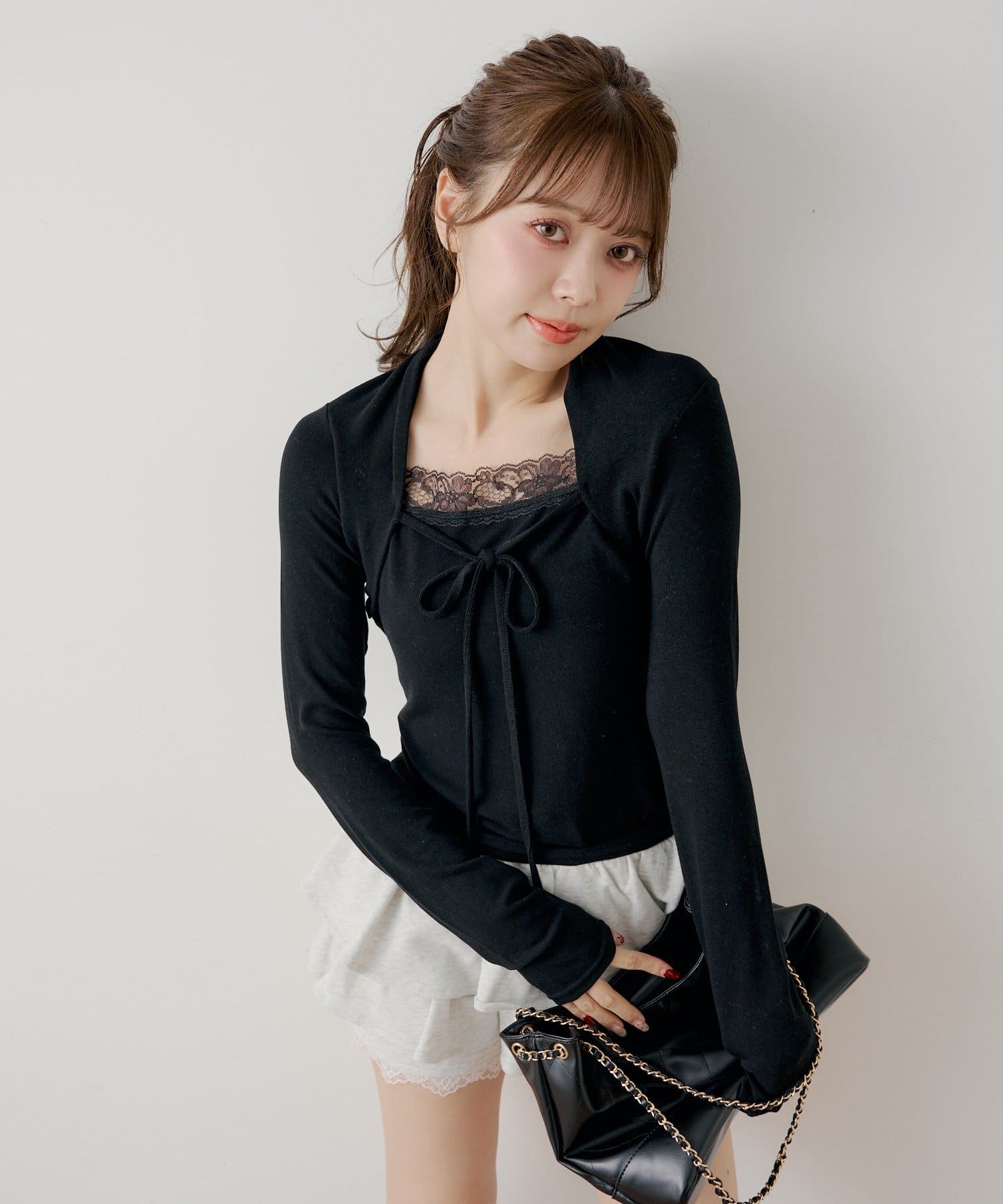 繊細なレースとボレロデザインがポイントのレイヤードトップス登場!