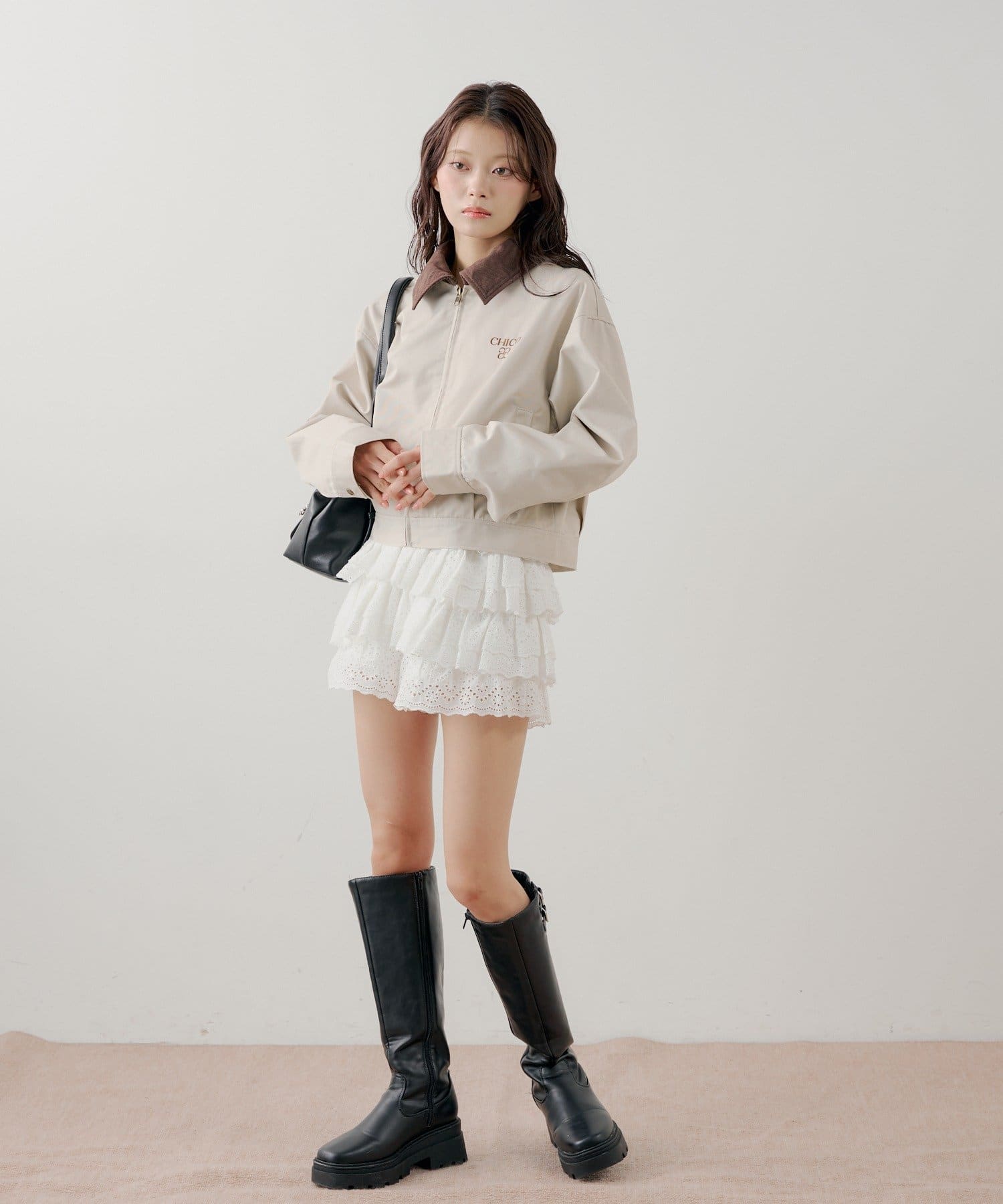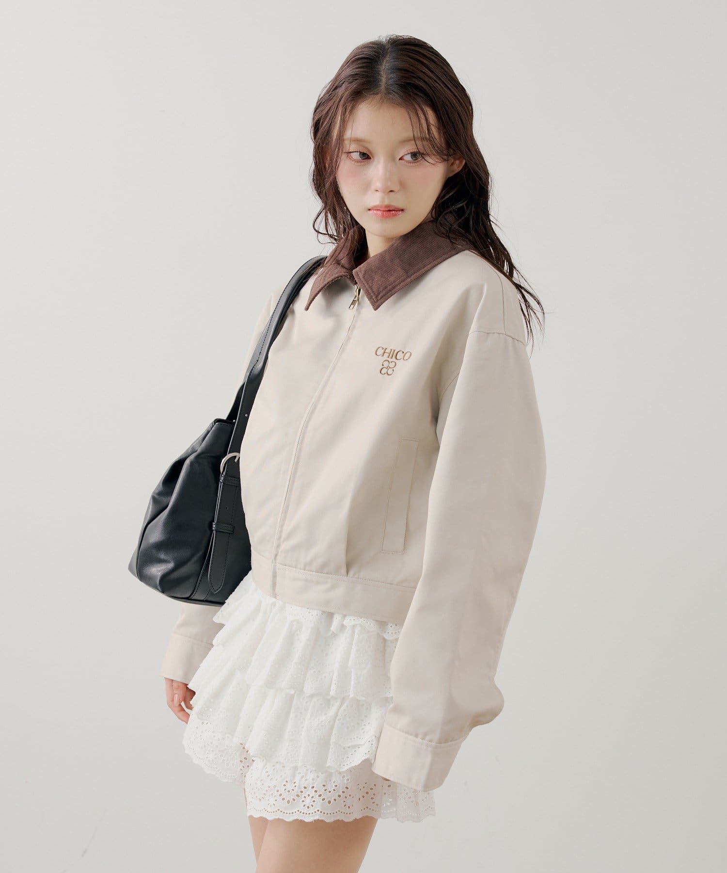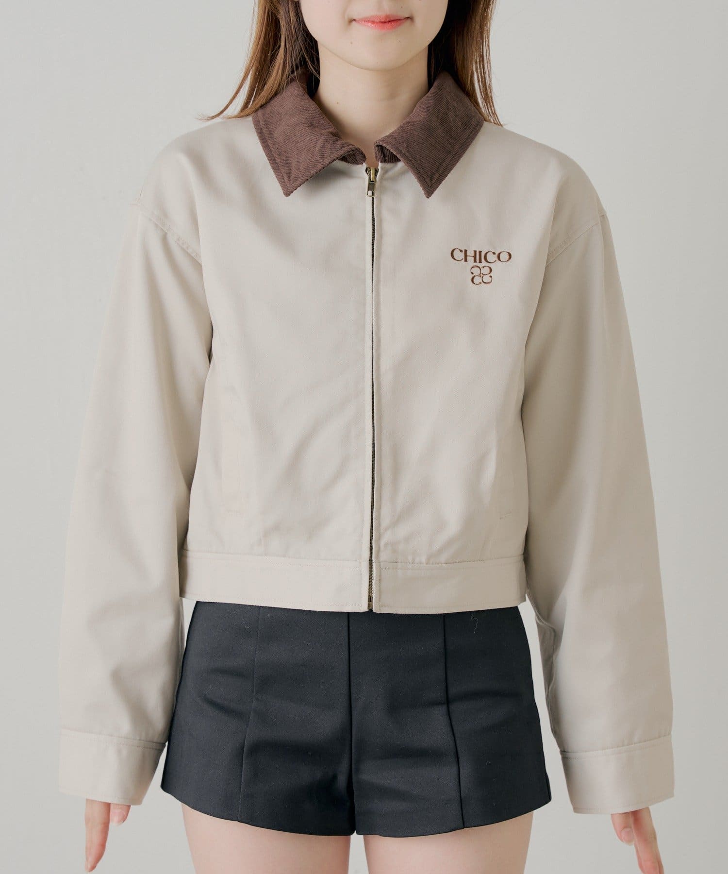 Chico(チコ) 【セットアップ対応】襟配色ジップジャケット