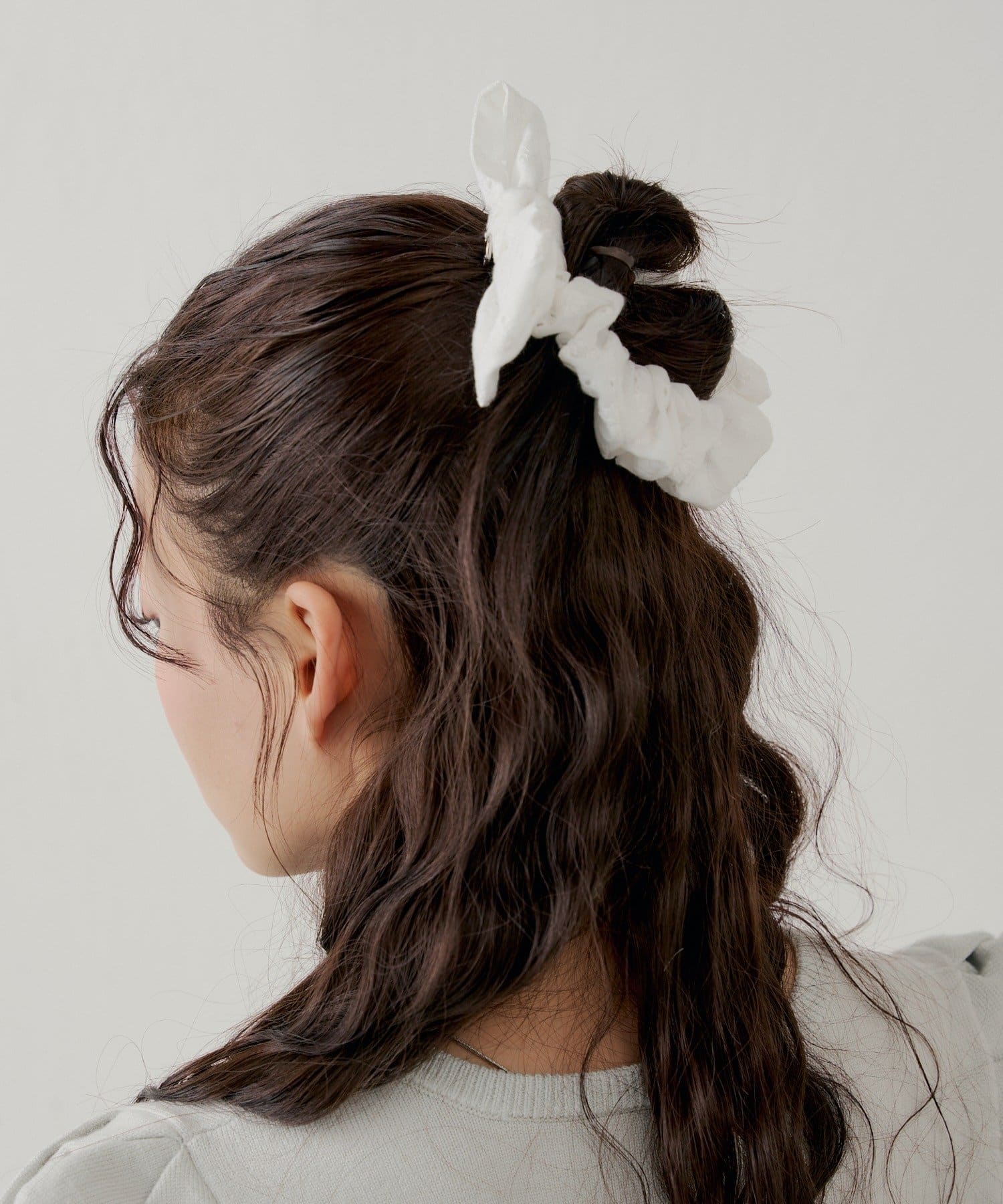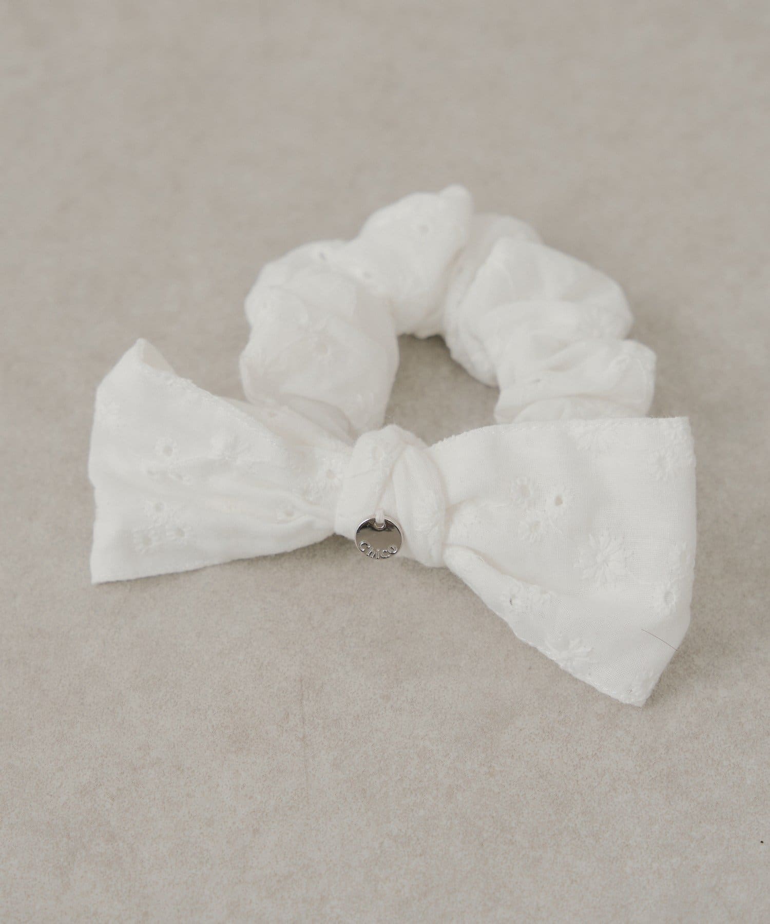 ・繊細なコットンレースを贅沢に使用した、大人可愛いリボンシュシュ。