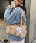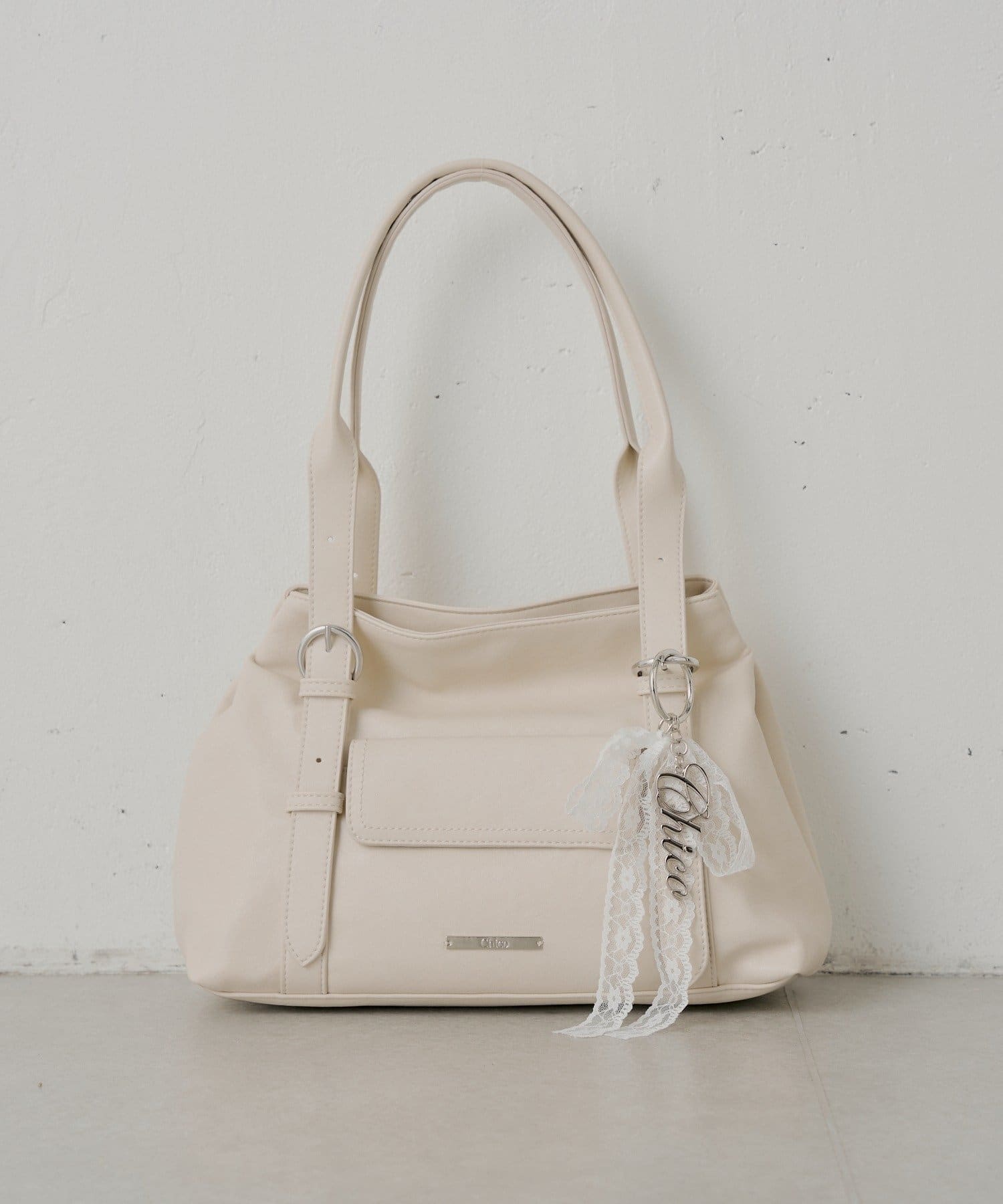 折り返しデザインが可愛いチャーム付き横長ベルトハンドルバッグ登場♡