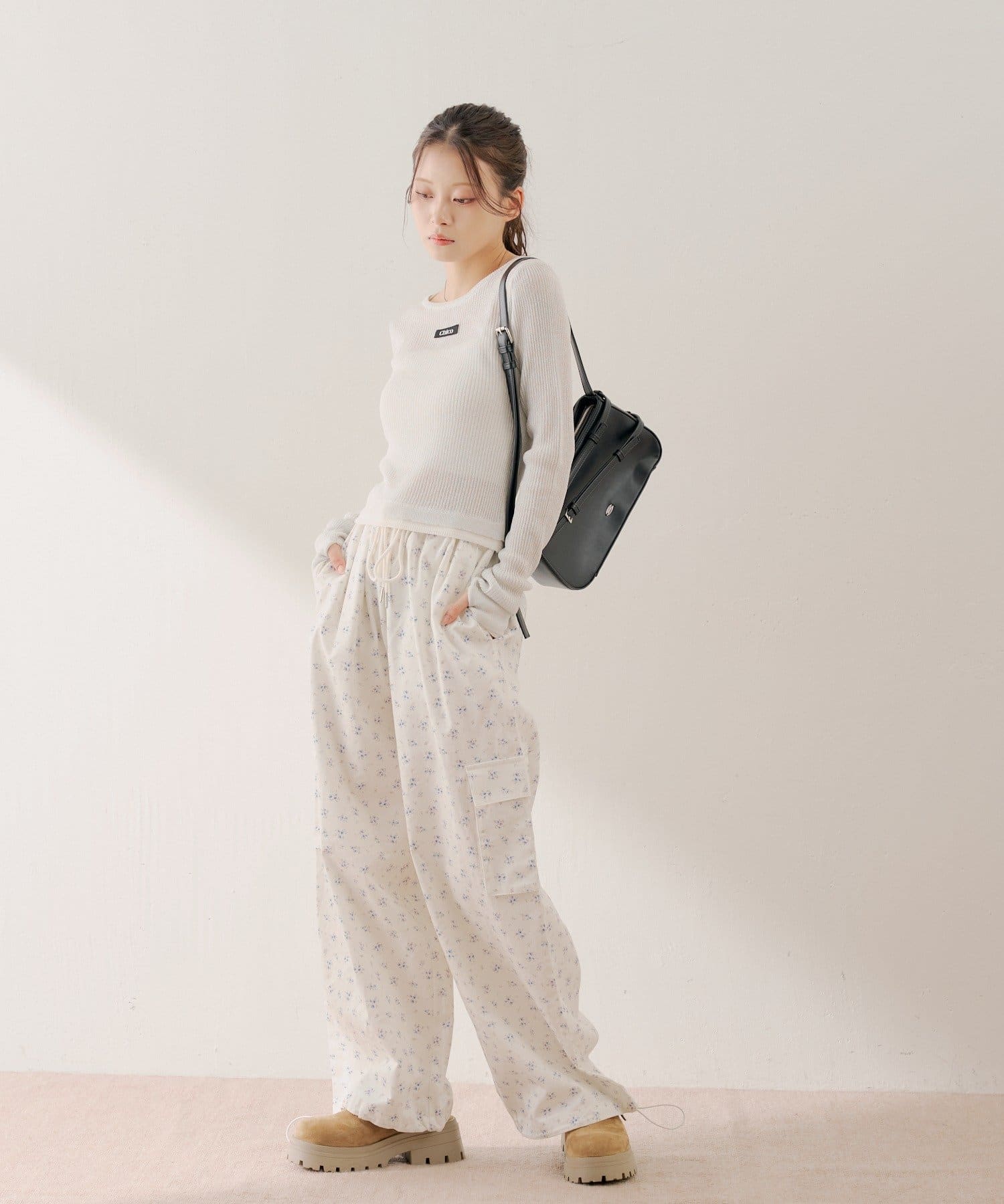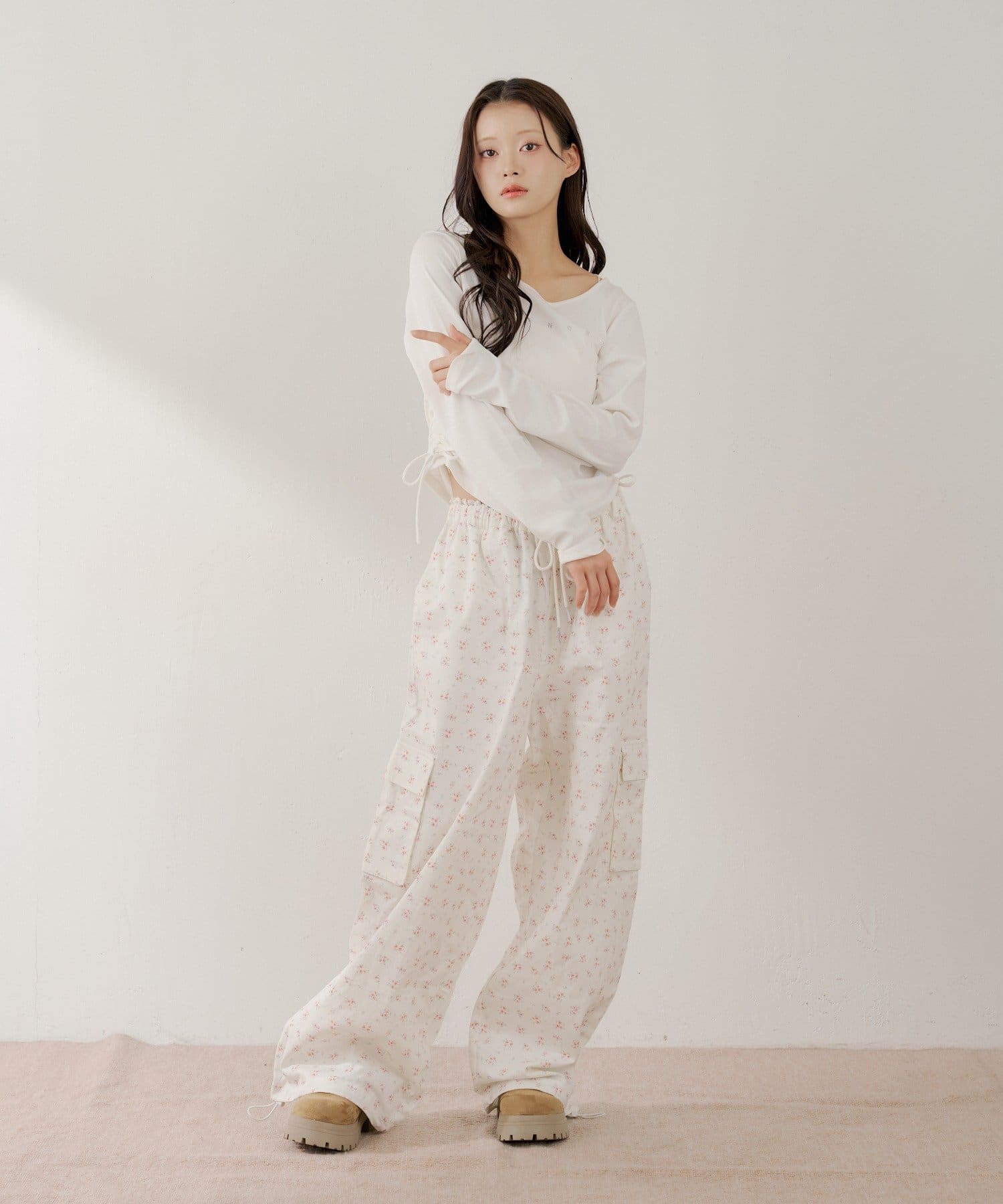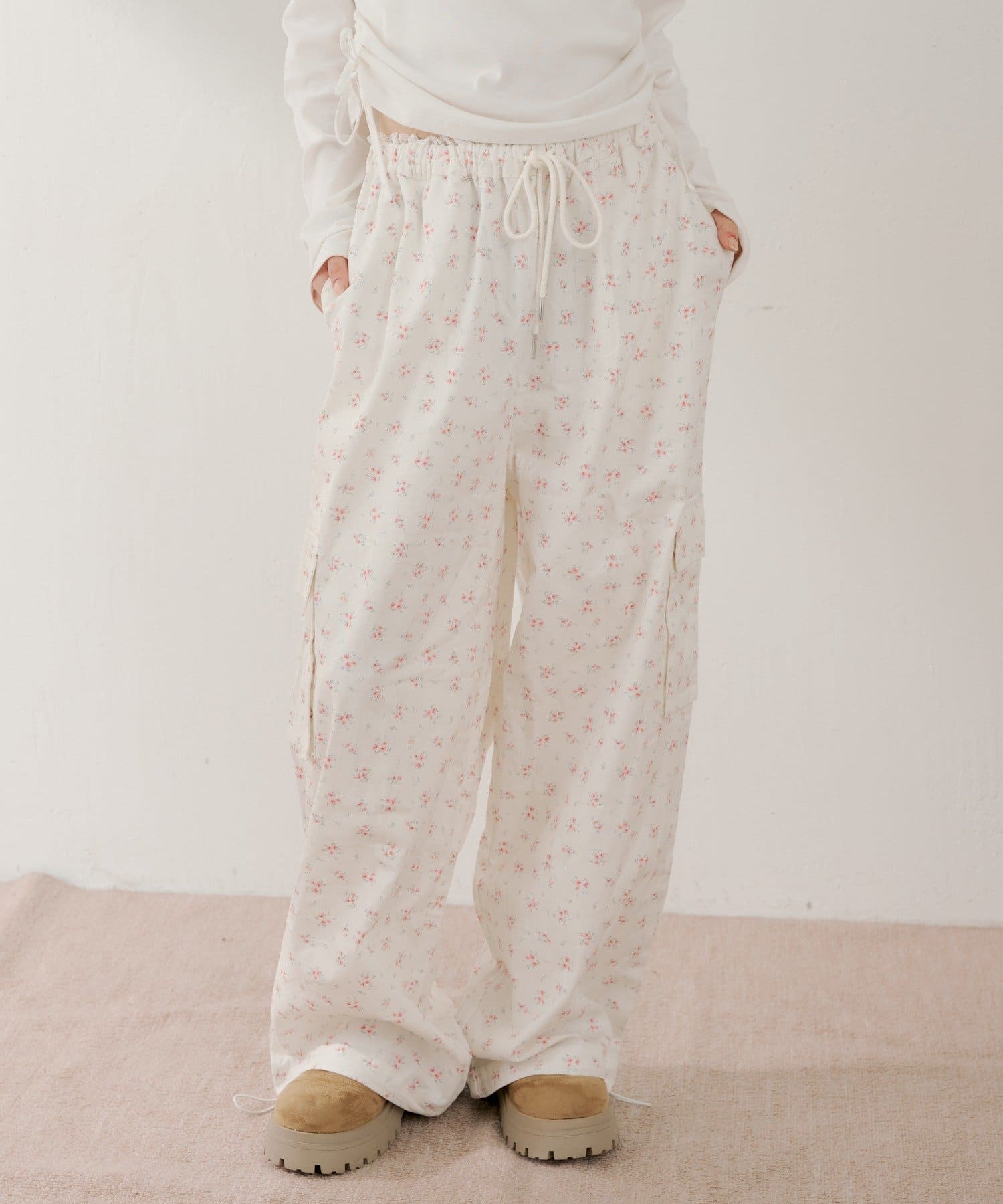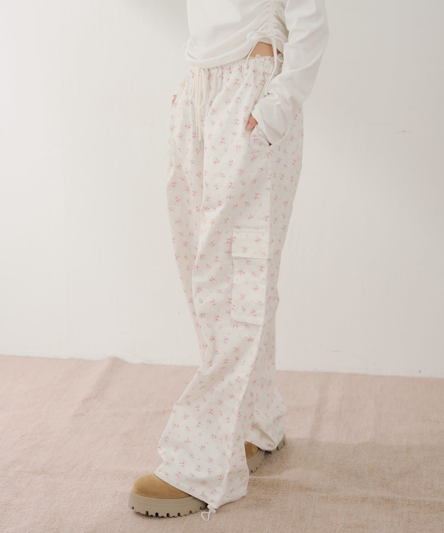 カーゴパンツに繊細な花柄を落とし込んだワイドパンツ登場!
