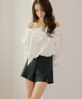 ・ブラウスやニットと合わせると、フェミニンに仕上がります。
