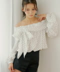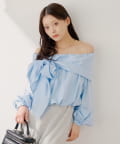 ・胸元の大きなリボンが魅力のオフショルブラウス。